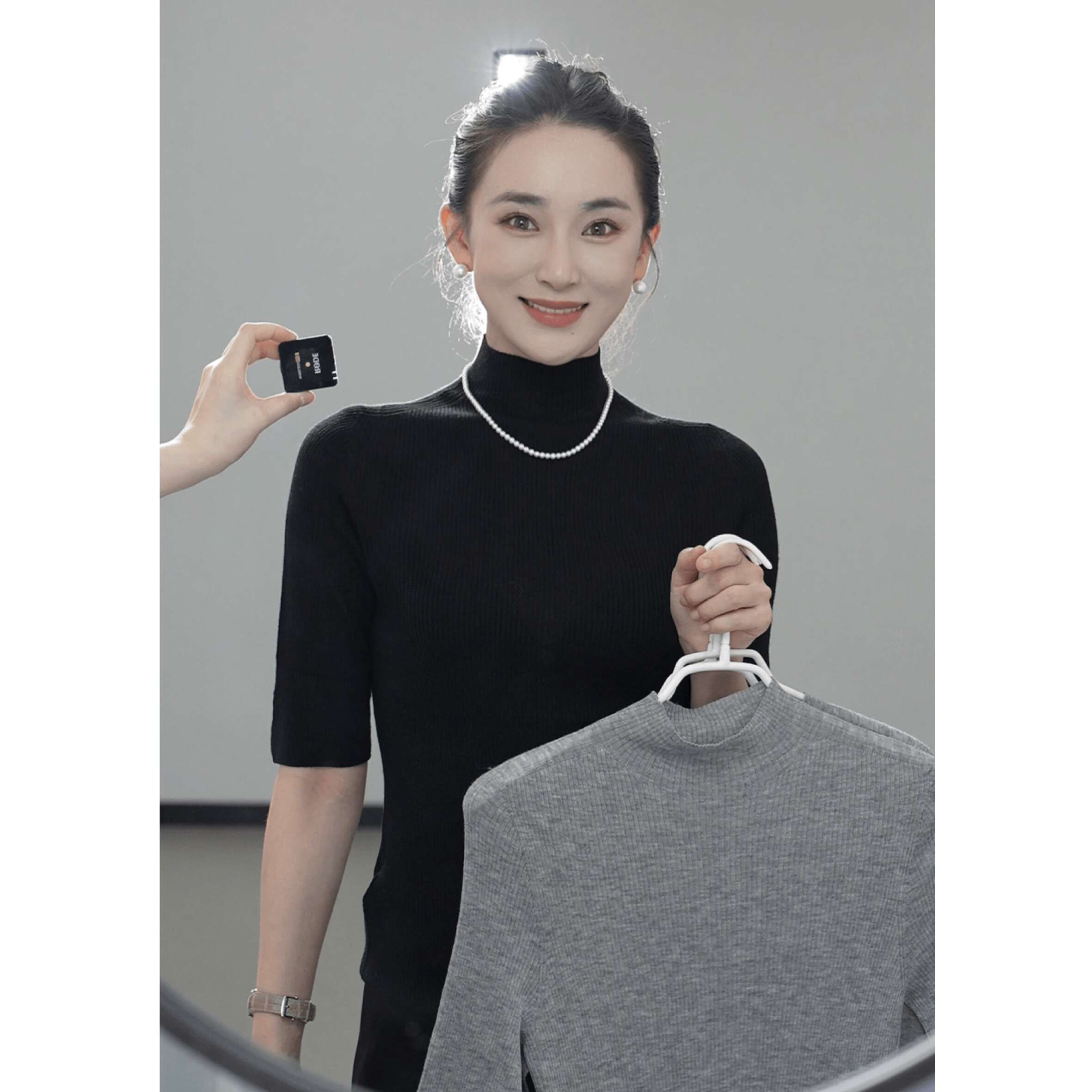 半高领纯色中袖显瘦百搭打底衫秋冬 时尚圆领爆款羊毛套衫2208005