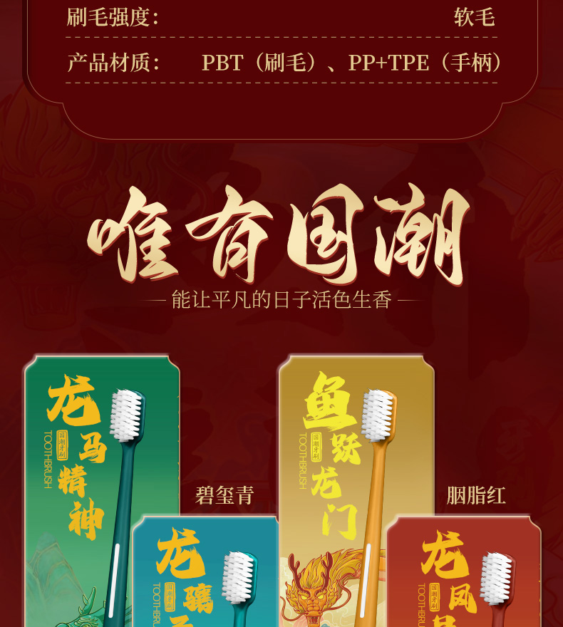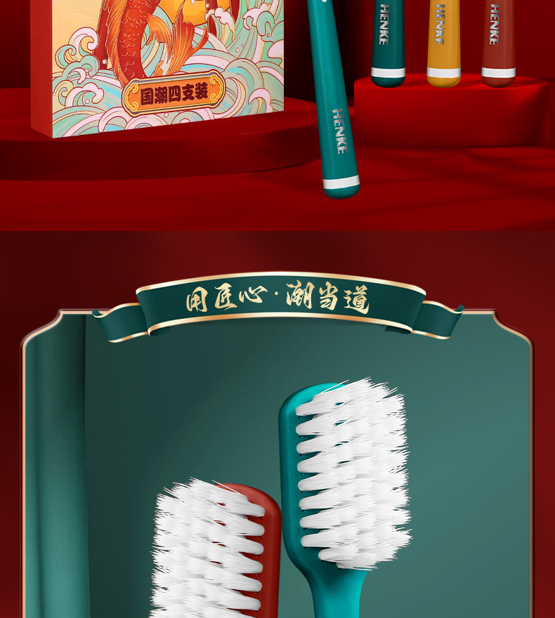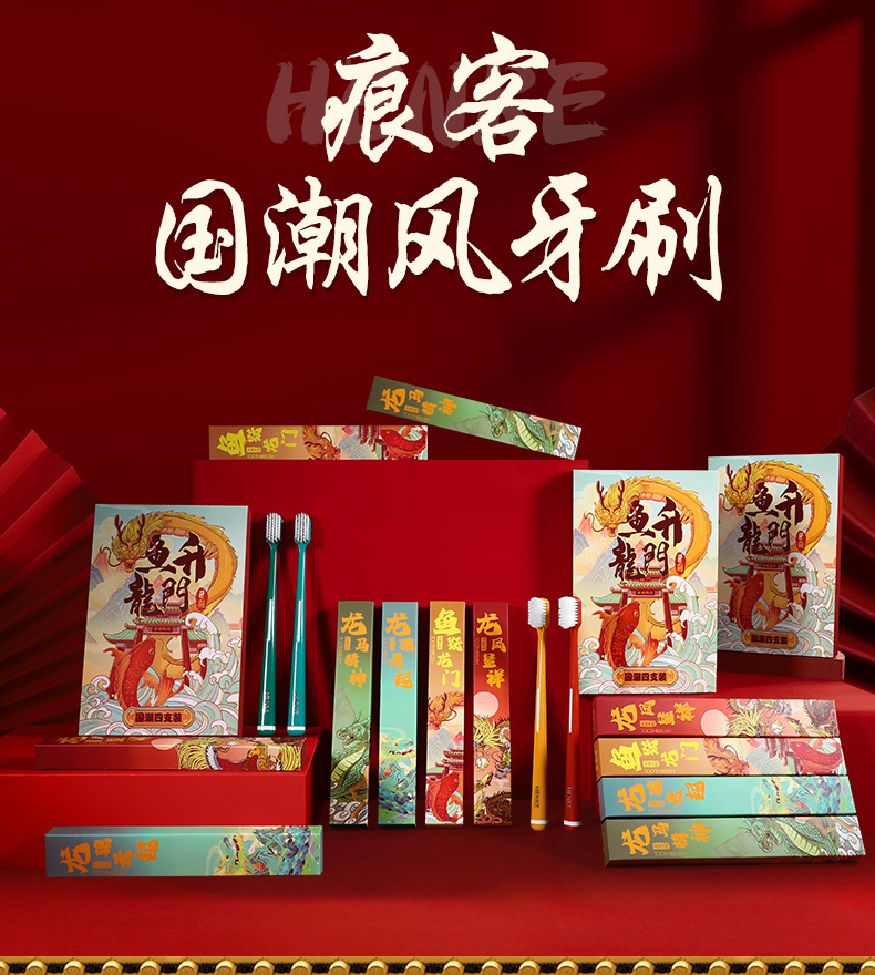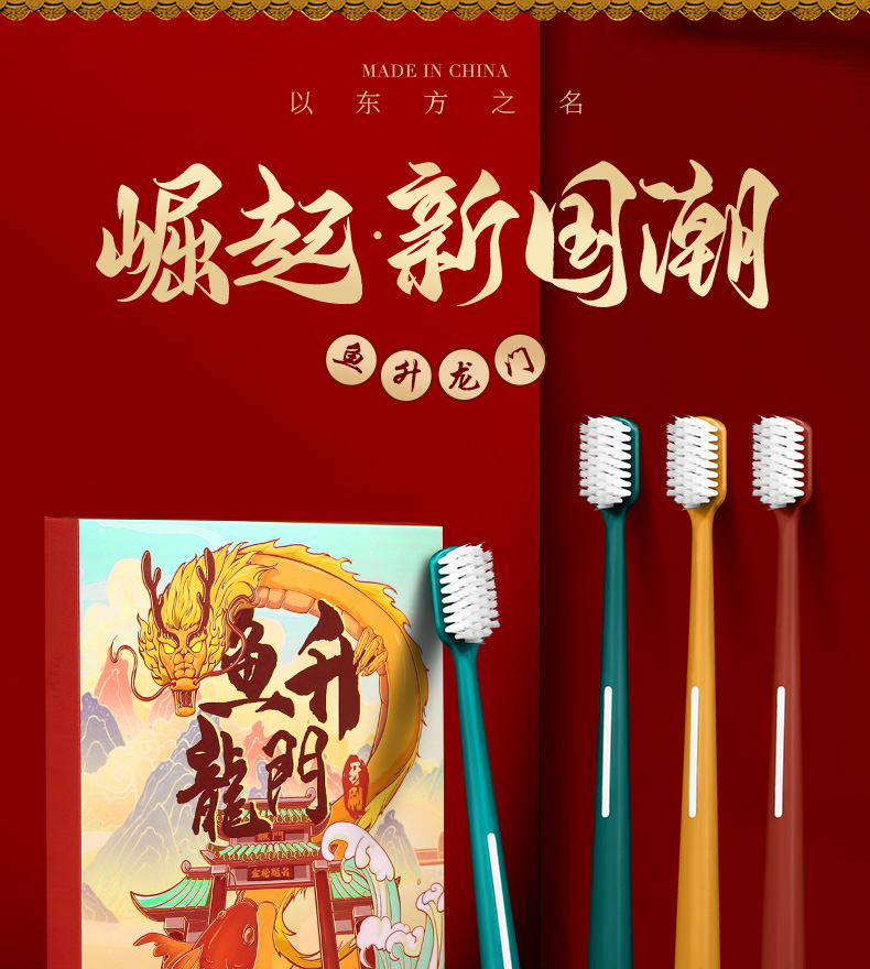 【买一盒送一盒 国潮风牙刷】本命年国潮牙刷家用送人超细软毛成人高颜值独立装 国潮4支每盒礼盒装