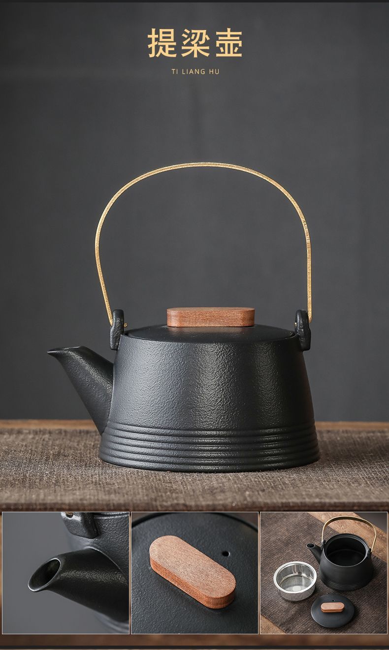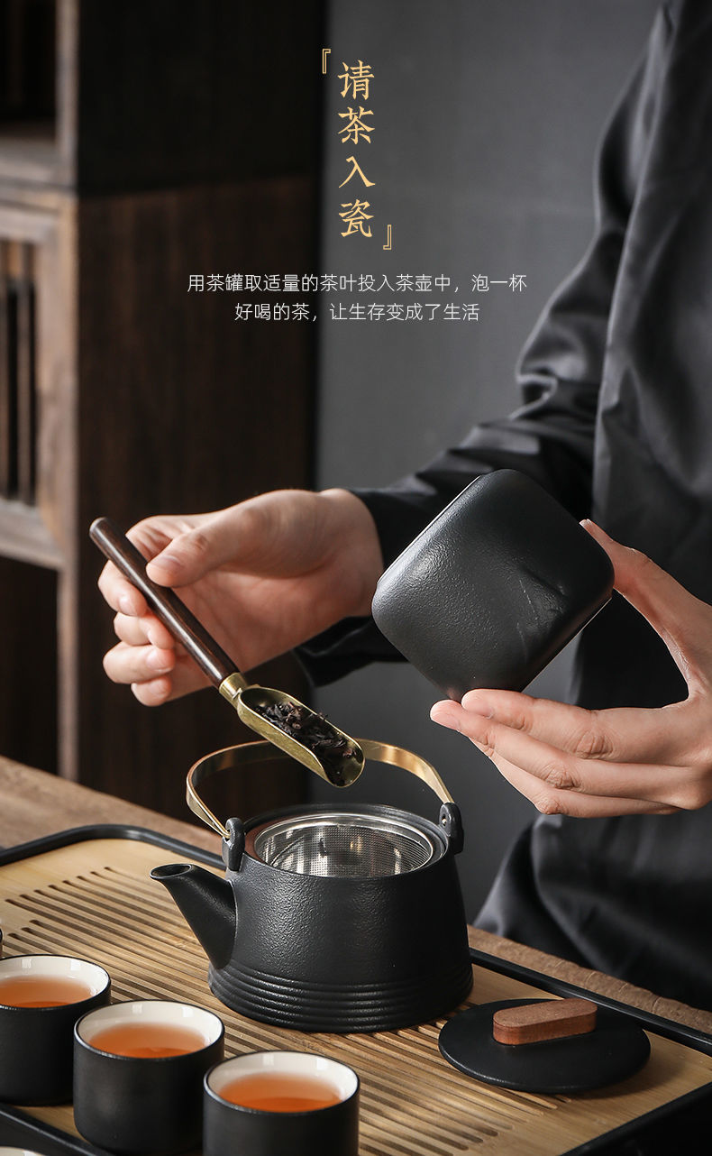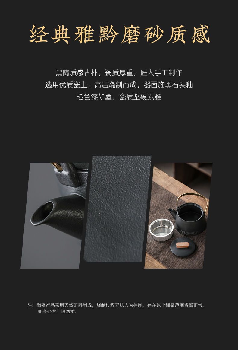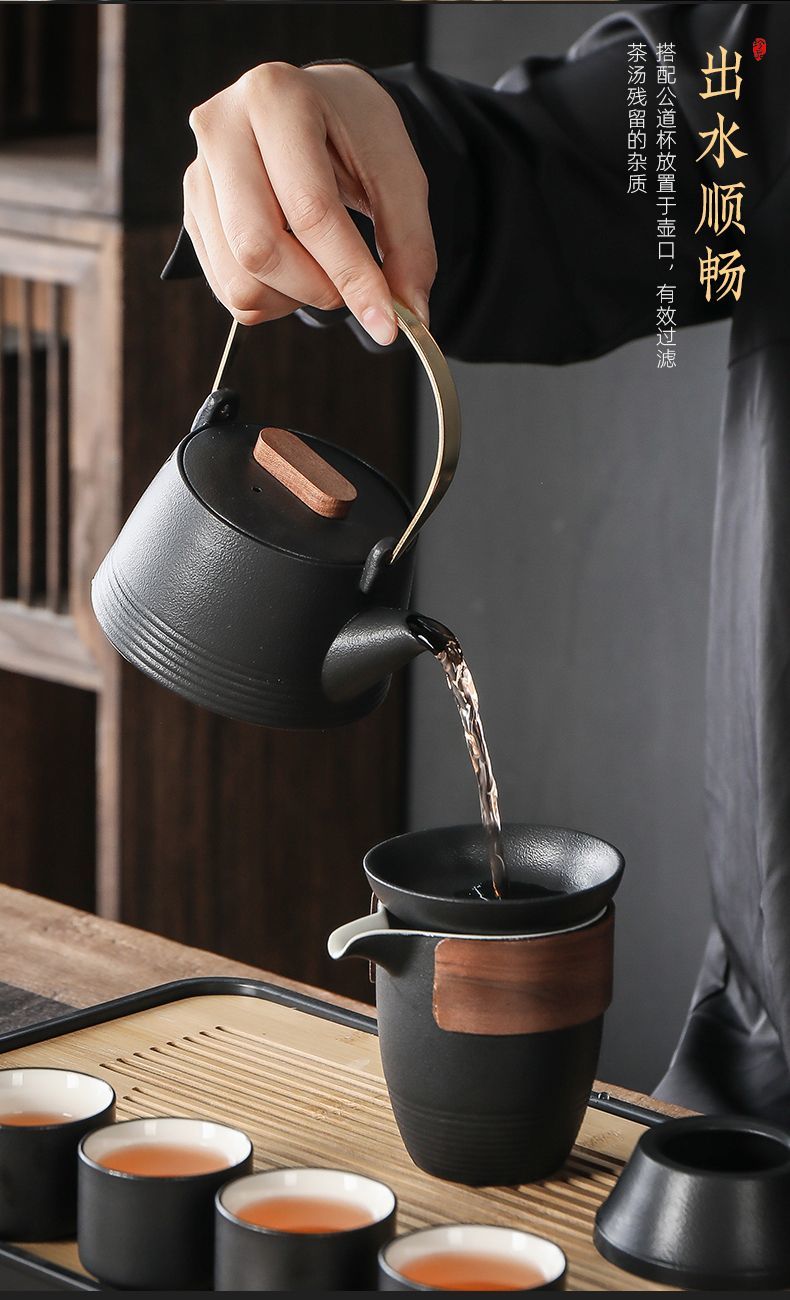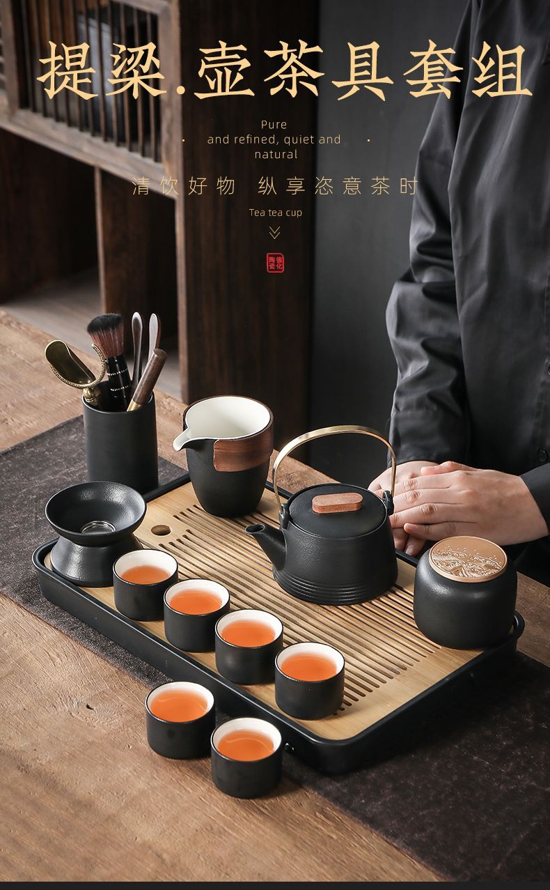 轻奢黑陶简约套装提梁壶整套功夫茶具茶杯高档家用办公室喝茶小套