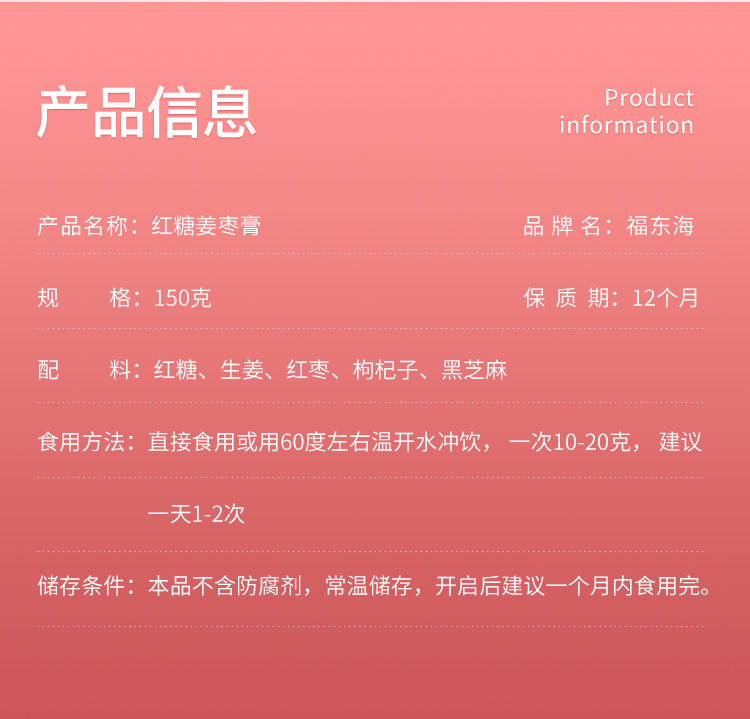 福东海红糖姜枣膏黑糖姜茶姜糖膏手工生姜母膏150g