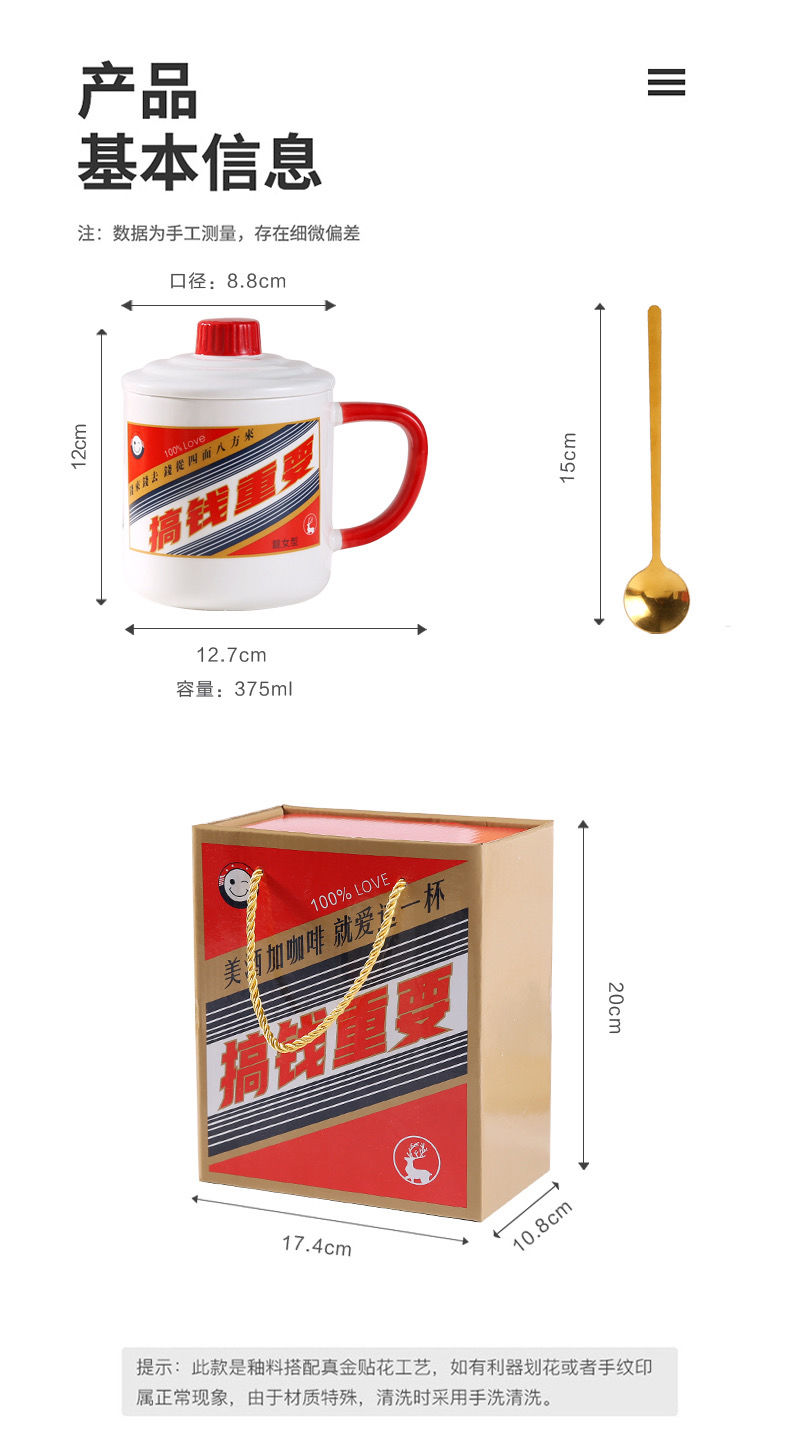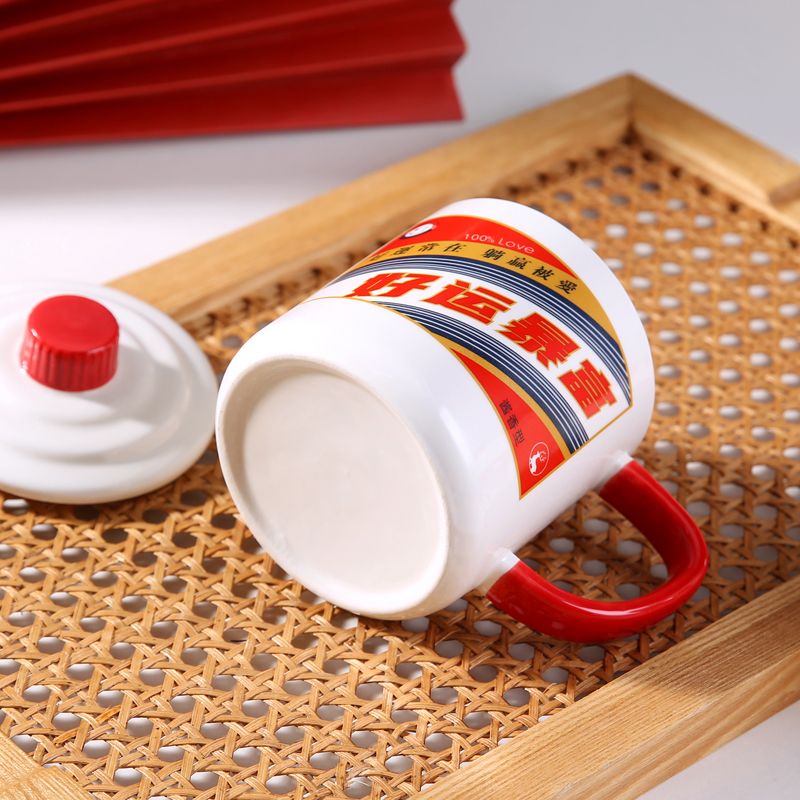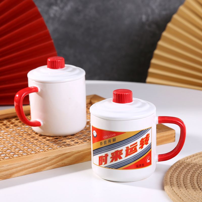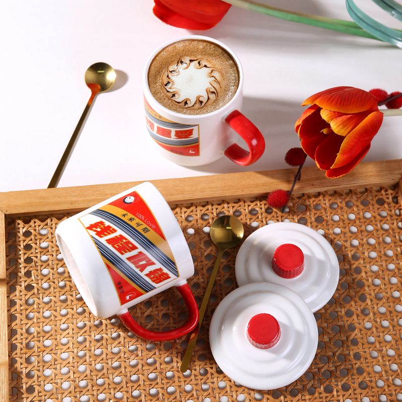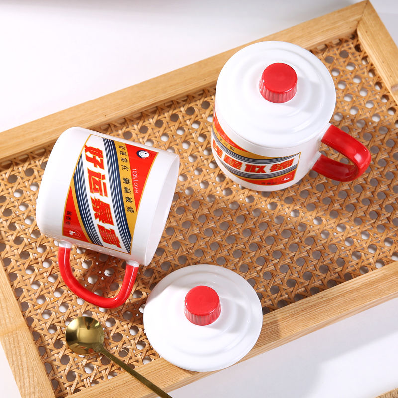 创意网红搞怪白酒水杯情侣办公室陶瓷马克杯带盖勺男女咖啡牛奶杯