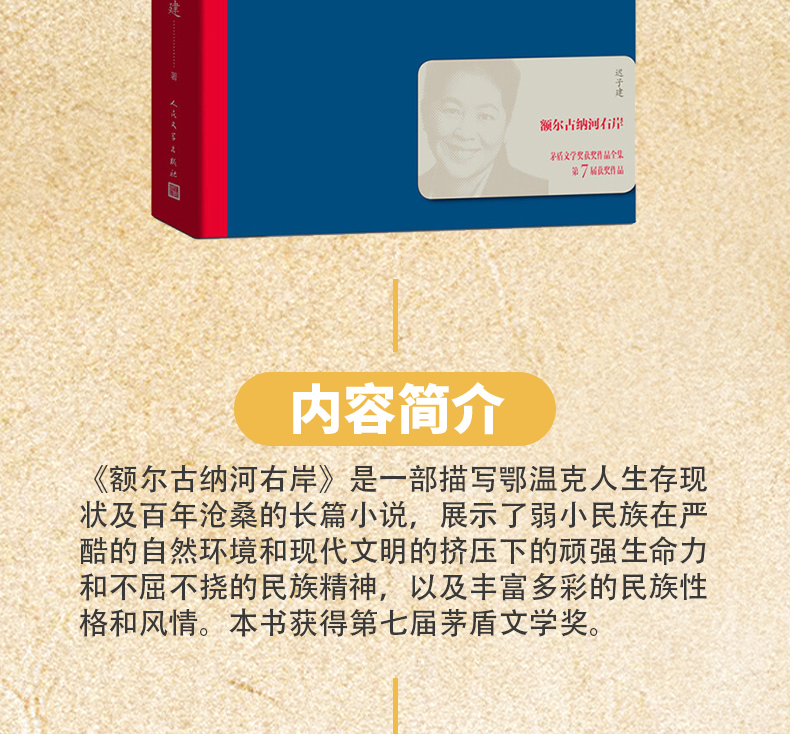 《额尔古纳河右岸》是一部描写鄂温克人生存现状及百年沧桑的长篇小说,展示了弱小民族在严酷的自然环境和现代文明的挤压下的顽强生命力和不屈不挠的民族精神,以及丰富多彩的民族性格和风情。本书获得第七届茅盾文学奖。