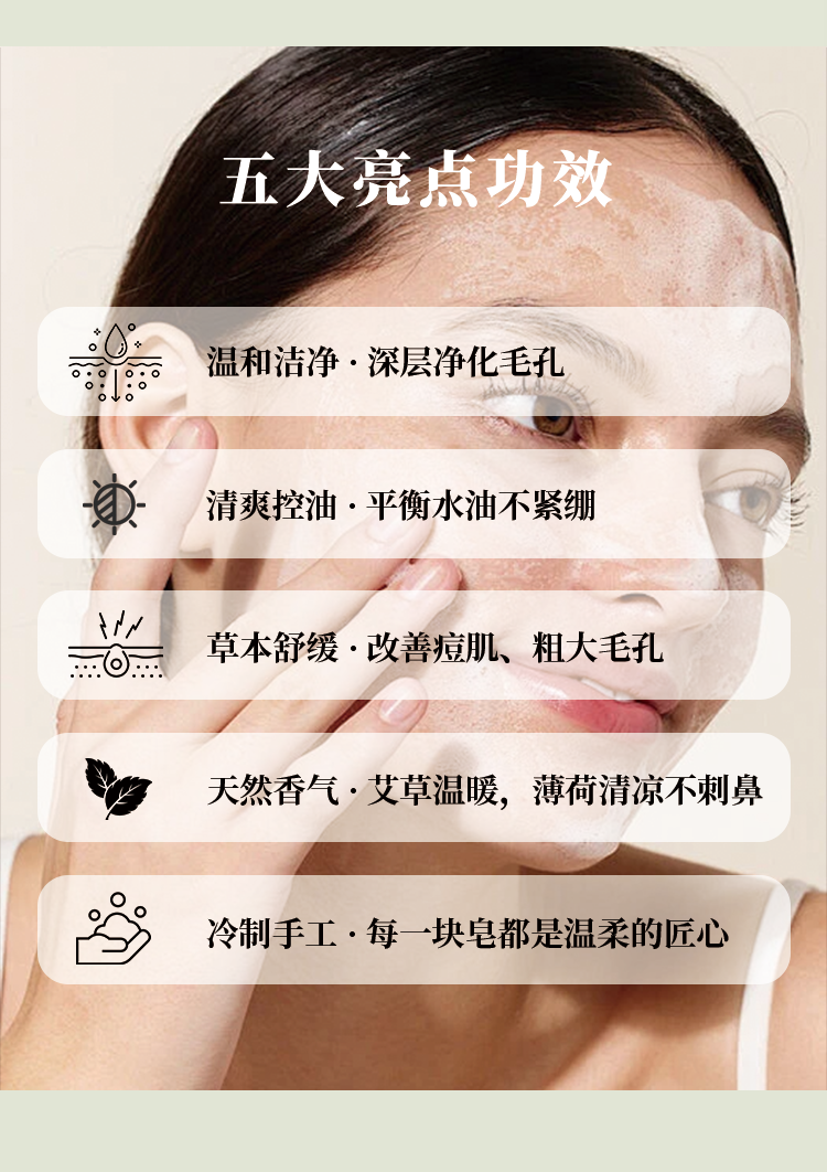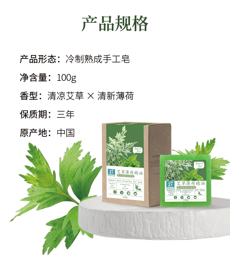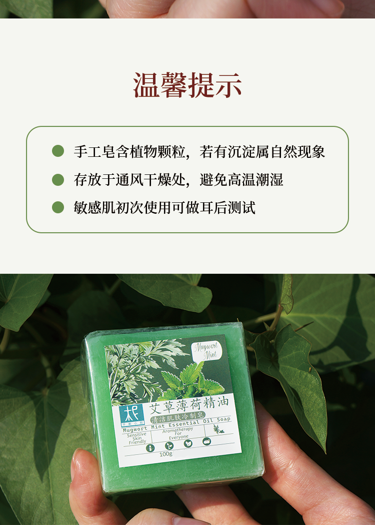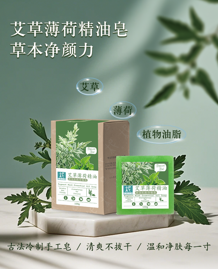 平衡小柅 艾草薄荷精油冷制手工皂|净化毛孔 × 平衡水油 × 舒缓草本洁肤皂|脸部/全身适用 精油皂 手工皂 薄荷精油