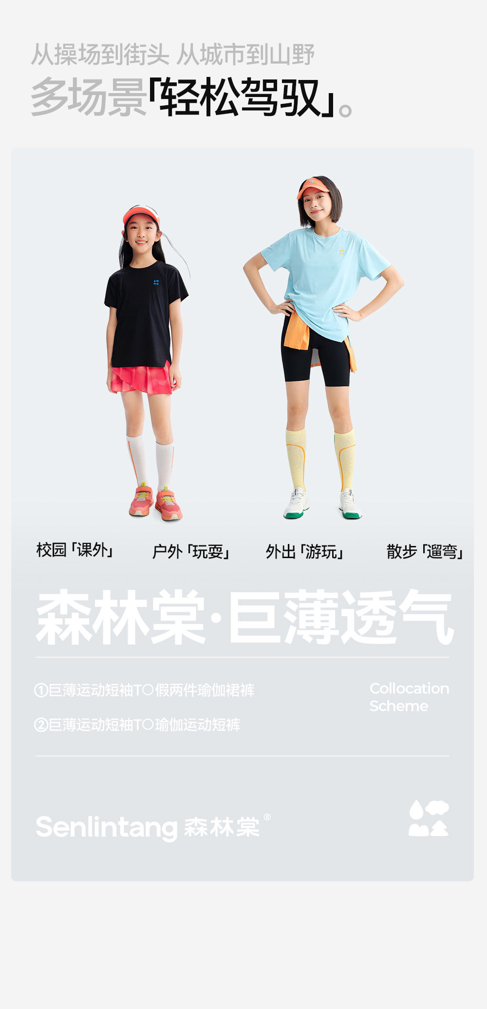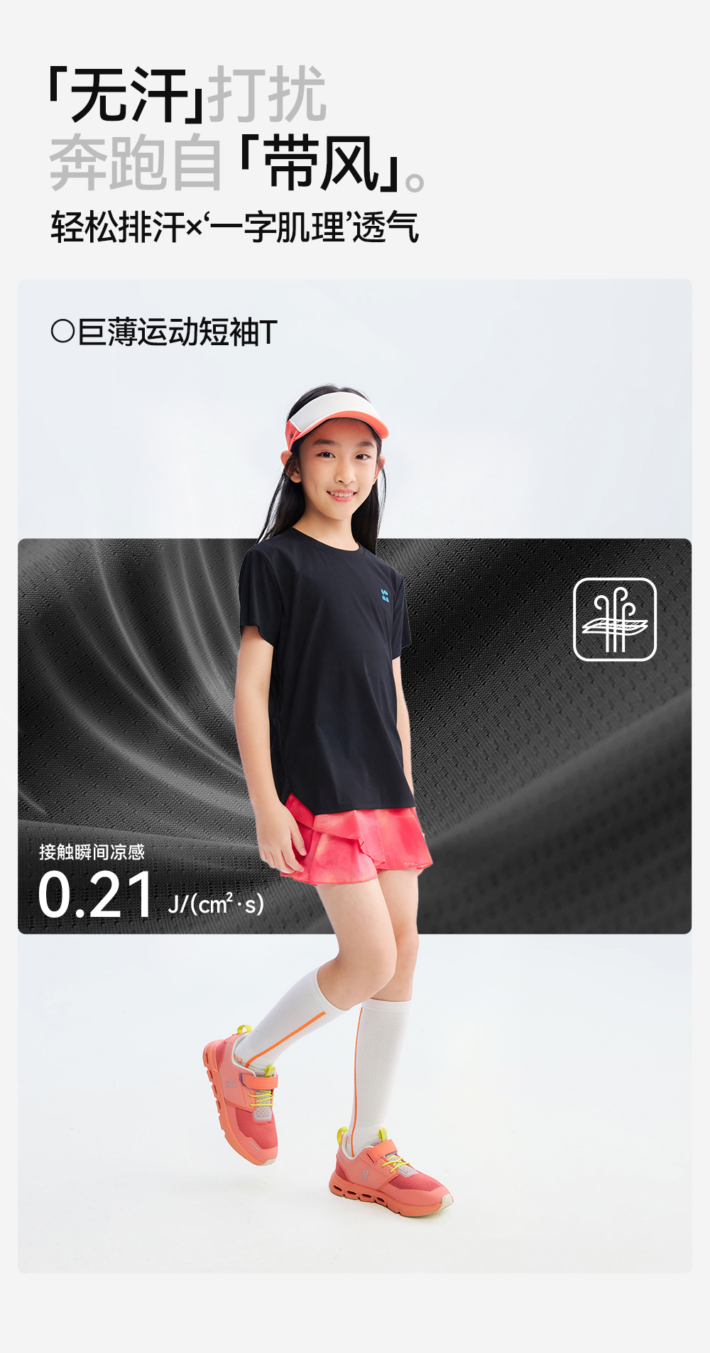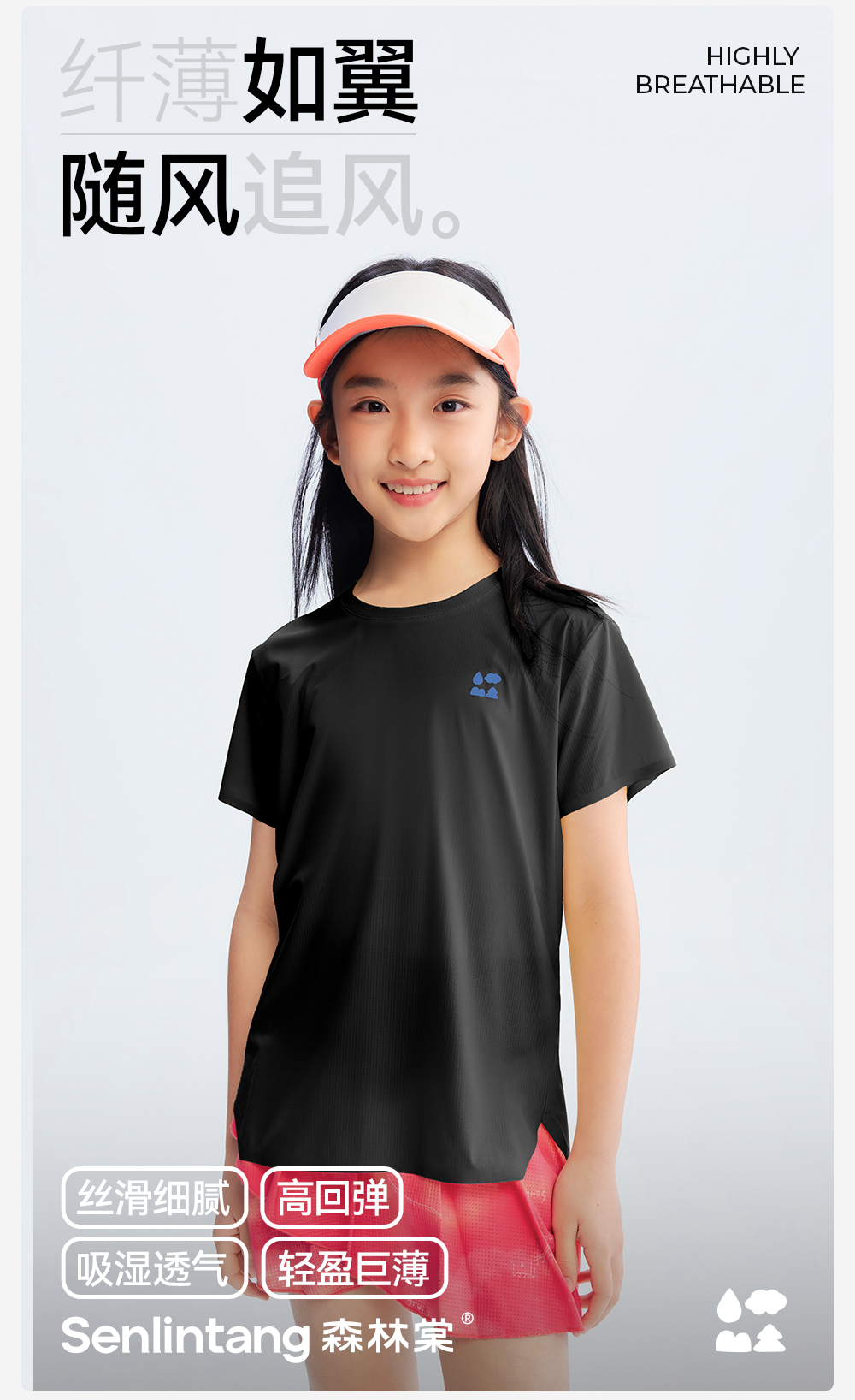 【女童巨薄速干运动短袖】森林棠26夏款肌理透气排汗超轻凉感收腰T恤40162498