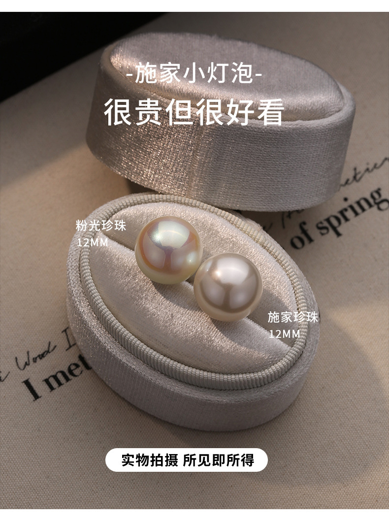S925纯银施家珍珠耳钉女高级感法式复古简约百搭2024新款爆款耳环