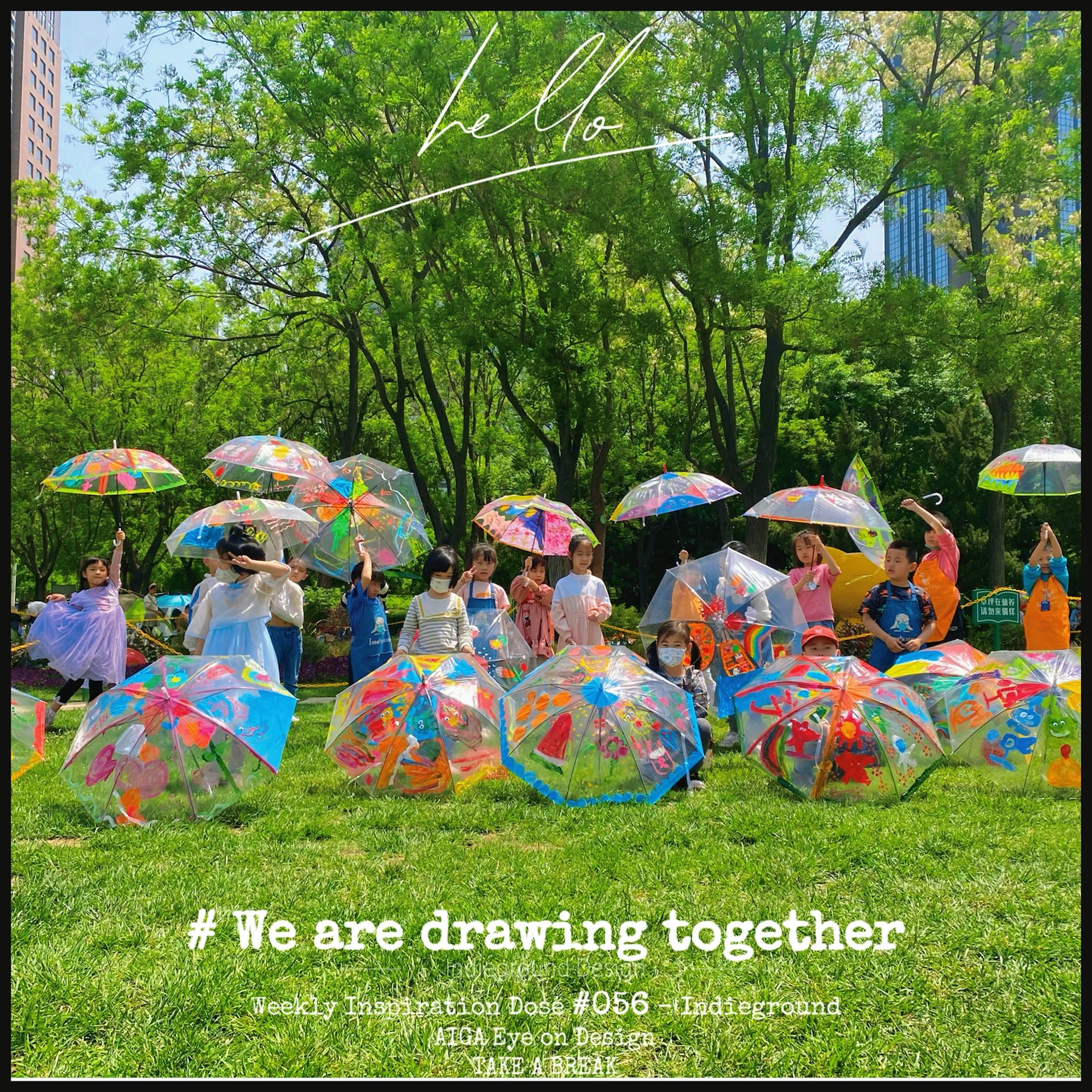 领取一把透明雨伞,和小朋友一起在空白的伞上描绘色彩