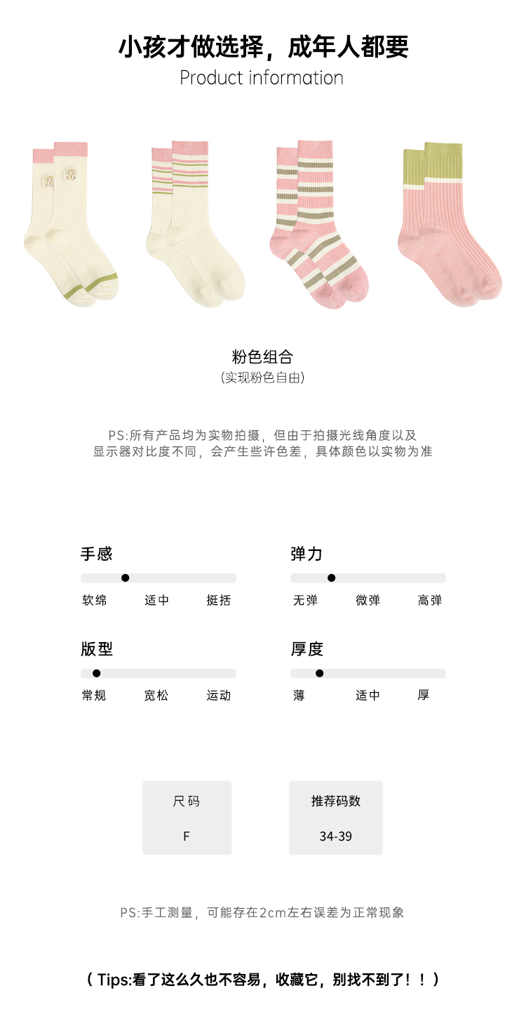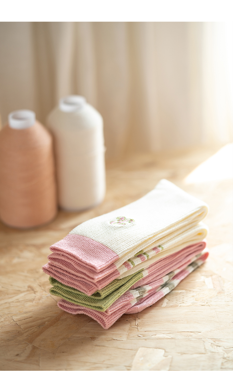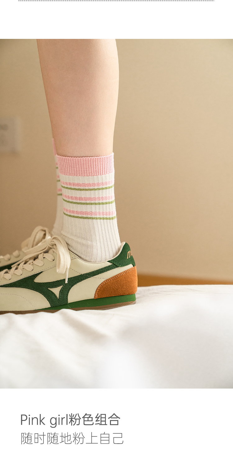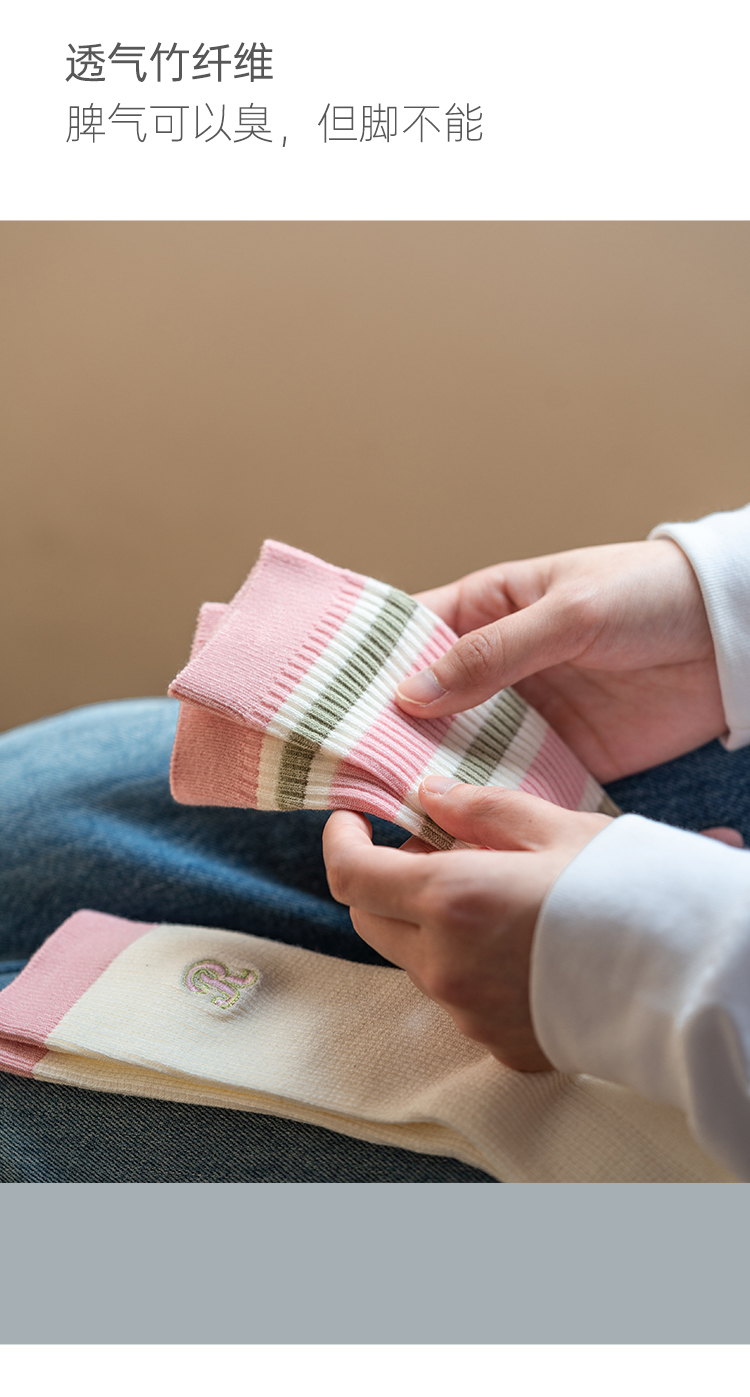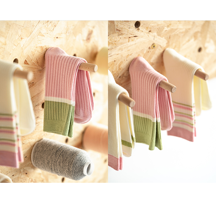 靴下物竹棉薄款透气粉色系条纹撞色甜美中筒日系可爱女袜