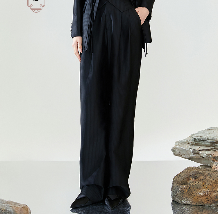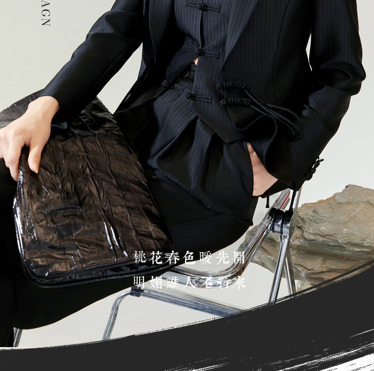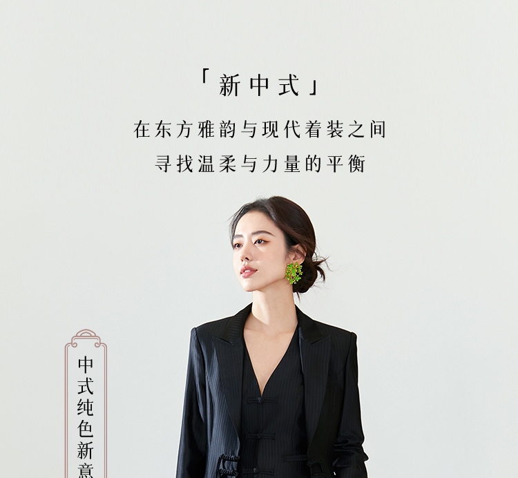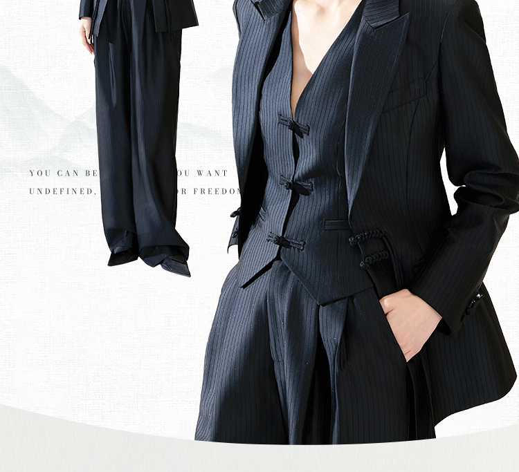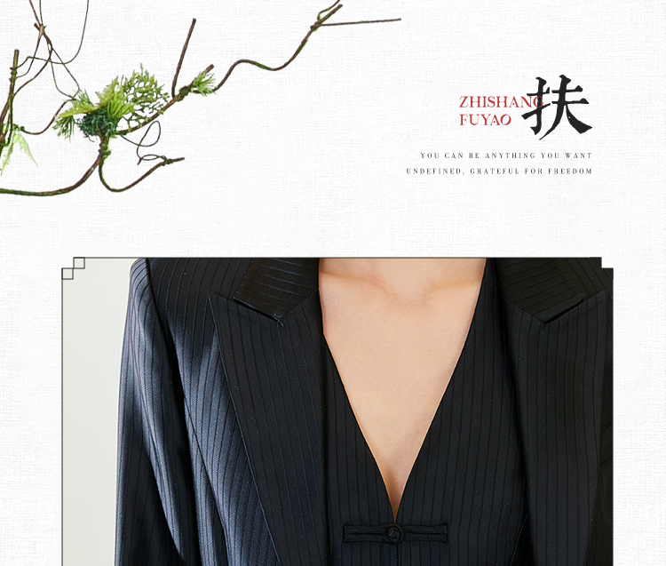 FUYAO扶摇 高端西装外套女新中式盘扣黑色条纹西服套装气质职业装