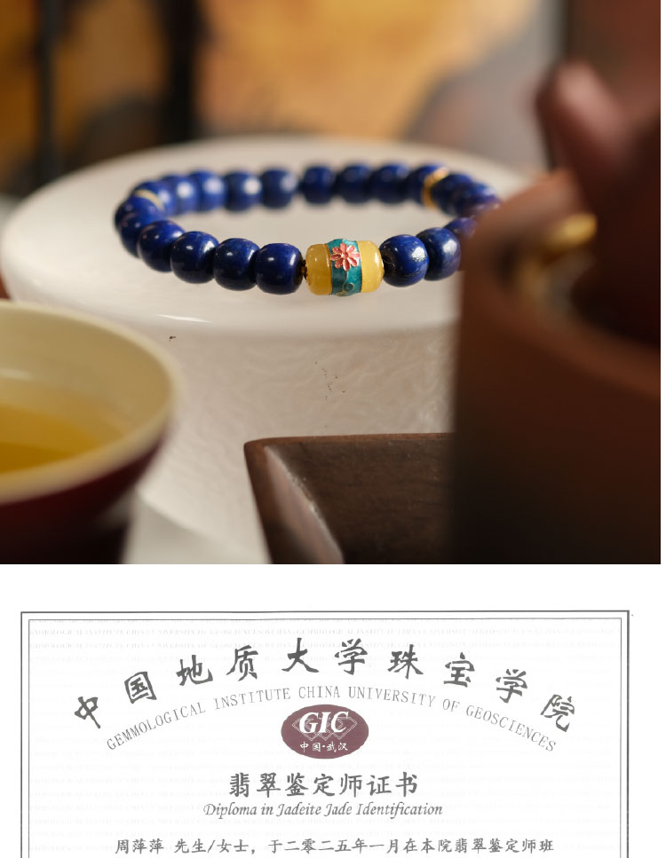 米马饰物 阿富汗青金手钏配以蜜蜡 无BING无ZAI 温暖守护
