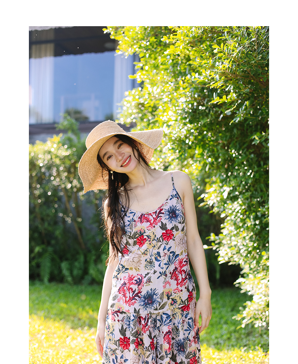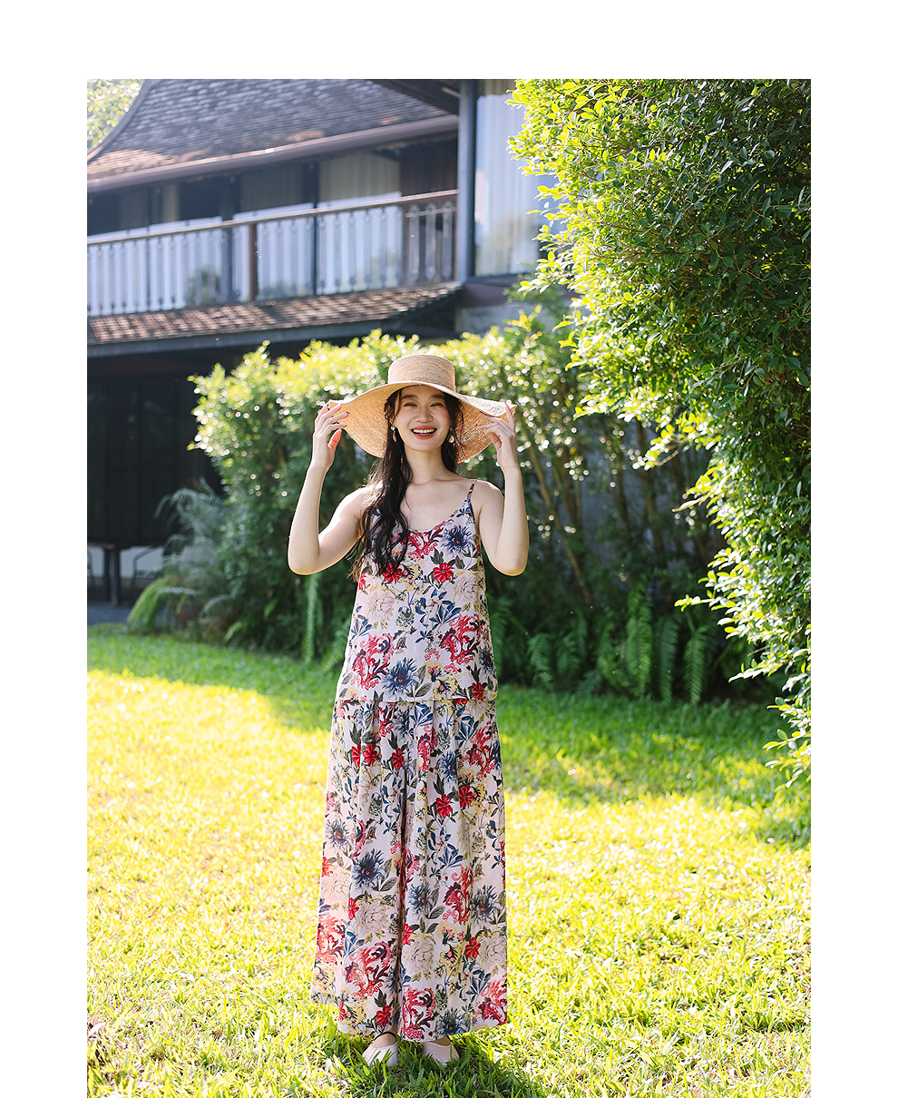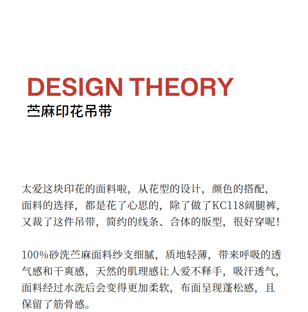 绽放旅行女装117朵/苎麻印花可调节肩带U型领复古吸汗透气吊带