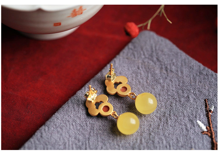 【手工古法鎏金工艺❗️磨砂金质感】纯银925如意耳环 百搭国风元素耳饰珐琅彩复古耳饰戒指吊坠套装女。jc