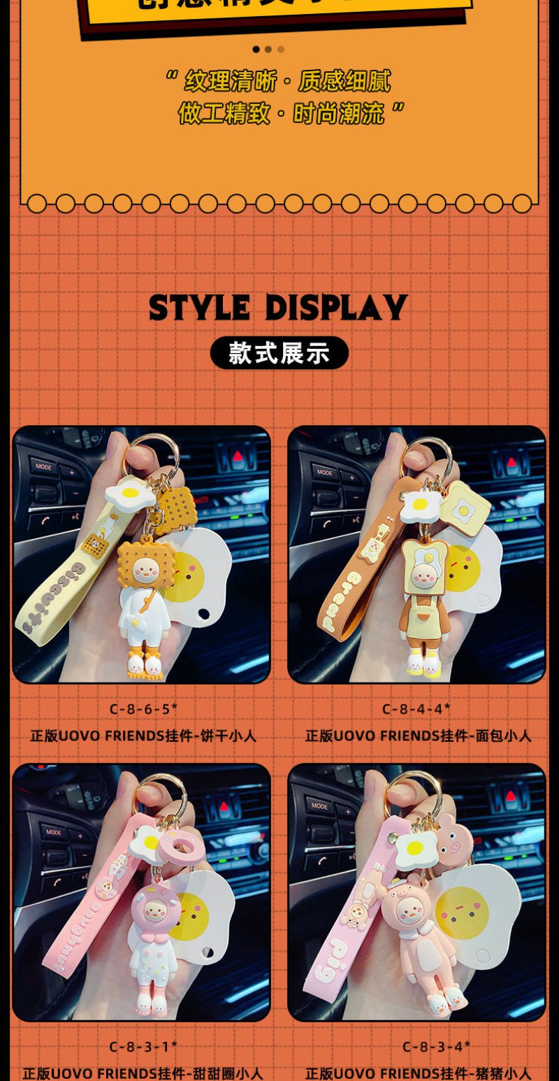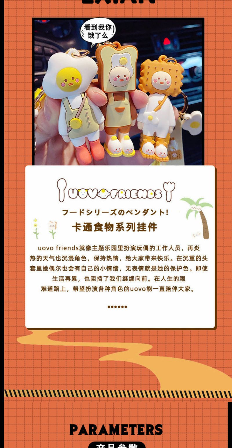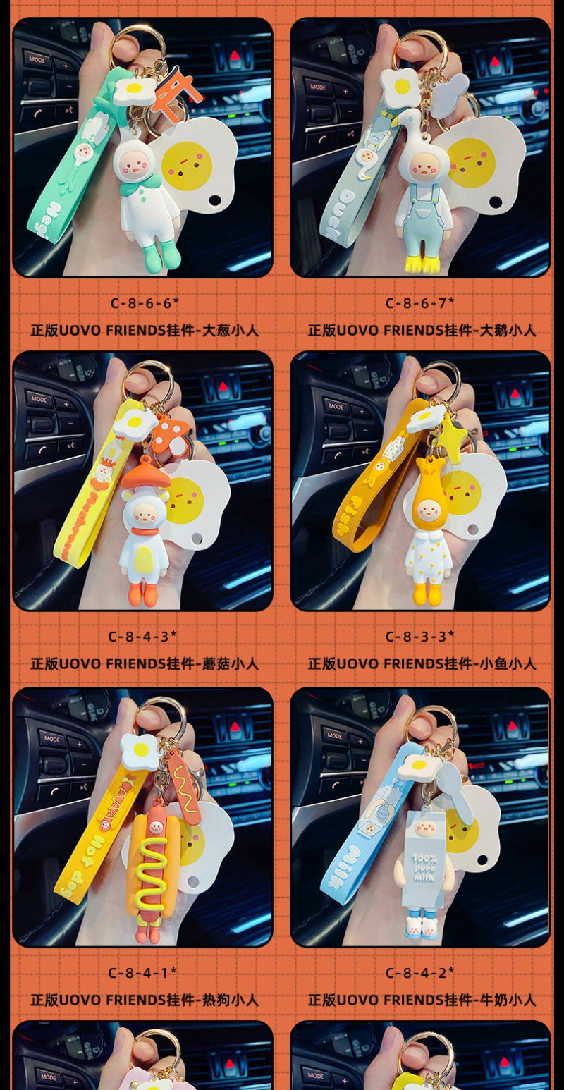 新款UOVO实物系列钥匙扣女可爱网红煎蛋香肠钥匙挂件书包挂饰一对