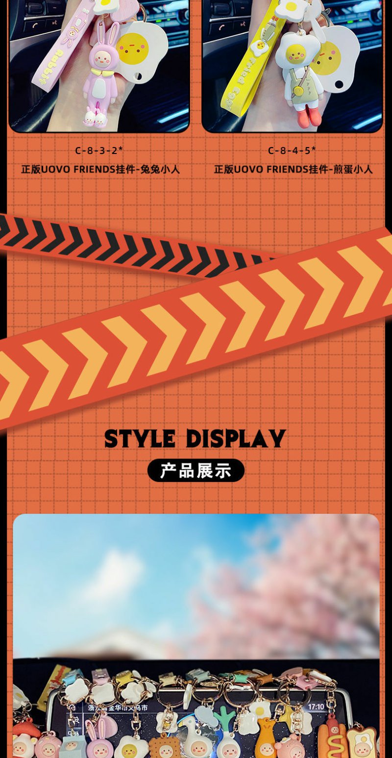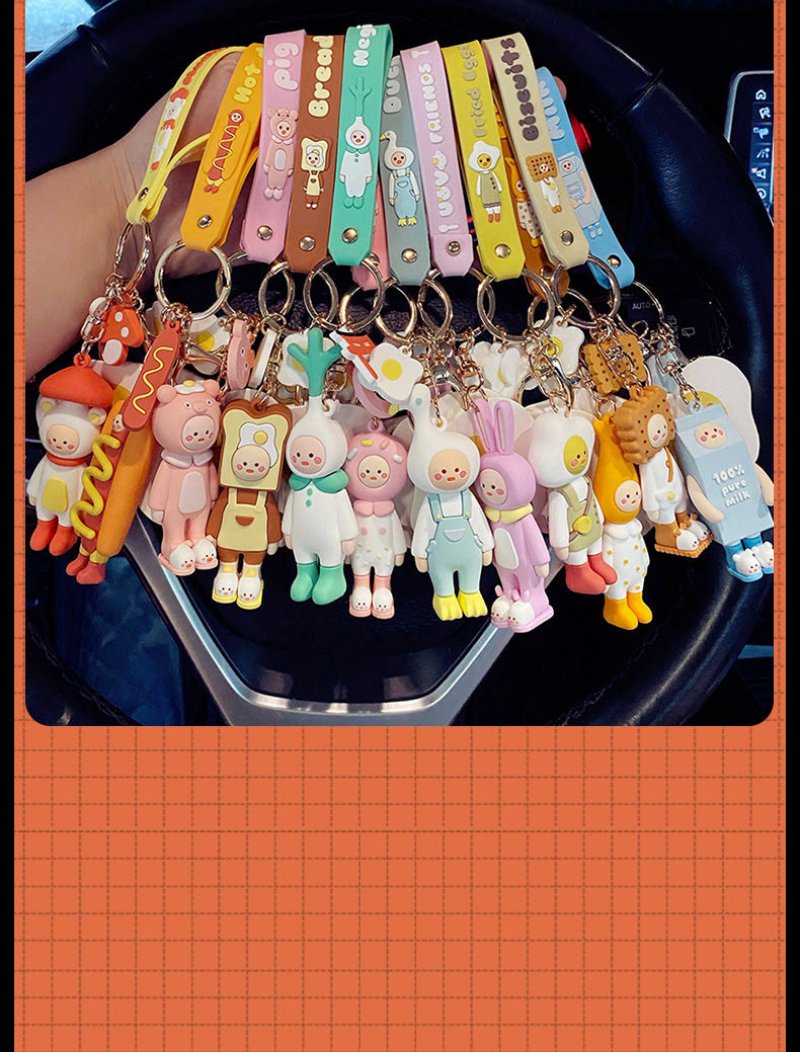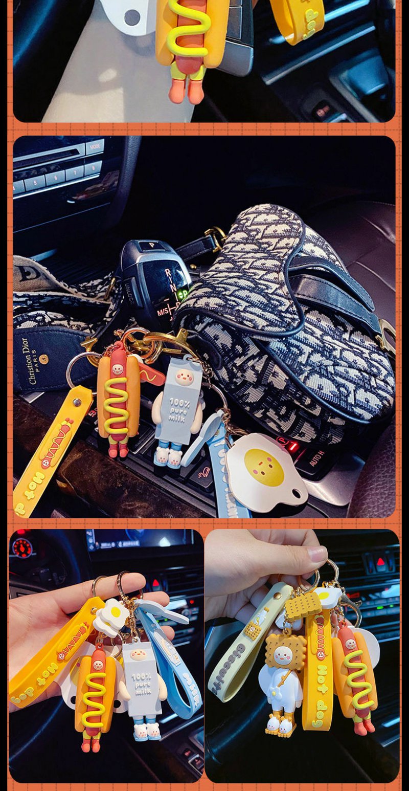 新款UOVO实物系列钥匙扣女可爱网红煎蛋香肠钥匙挂件书包挂饰一对