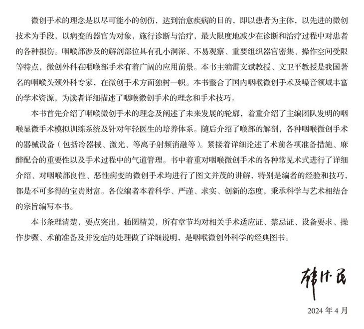 ✲ 可快速加深读者对咽喉微创手术的整体理论认识的理解,加速理念更新及技术的提升。