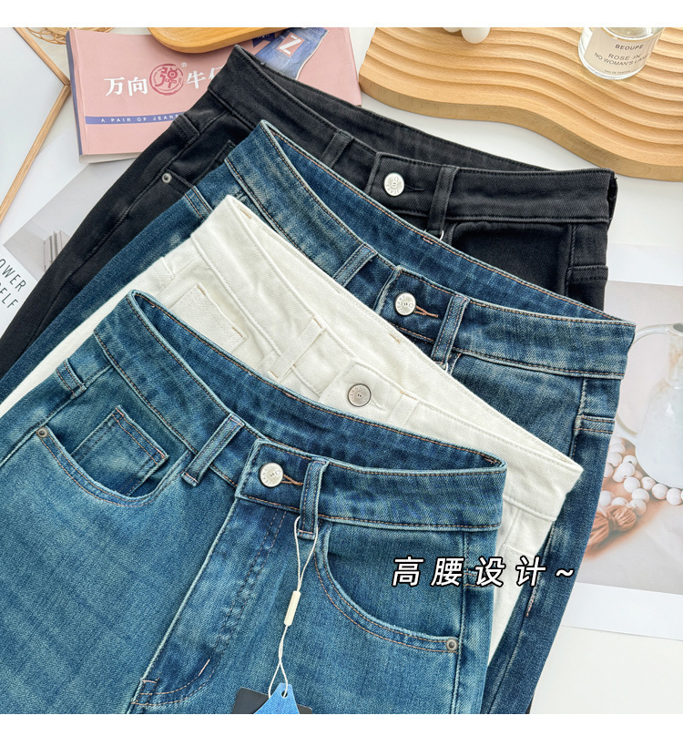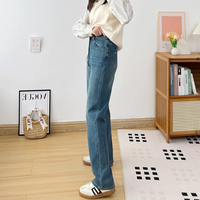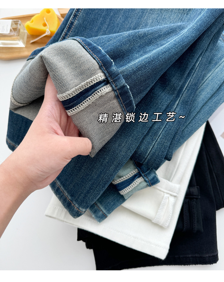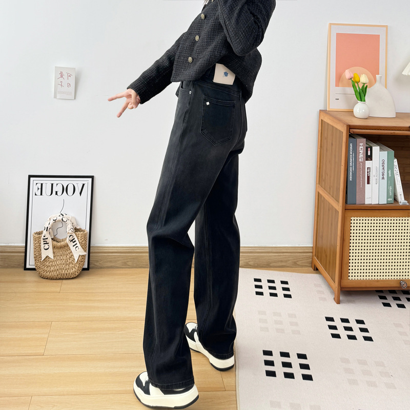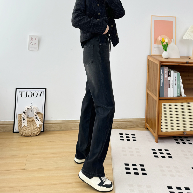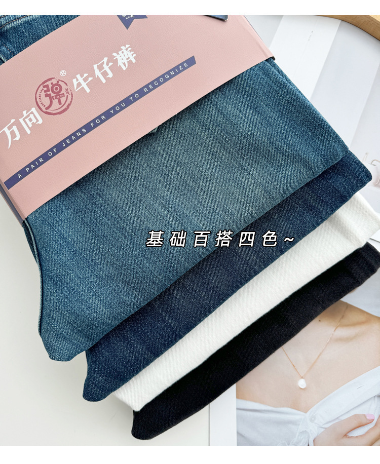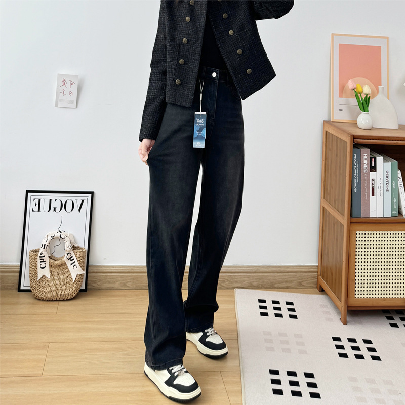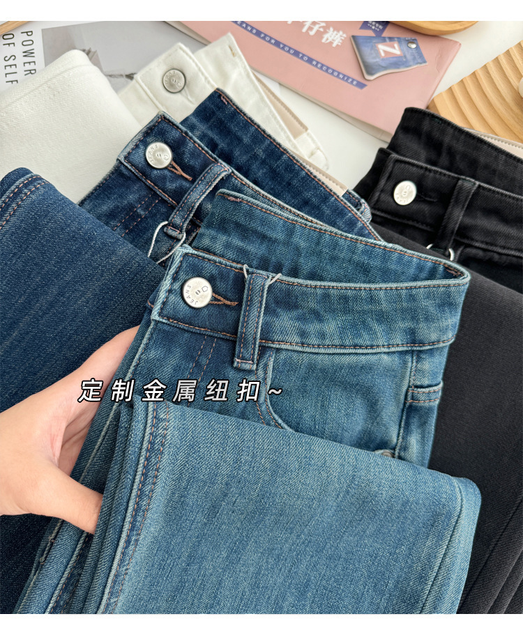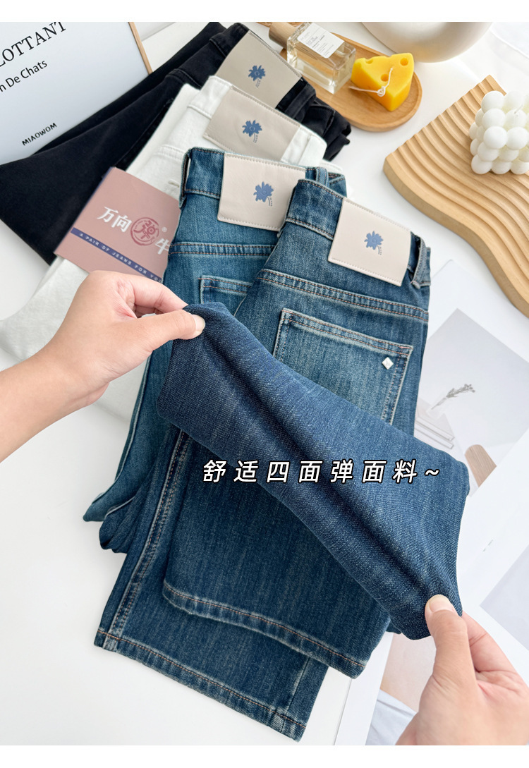 360四面弹加绒直筒牛仔裤女小个子高腰窄版显高显瘦阔腿冬款!