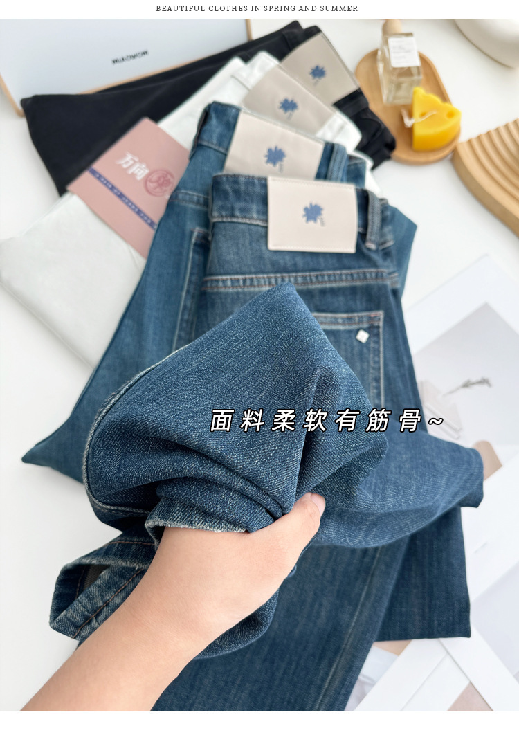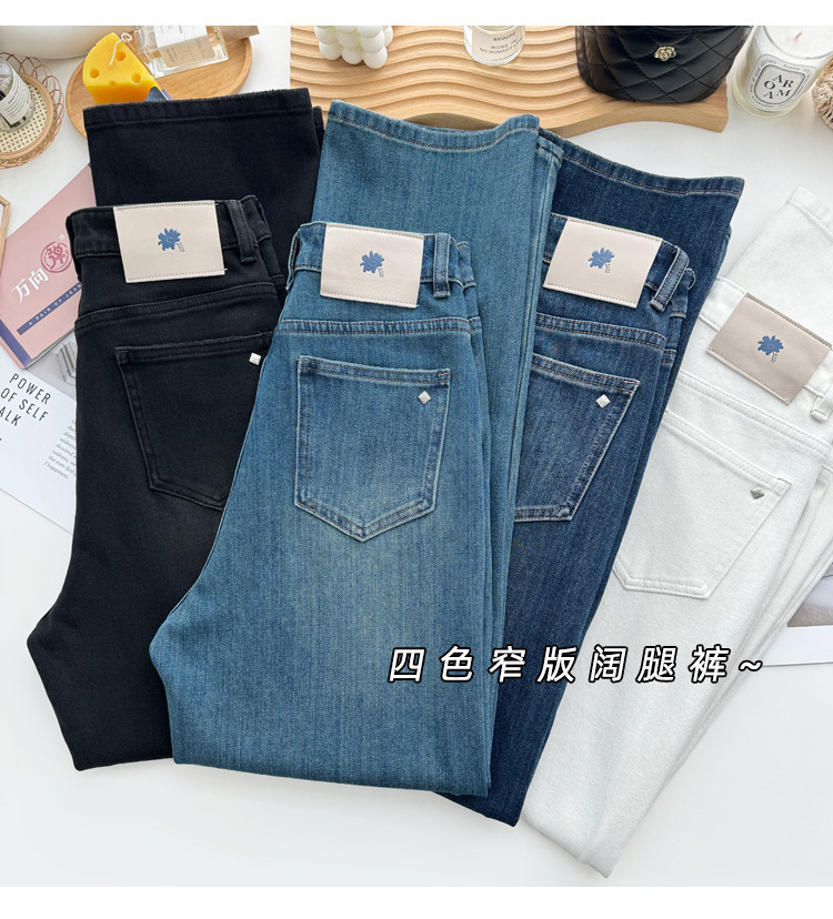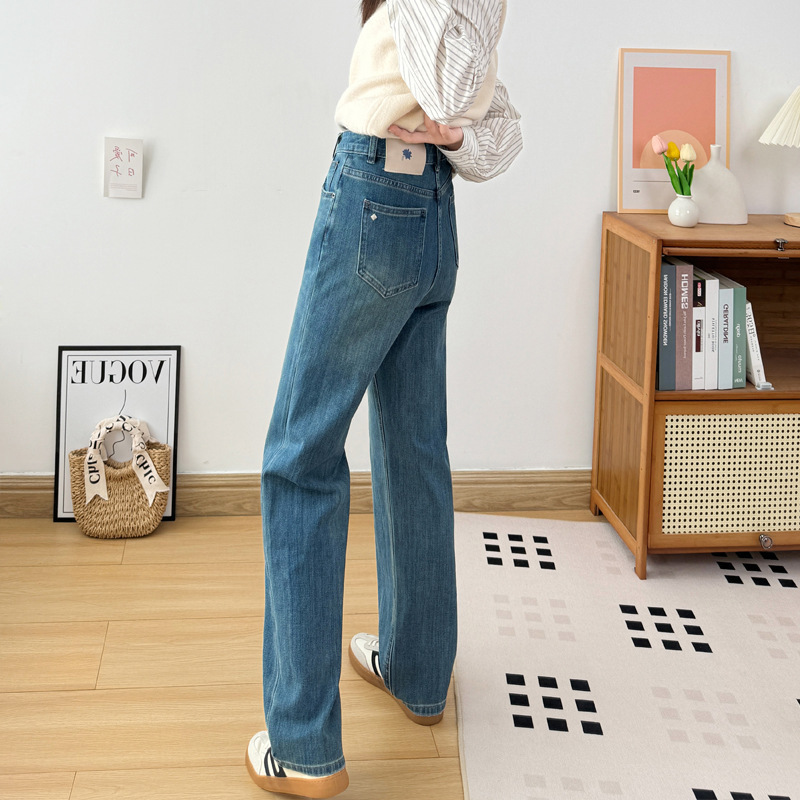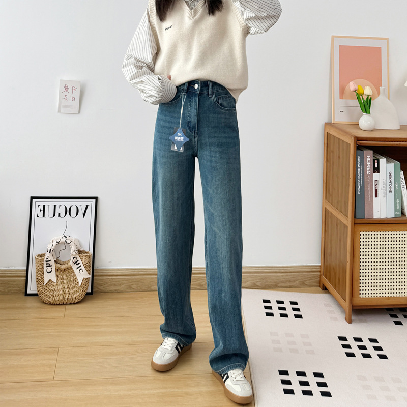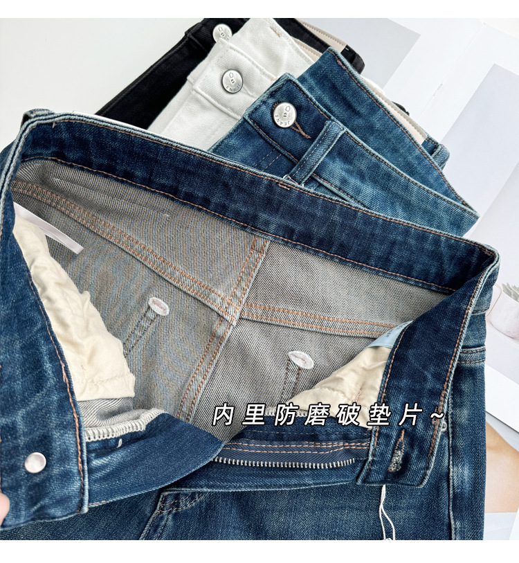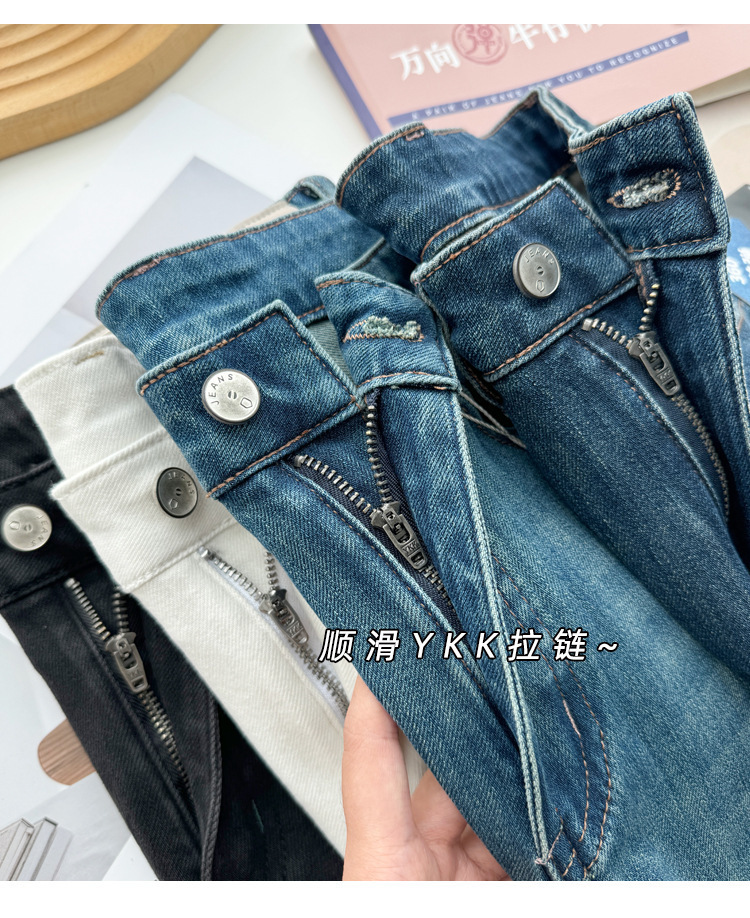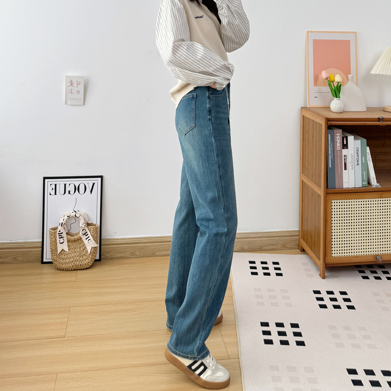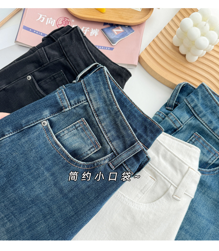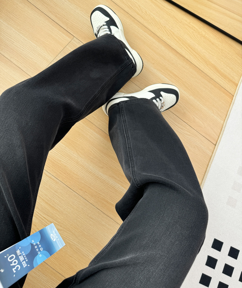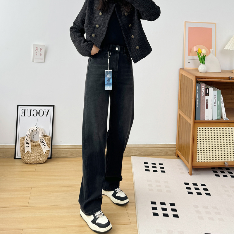 360四面弹加绒直筒牛仔裤女小个子高腰窄版显高显瘦阔腿冬款!