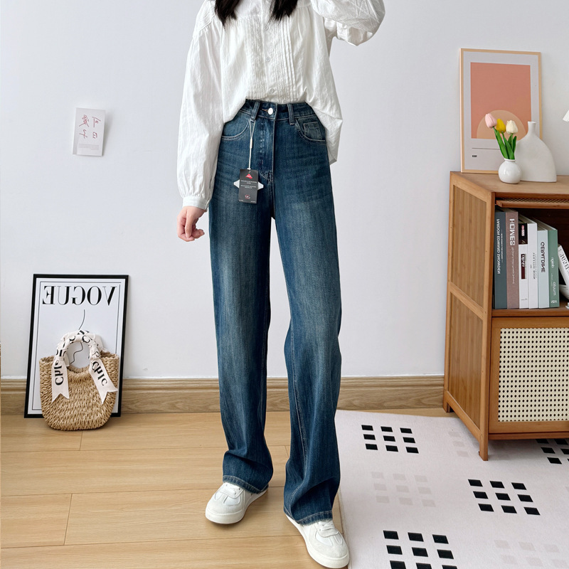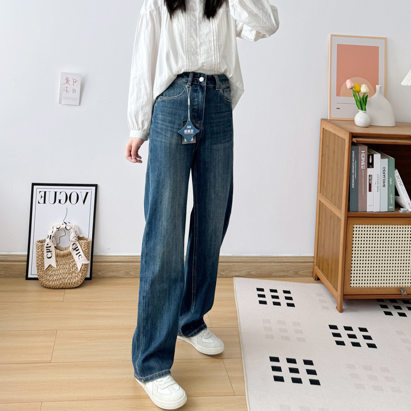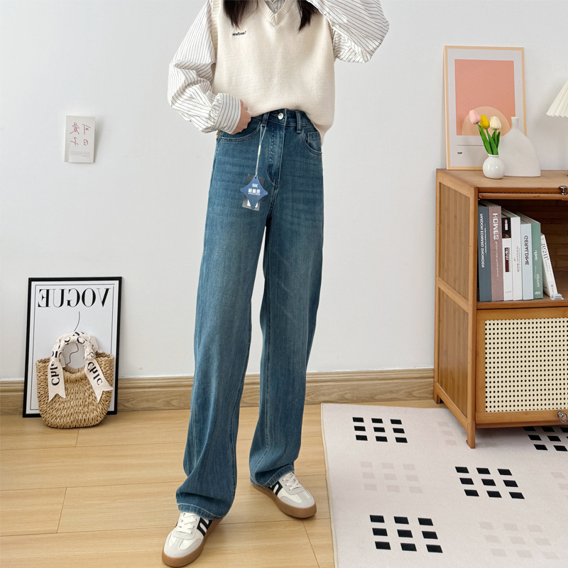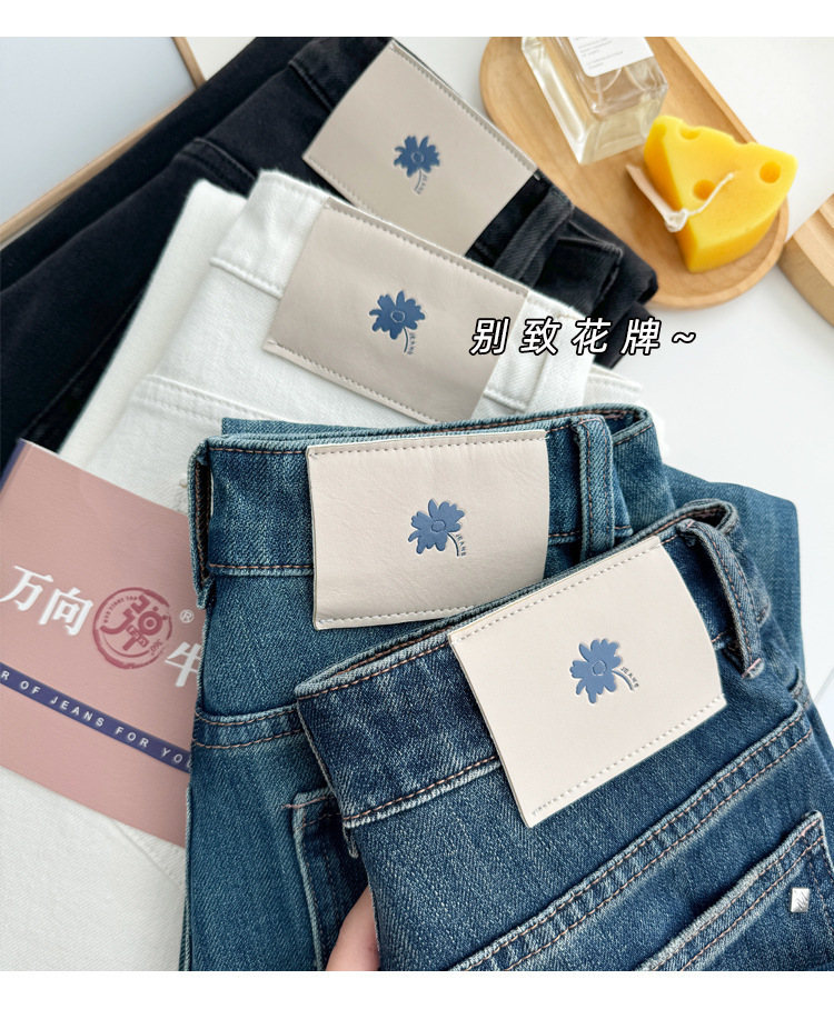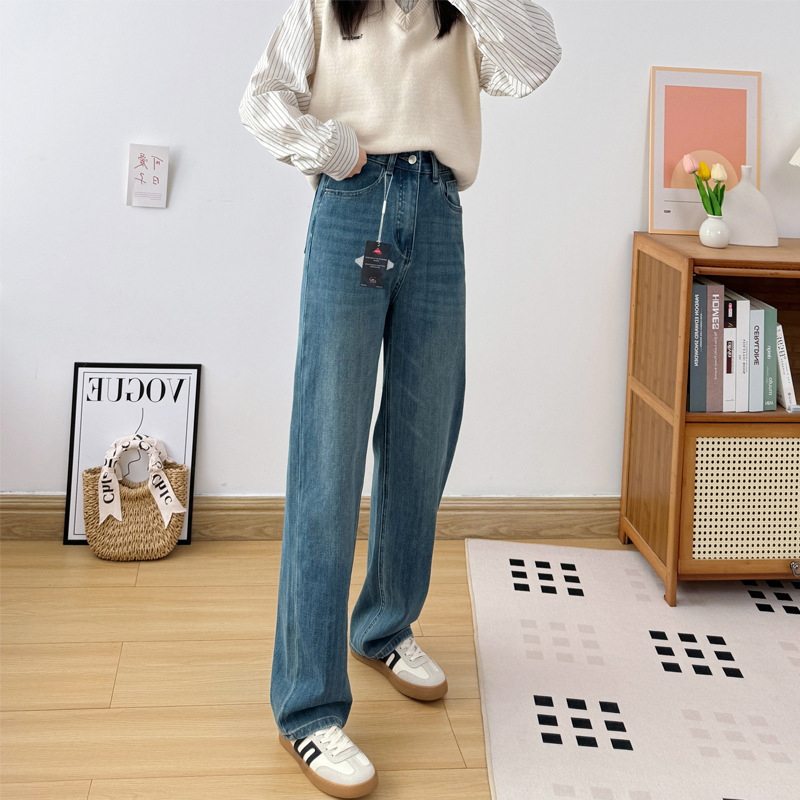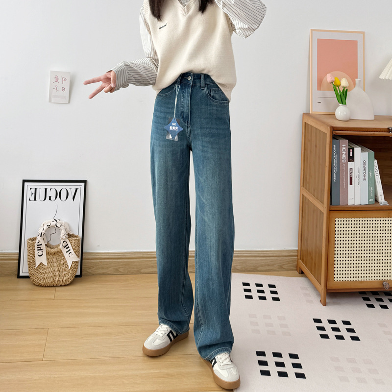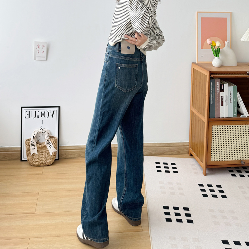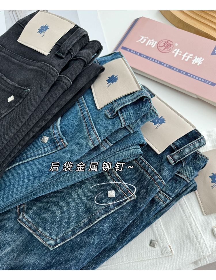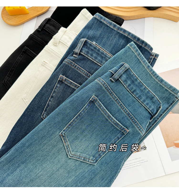 360四面弹加绒直筒牛仔裤女小个子高腰窄版显高显瘦阔腿冬款!
