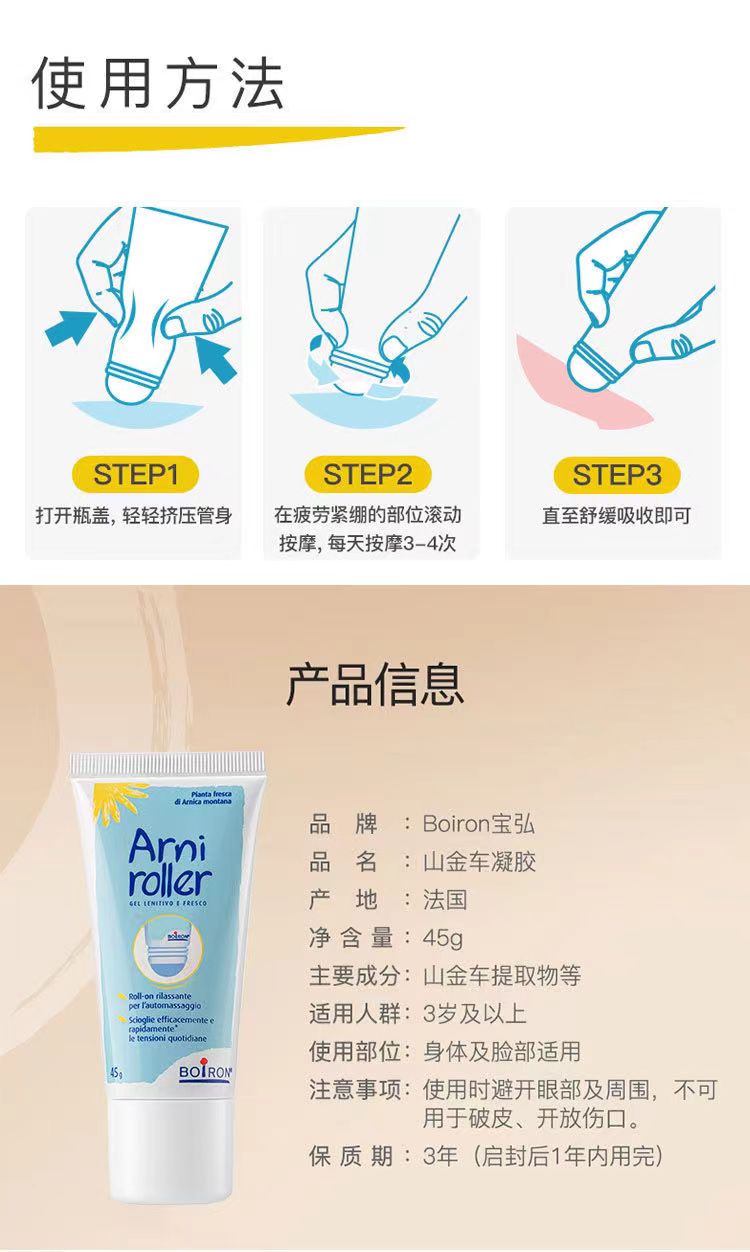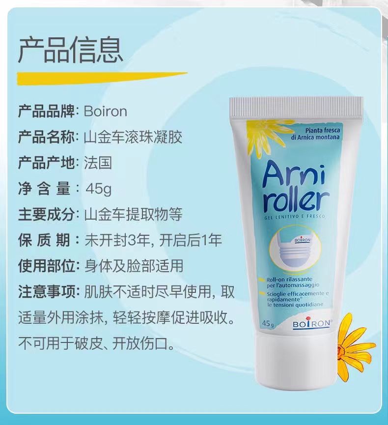 【一般贸易】法国进口宝弘BOIRON淤青膏山金车凝胶滚珠45g 儿童舒缓乌青撞摔伤包