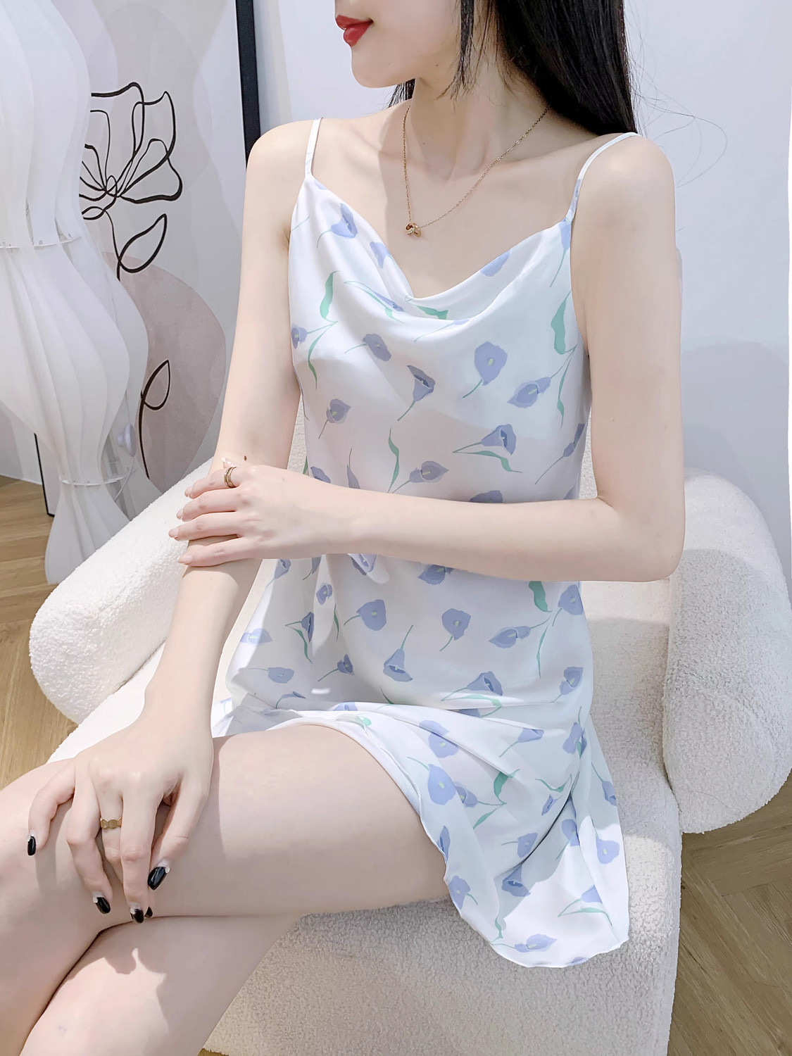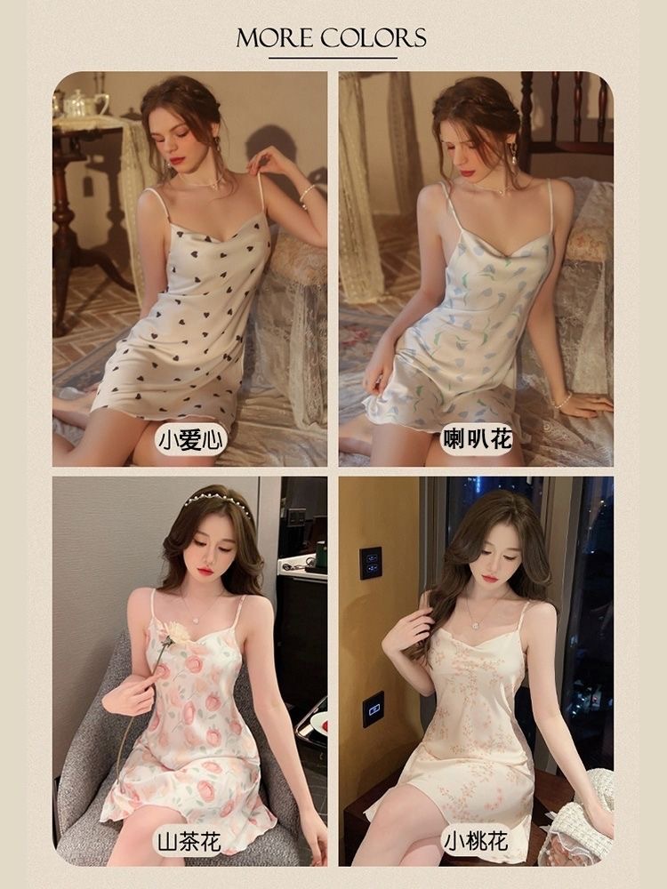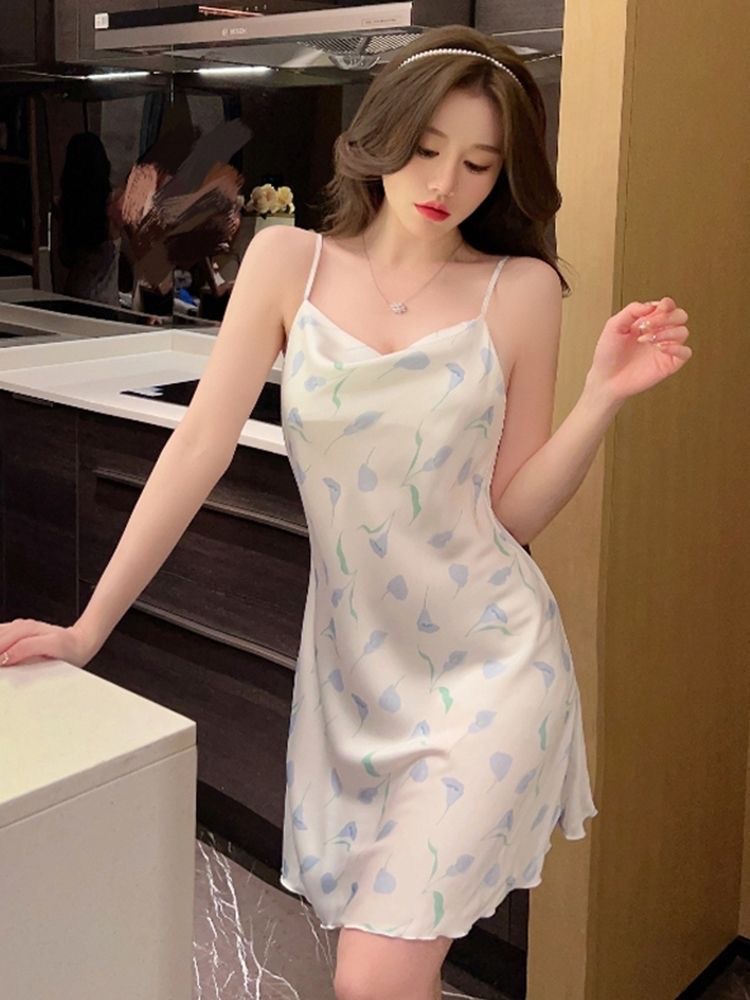 【超美!小碎花吊带连衣裙】优雅大方,冰丝手感,夏季不闷热,清爽透气,性感女睡衣高级感冰丝夏季纯欲风睡裙
