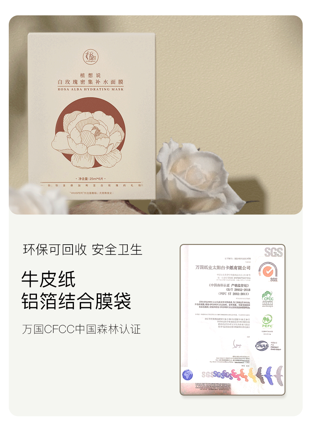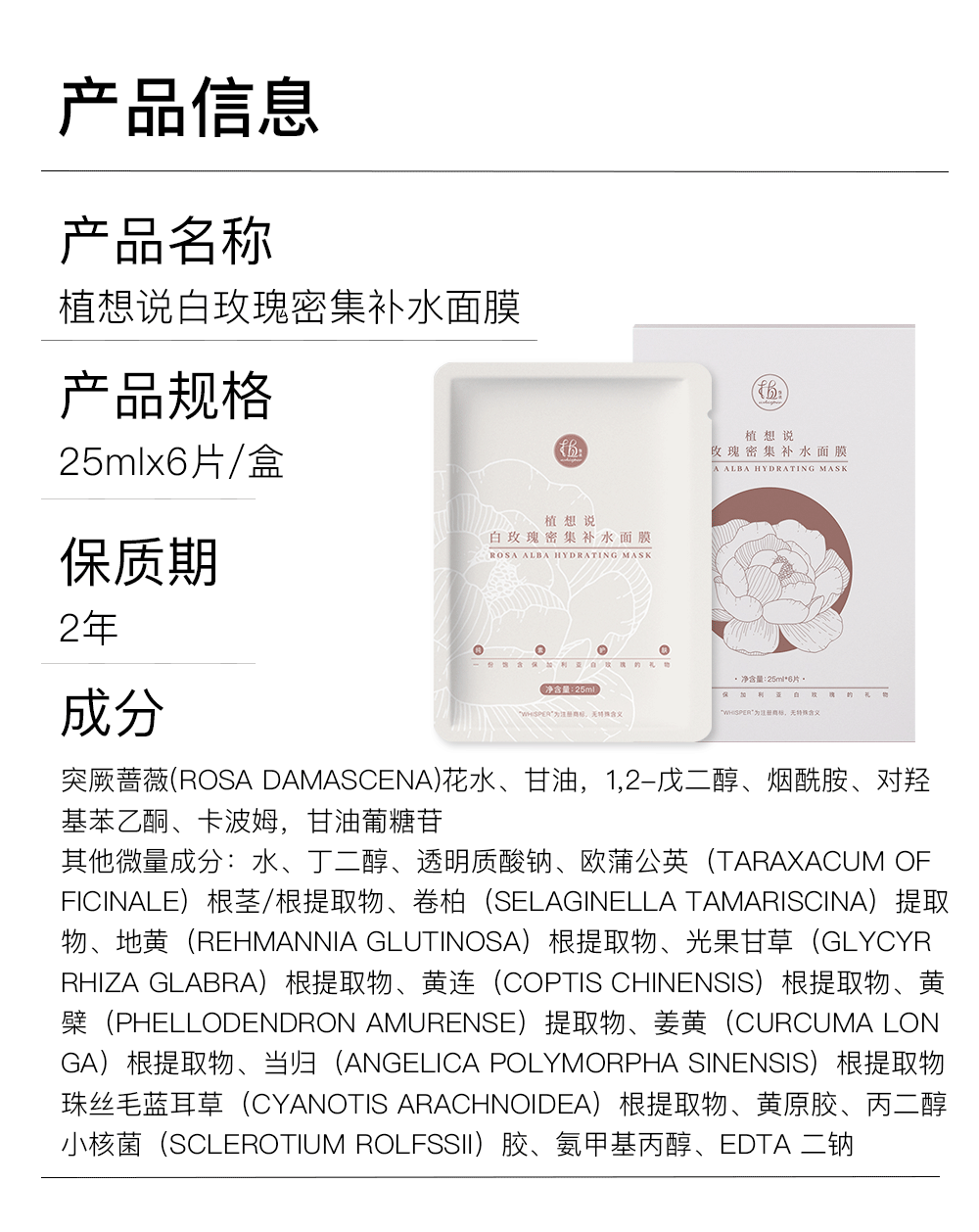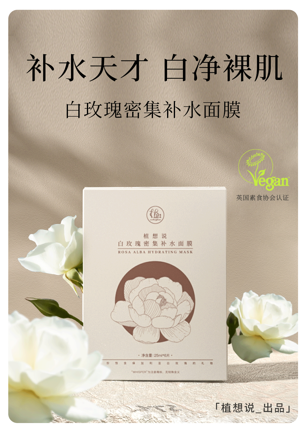 补水天才 白净裸肌丨植想说白玫瑰密集补水面膜,密集补水,提亮小能手、改善色素沉着,纯素环保