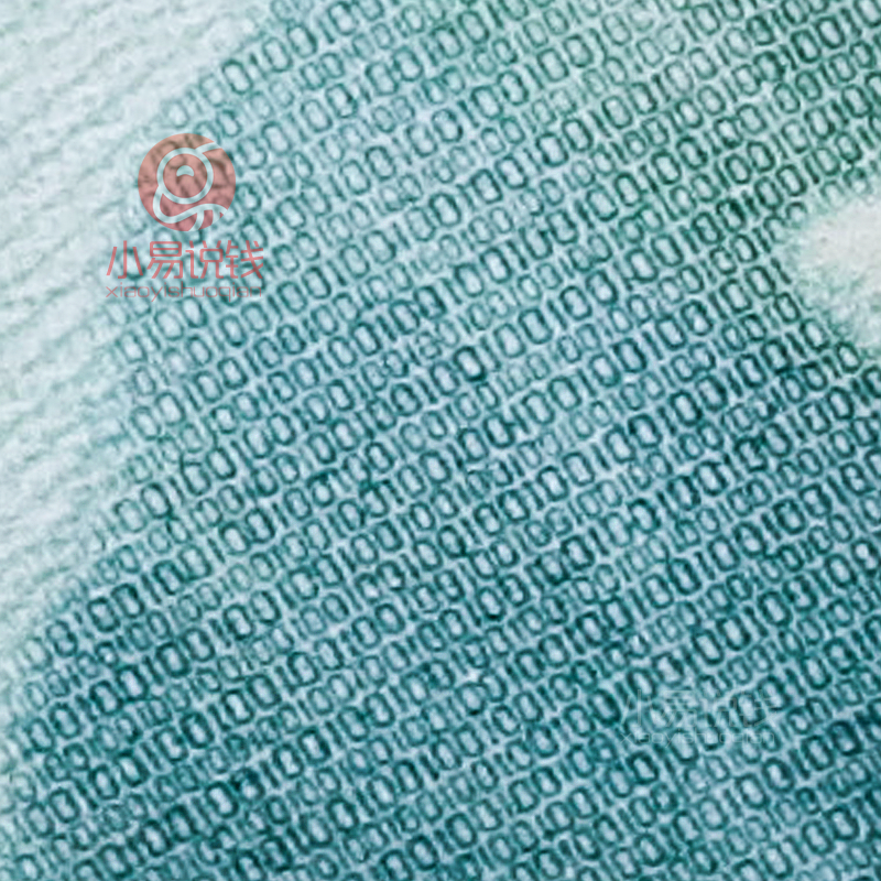 这张钞颜值超高,是我国迄今为止唯一水墨题材的纪念钞,也是第一枚竖版纪念钞!采用了先进的防伪理念,荷叶,实则是由无数个大小不一的微缩“100”的数字构成,非常精妙。