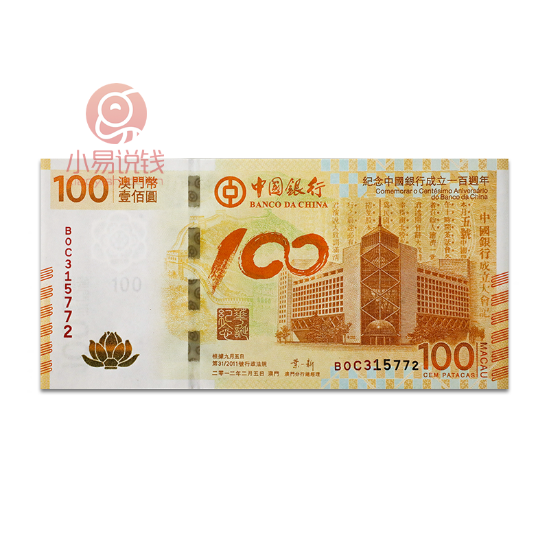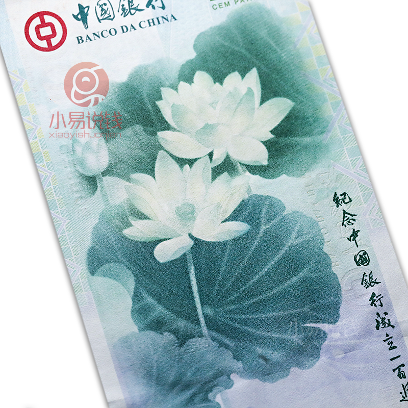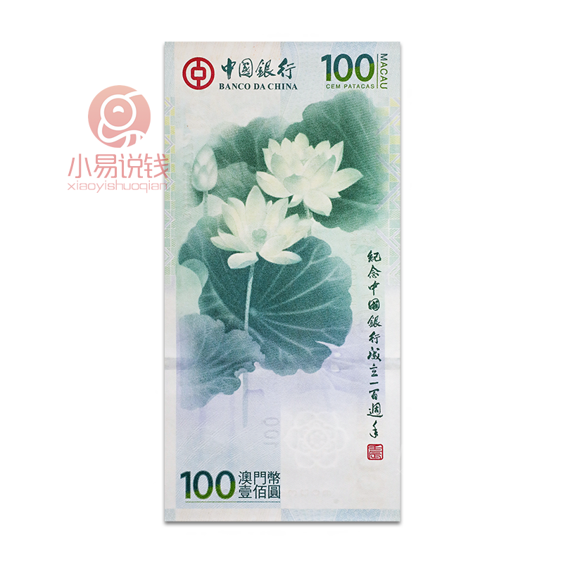 澳门版中国银行100周年纪念钞,因为背面图案为荷花,故称荷花钞,此次上架的都带原装册。
