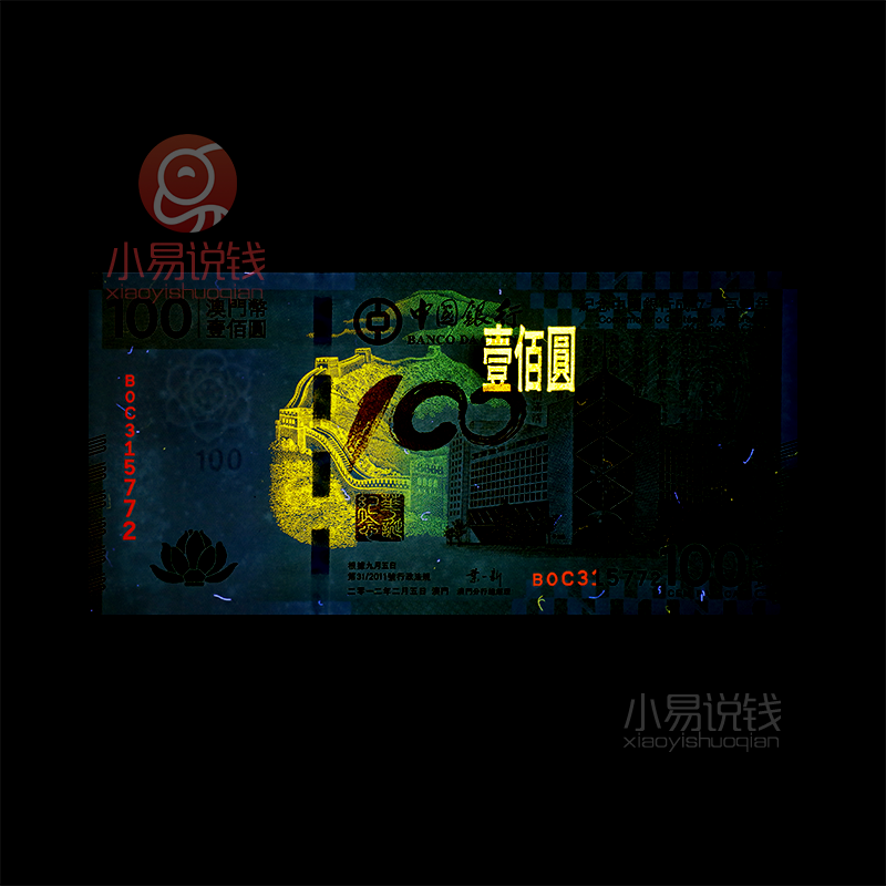 注意事项: 1.港澳地区比较潮湿,所以该钞在荧光下会有轻微潮斑,请知晓。