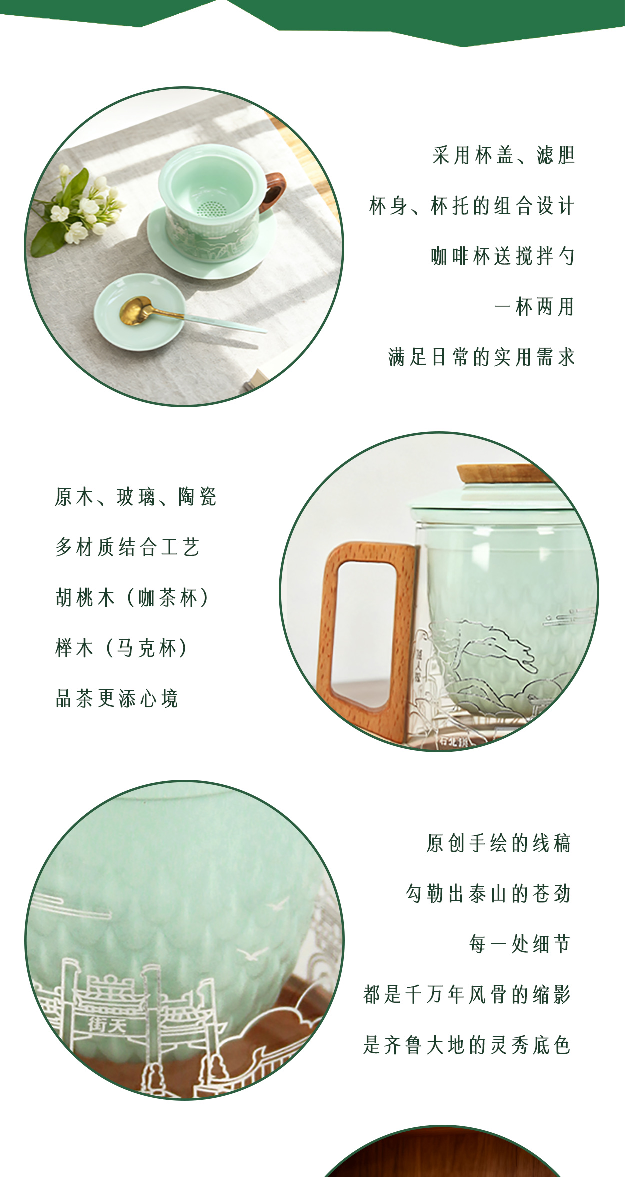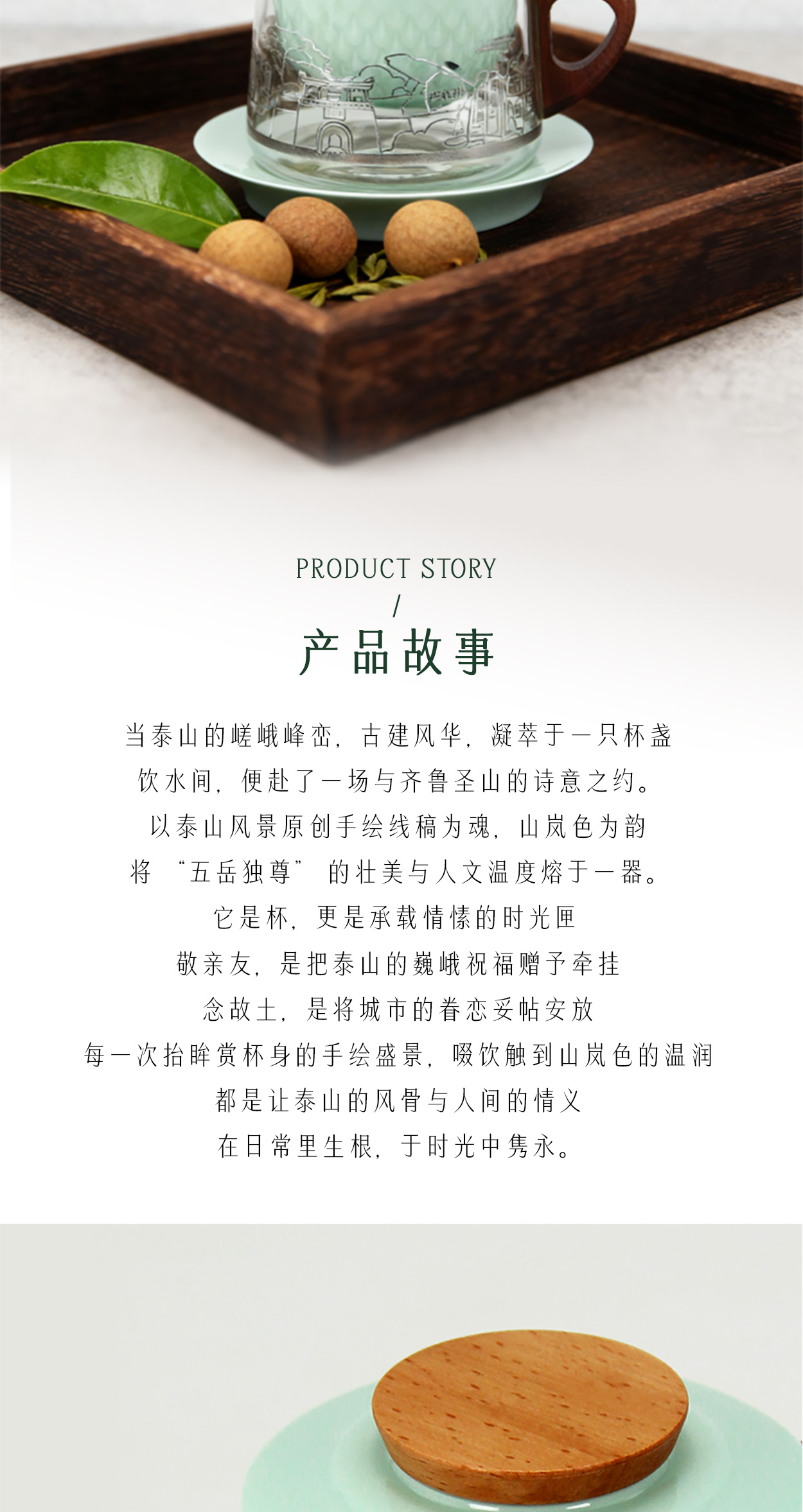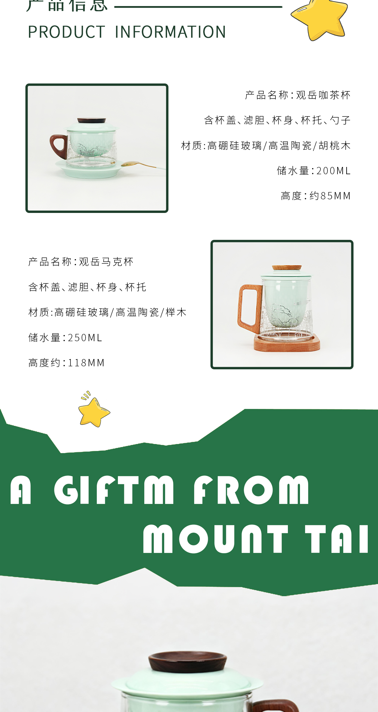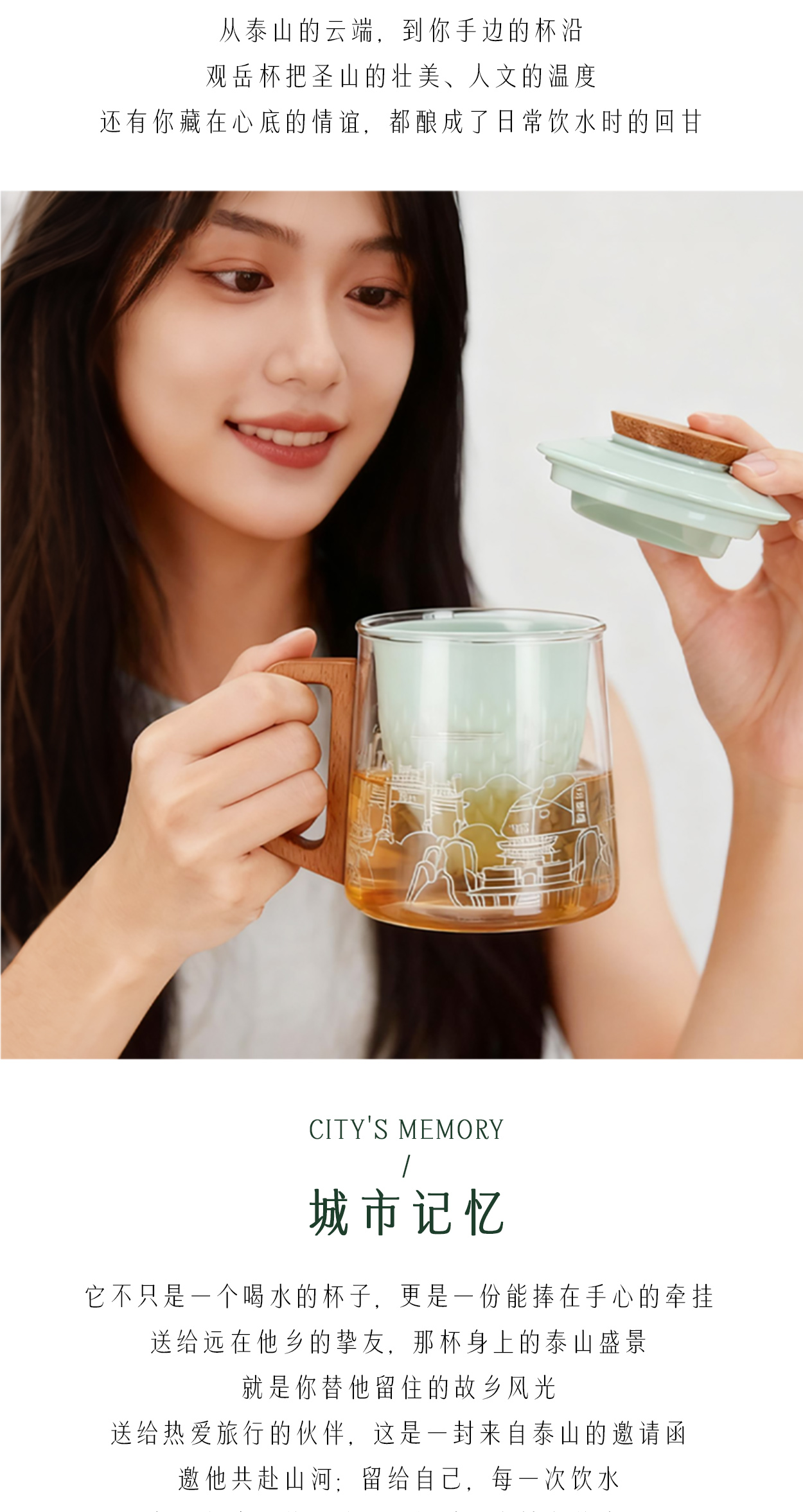 Tai集泰山文创马克杯城市礼物茶咖杯木柄玻璃茶杯咖啡杯伴手礼