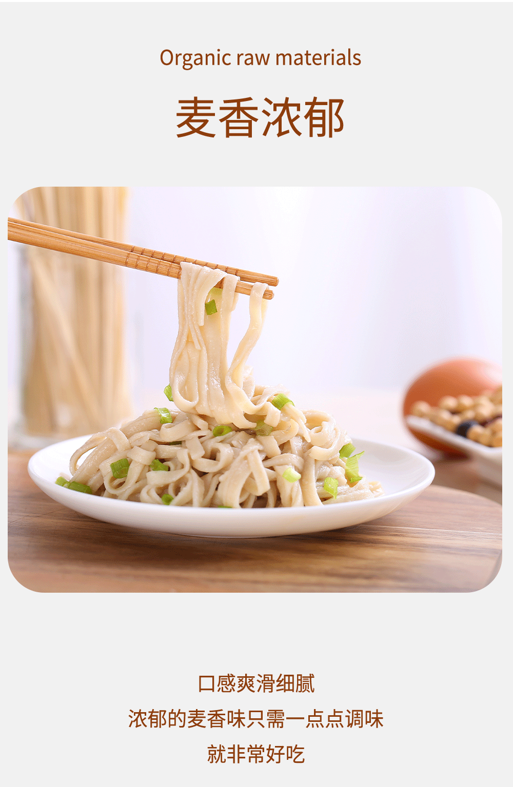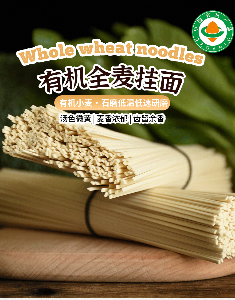 有机全麦面条500g/包|全程有机麦香味浓含麦麸