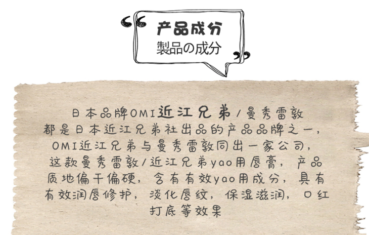 现货▲日本近江兄弟薄荷滋唇膏4g 保湿无色防干裂护唇口红打底 男女可用