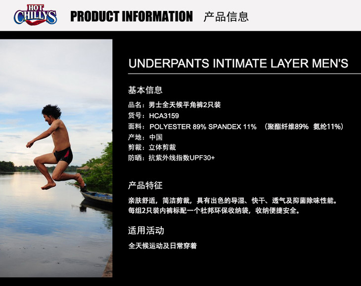 红辣椒 男款 2条装 内裤 平角裤 抑菌快干排汗 HCA3159 JX100