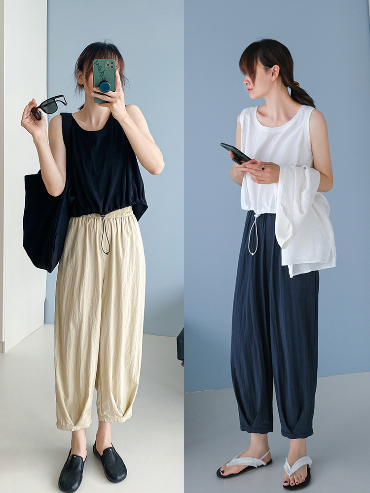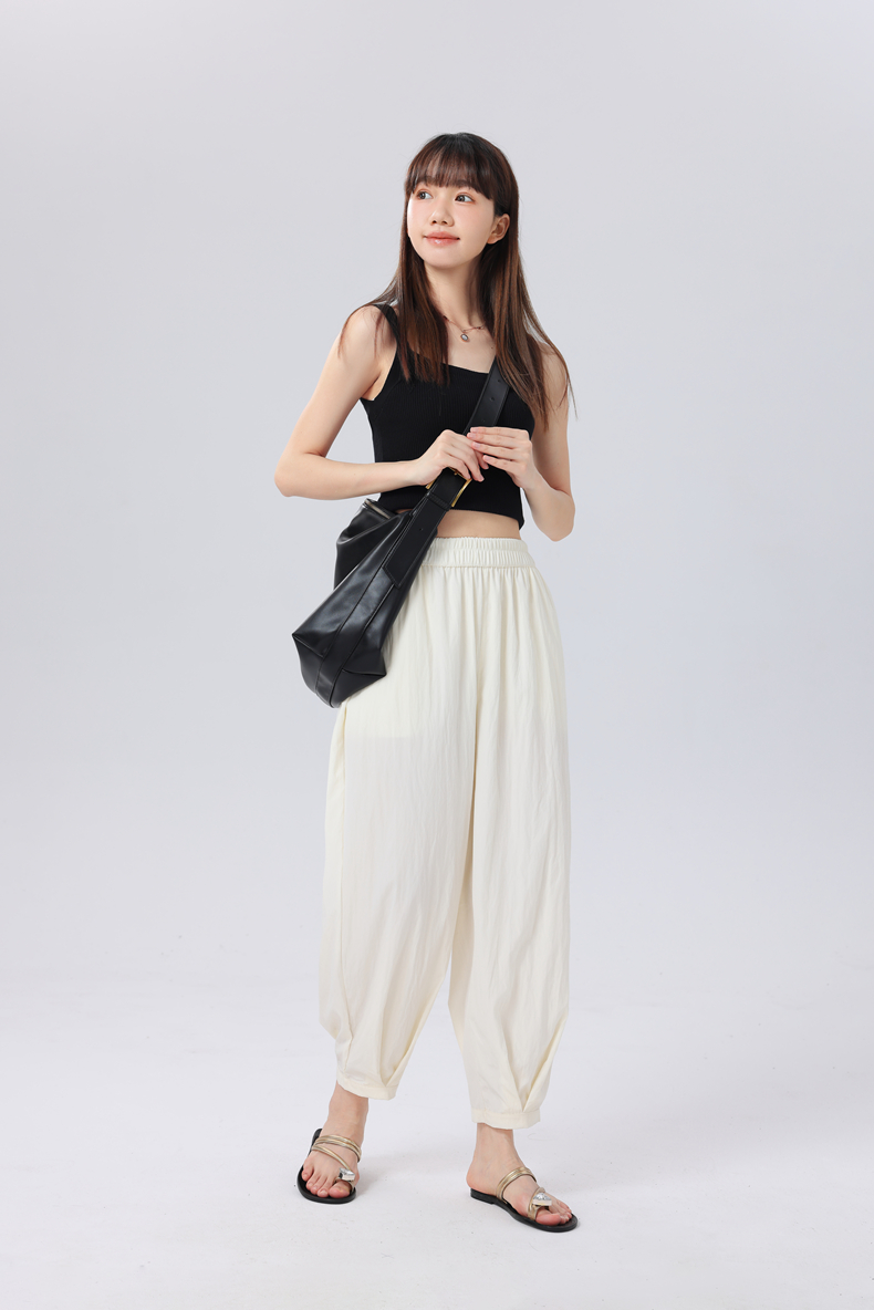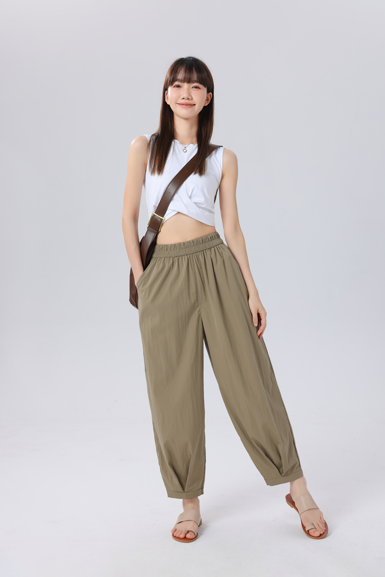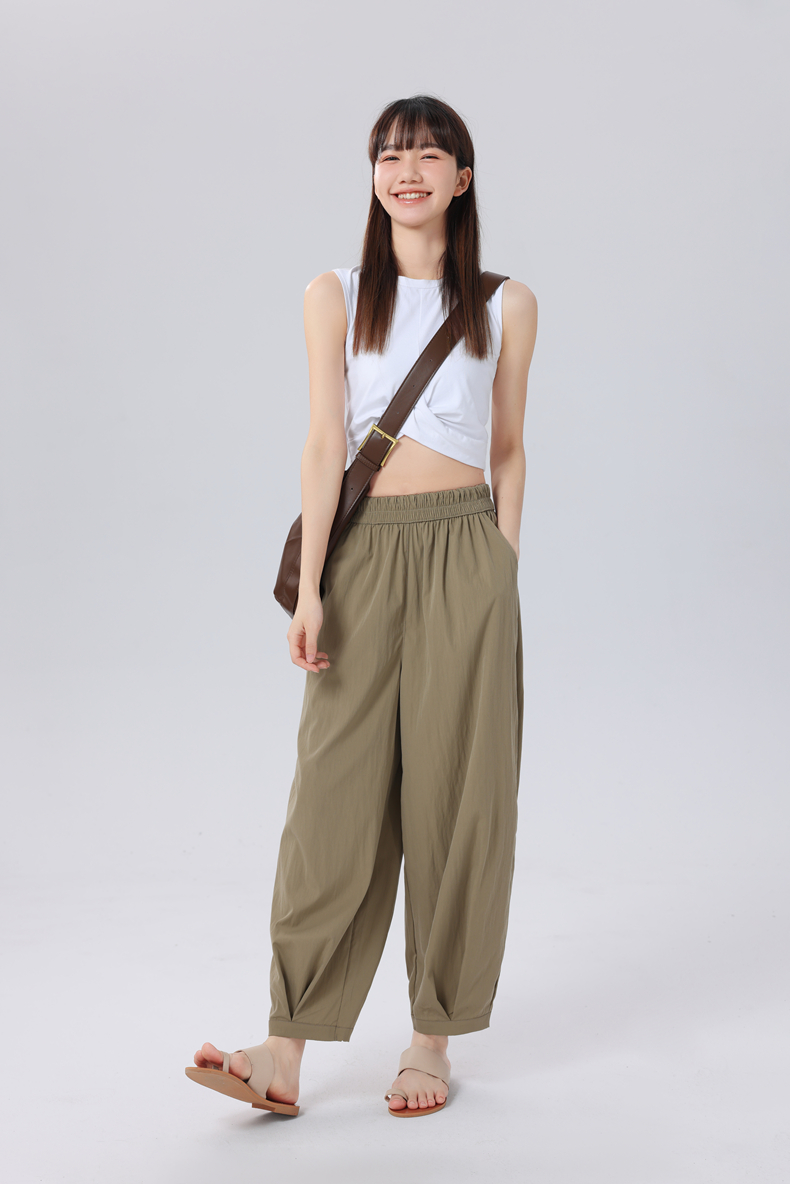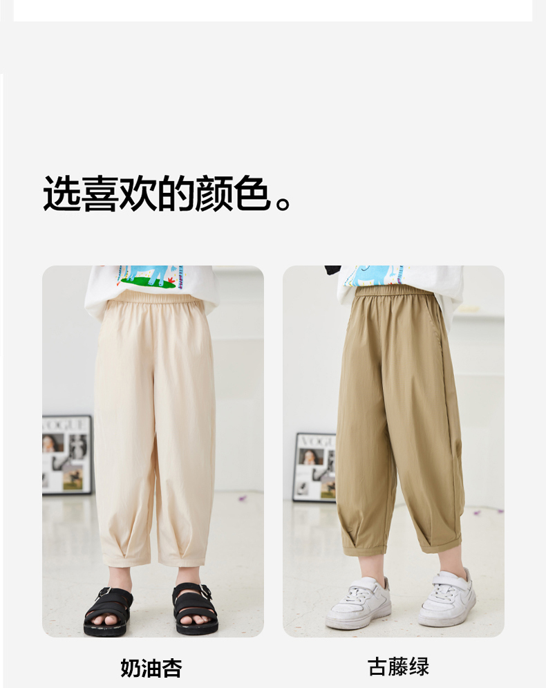 夏季爆品!6色凉感垂坠清凉透气亲子款VV花苞裤 “梨形身材”真命天裤 简约纯色高腰压褶休闲裤凉感降温 “行走的小空调” 森系儿童花苞裤_ZSY