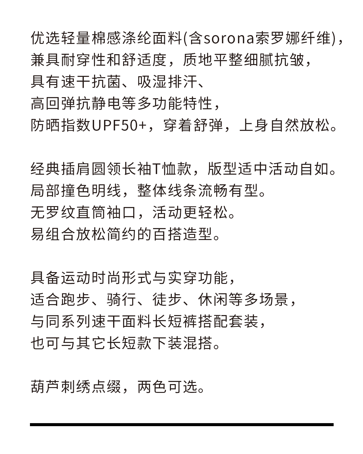 吃茶去chichaqu25速干明线索罗娜吸湿排汗防晒轻量插肩长袖T恤