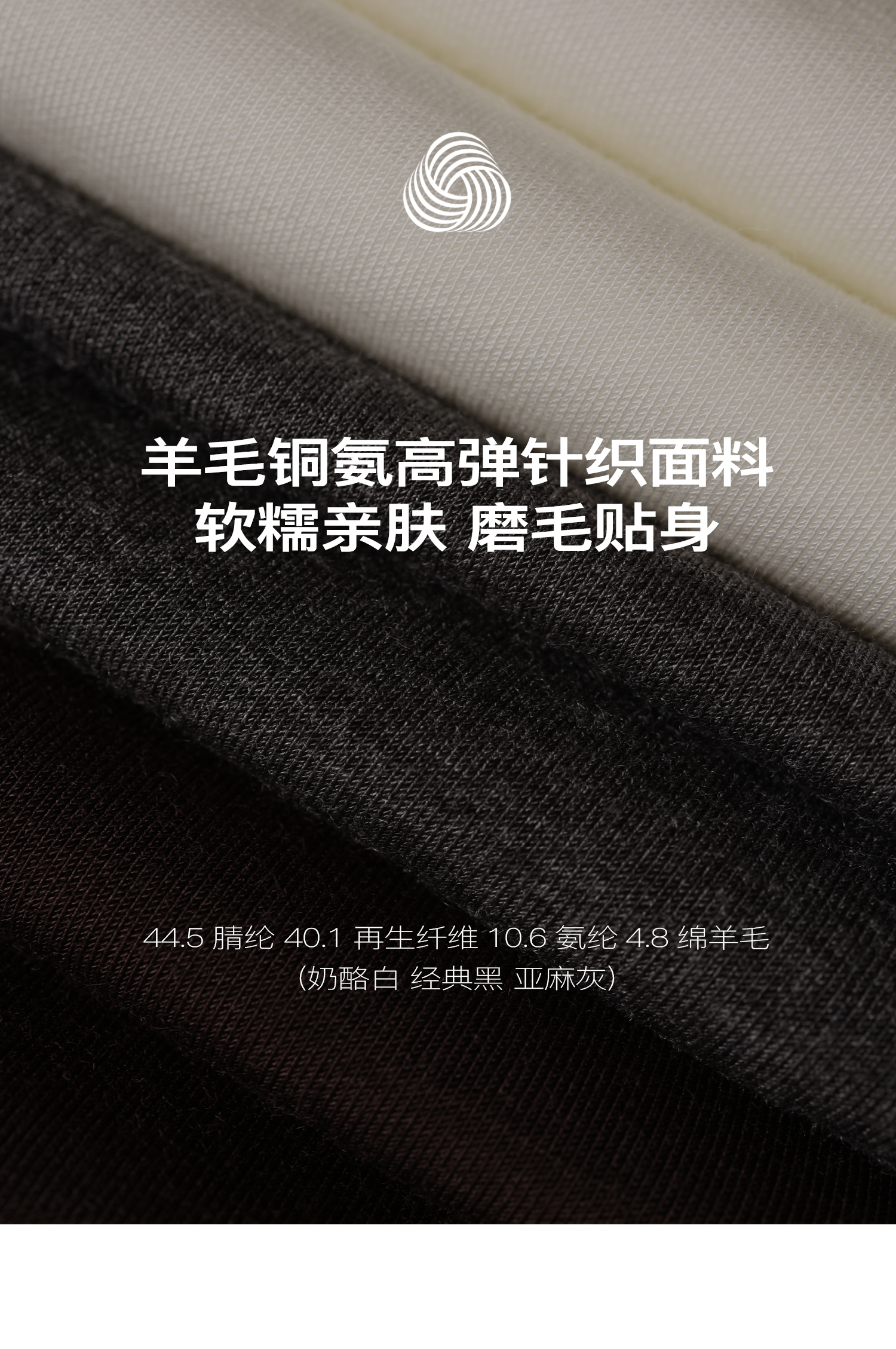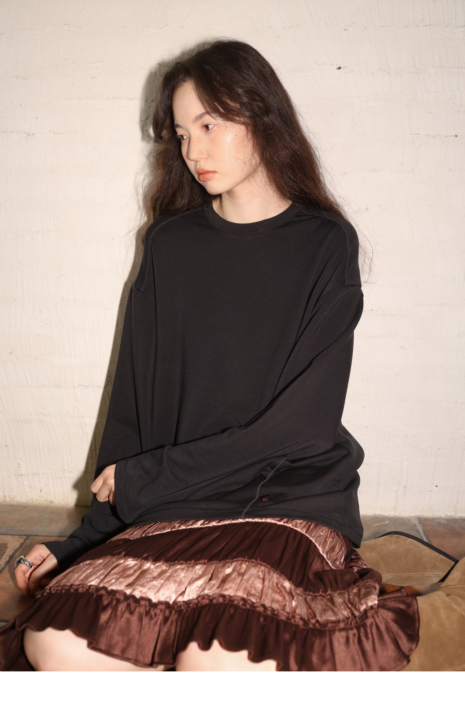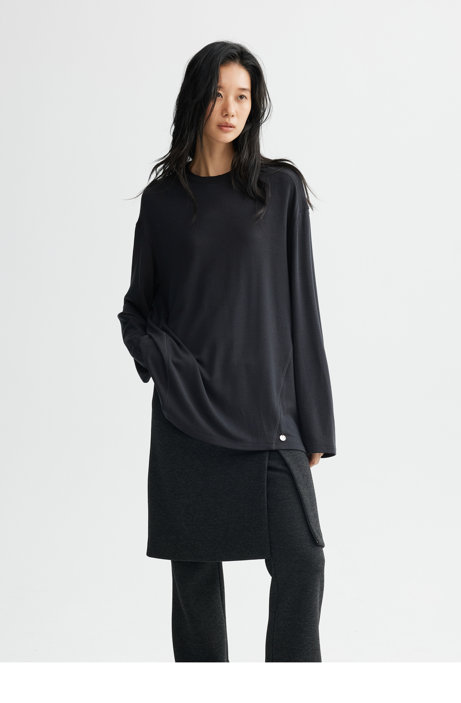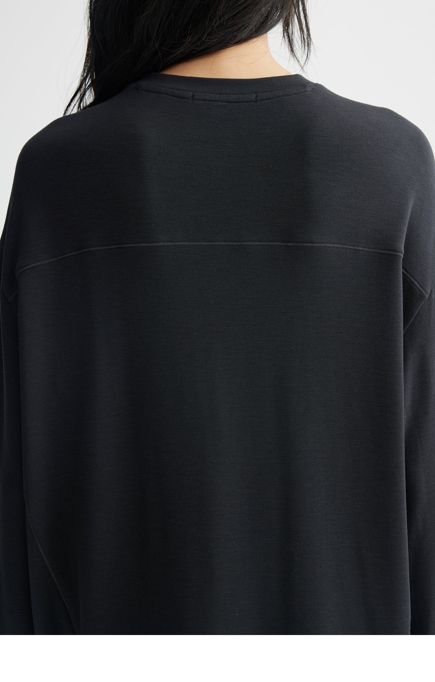 素舶 绵羊毛高弹亲肤双面针织圆领剪裁分割长袖T恤
