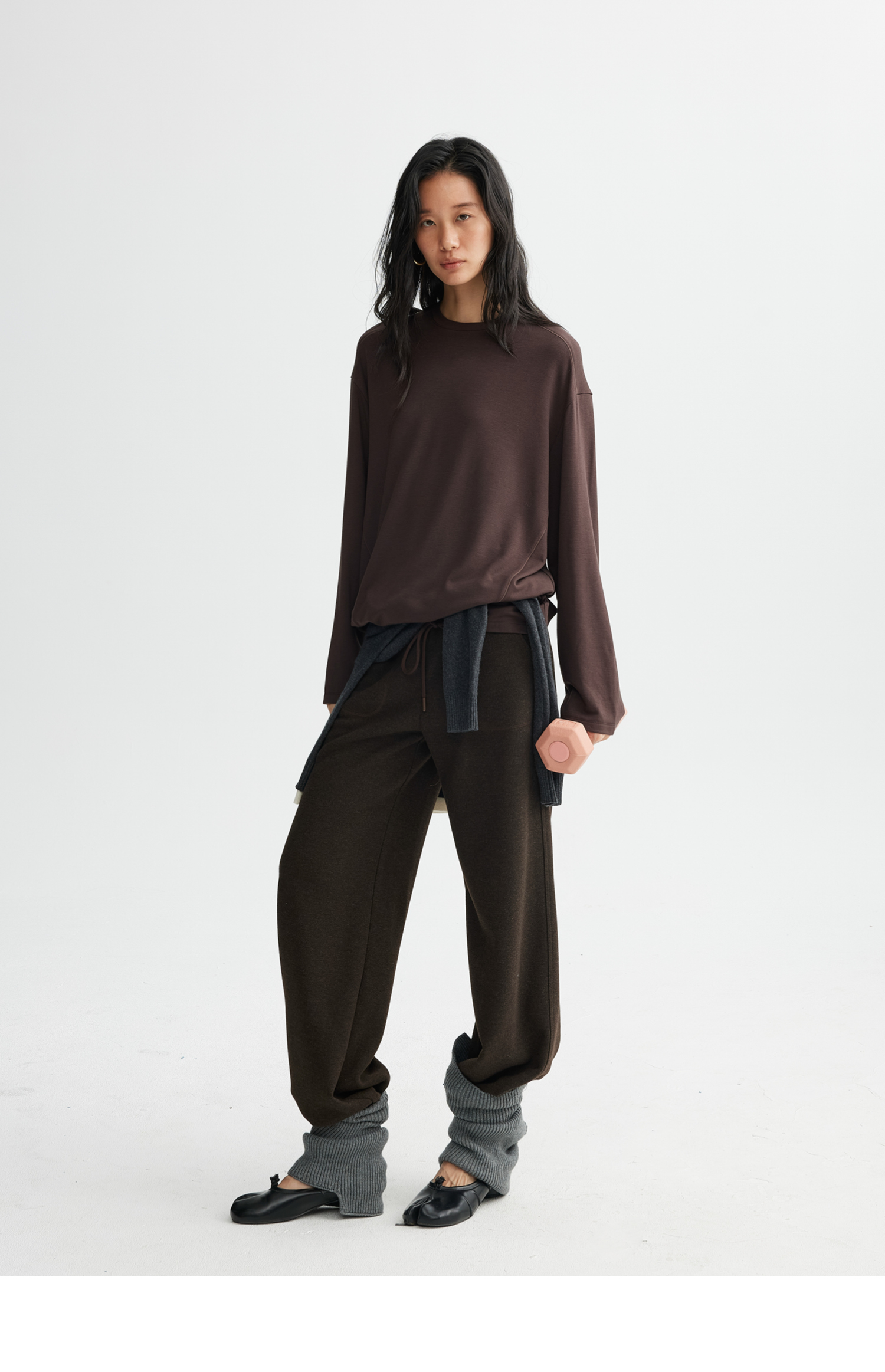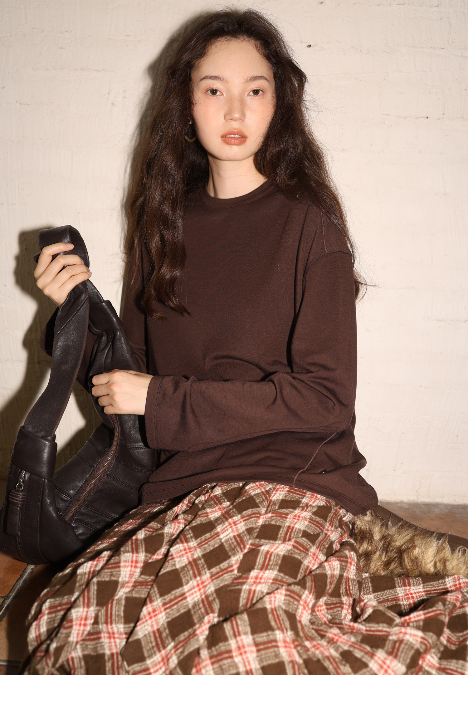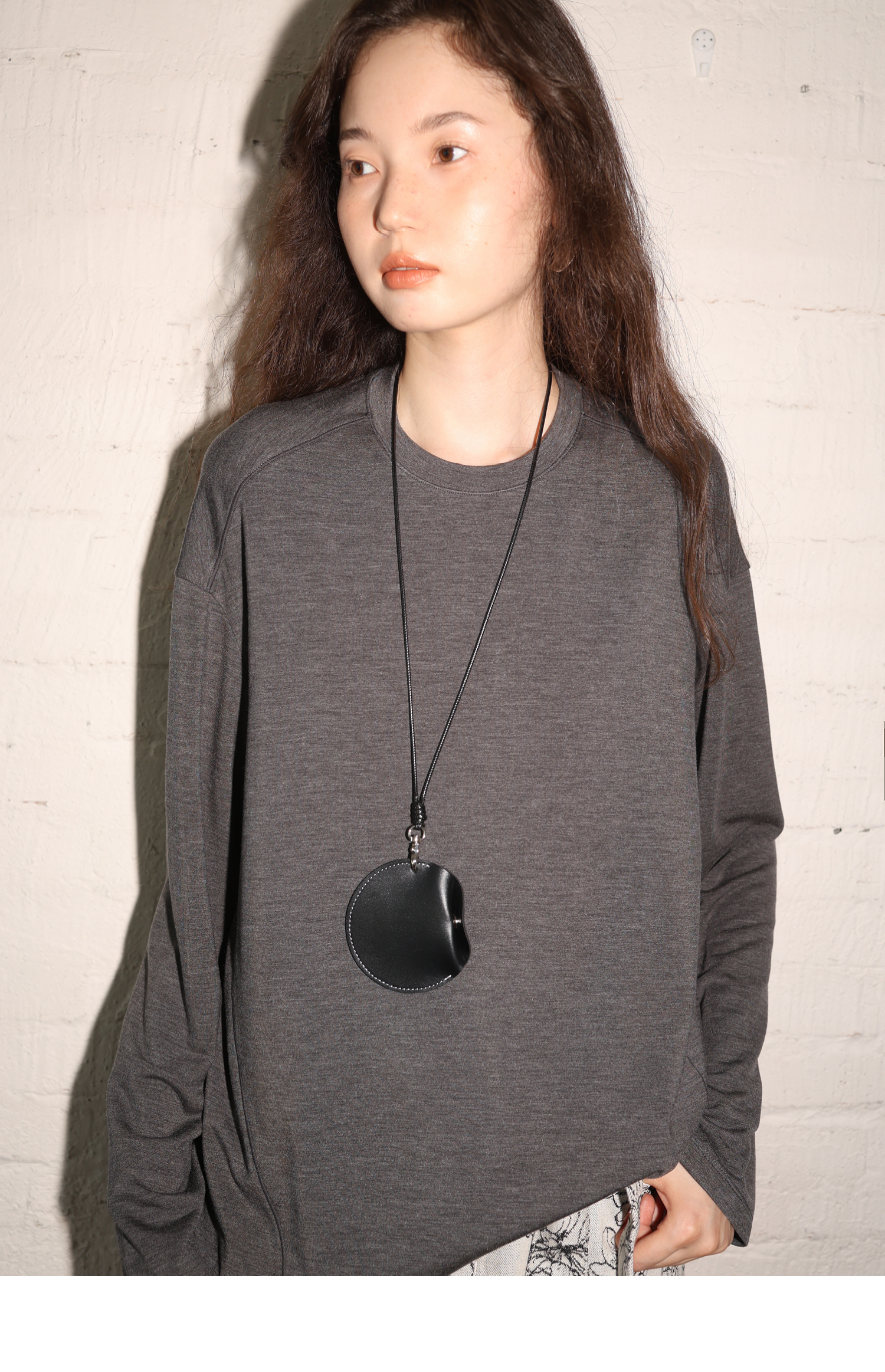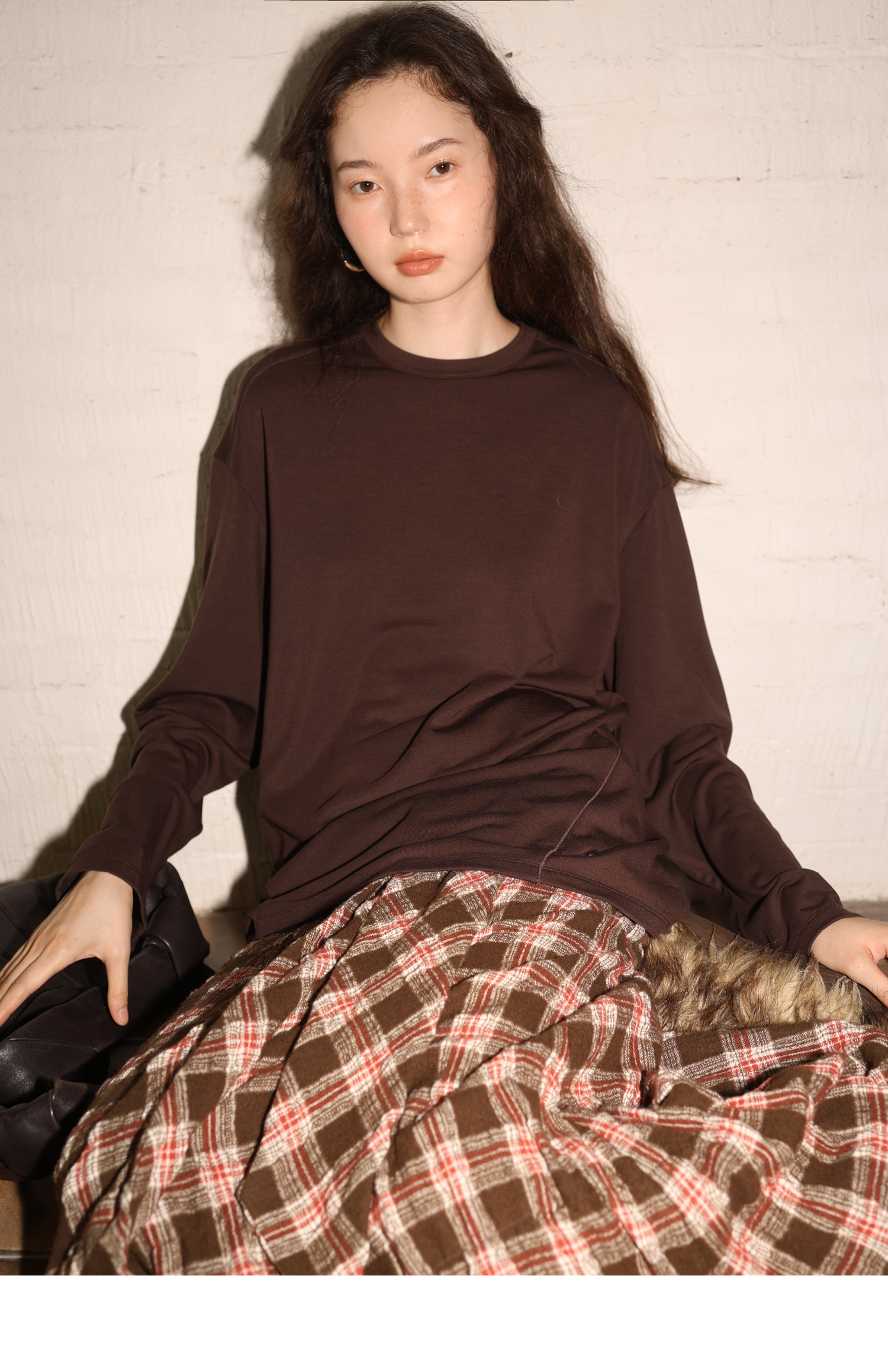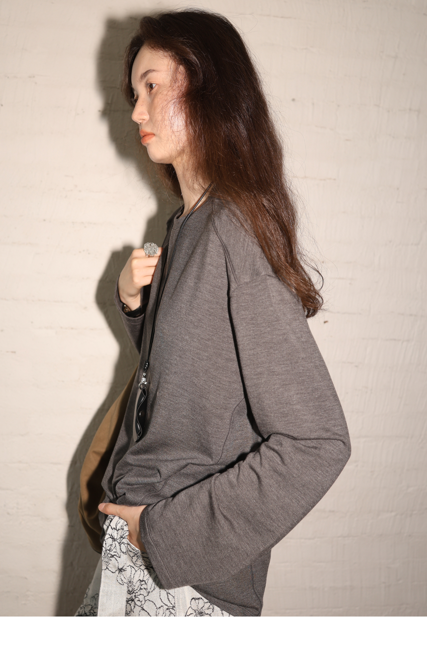 素舶 绵羊毛高弹亲肤双面针织圆领剪裁分割长袖T恤