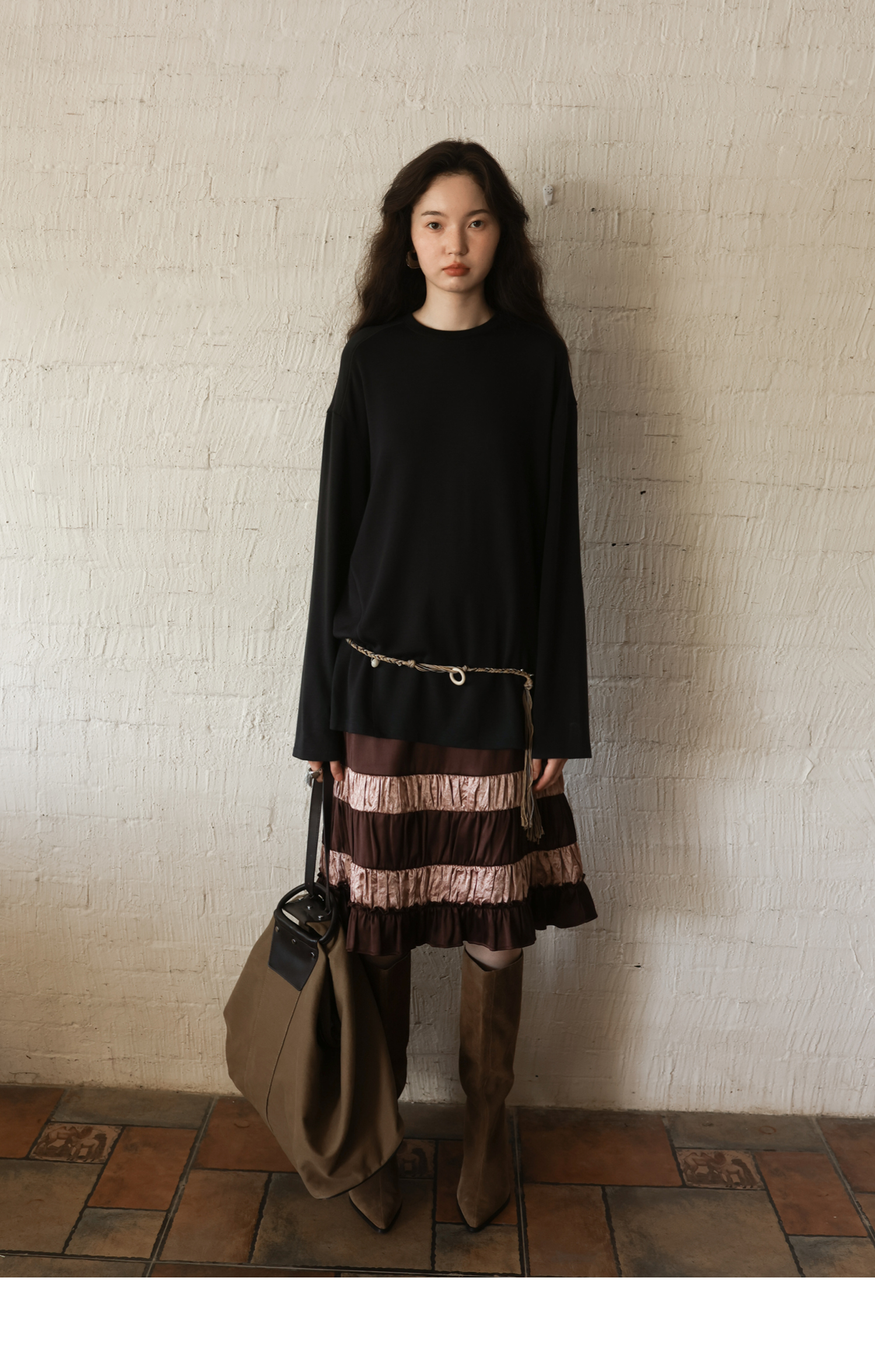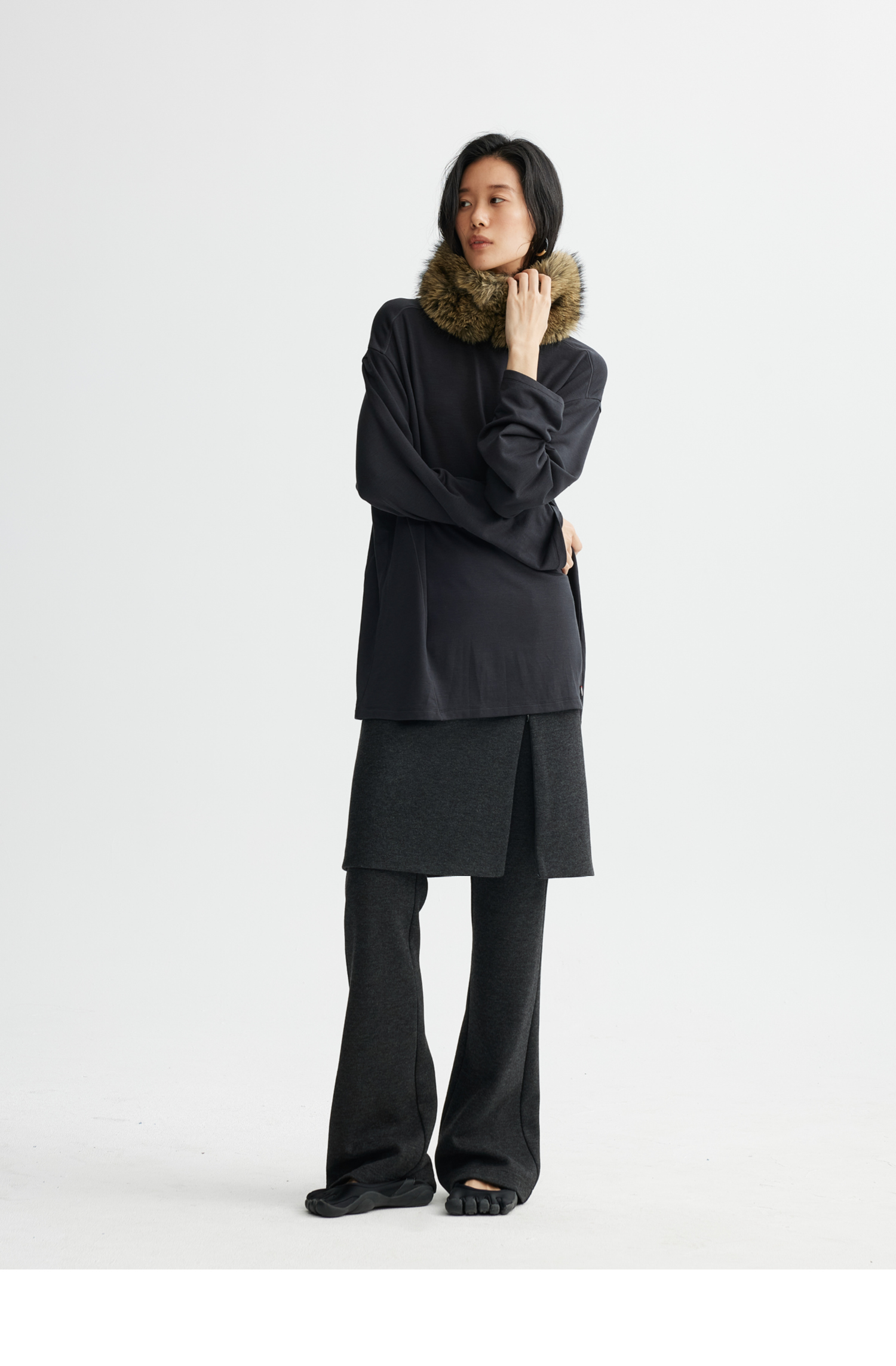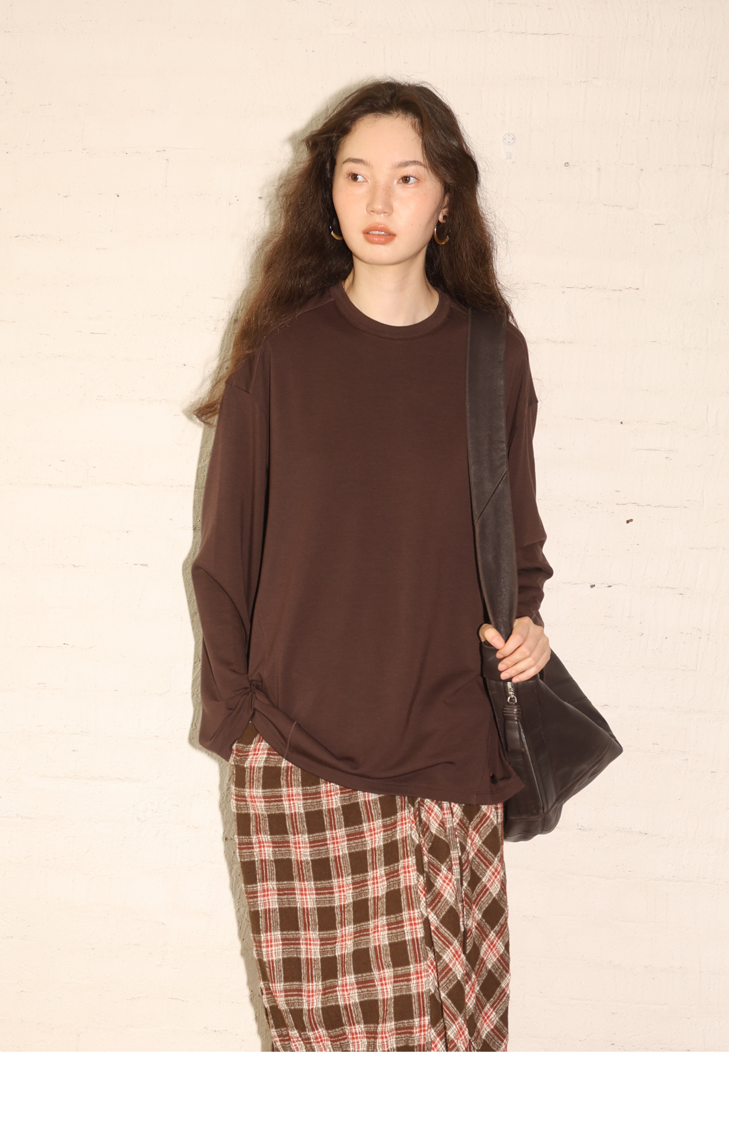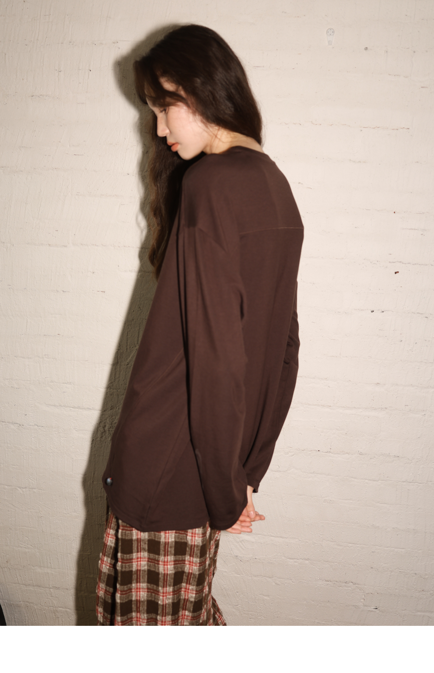 素舶 绵羊毛高弹亲肤双面针织圆领剪裁分割长袖T恤