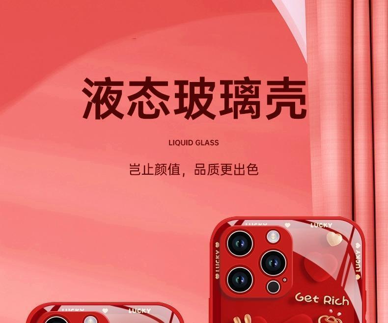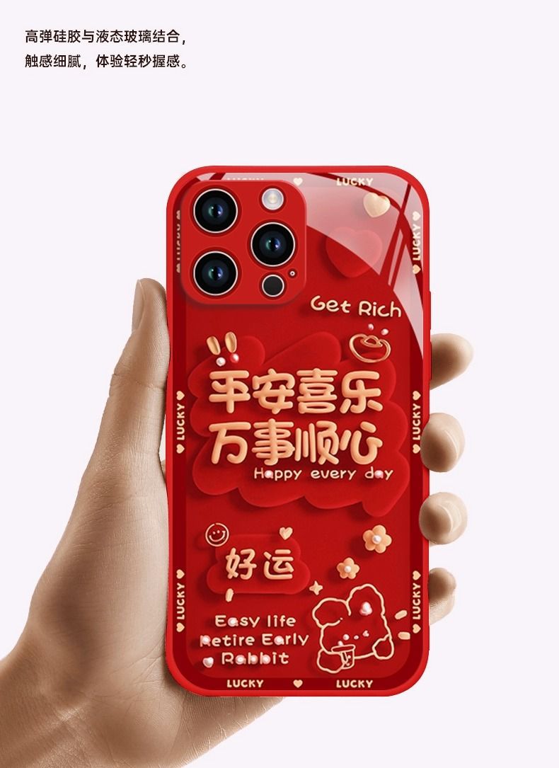 【平安喜乐!万事顺心】新年限定苹果15手机壳iPhone14promax新款13蛇年红色2液态玻璃11潮款,全包镜头。ry