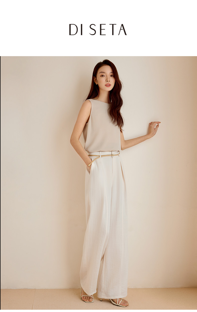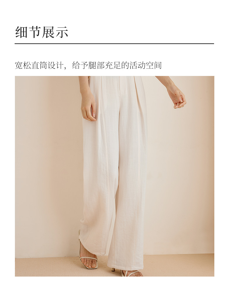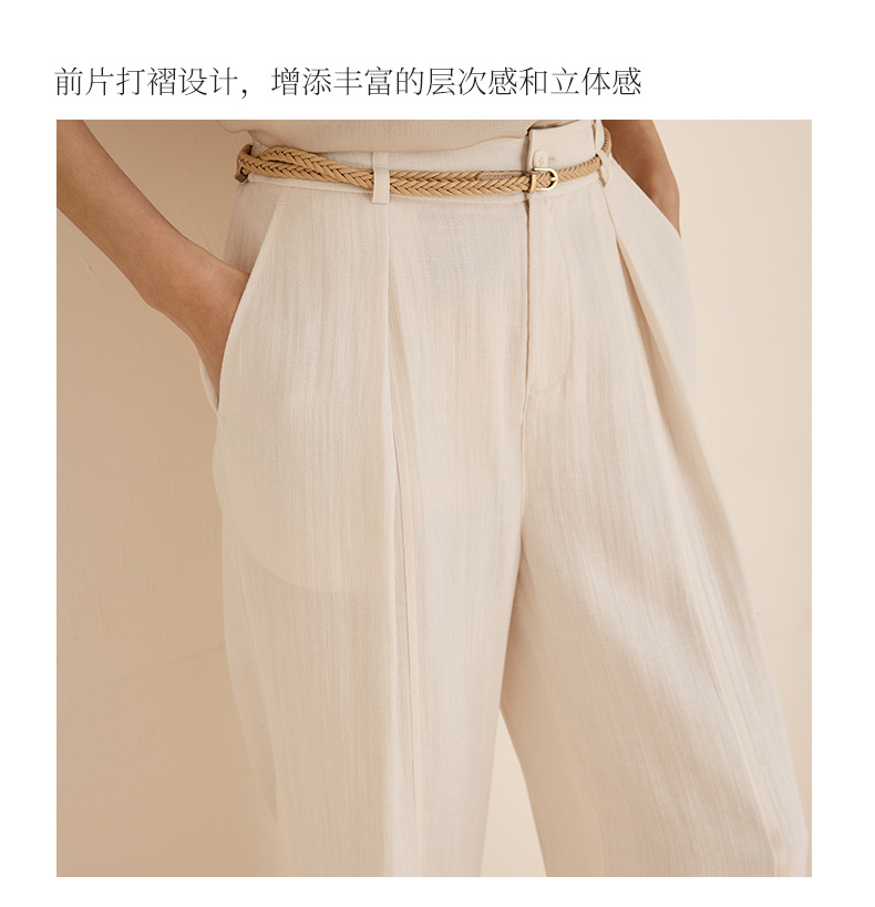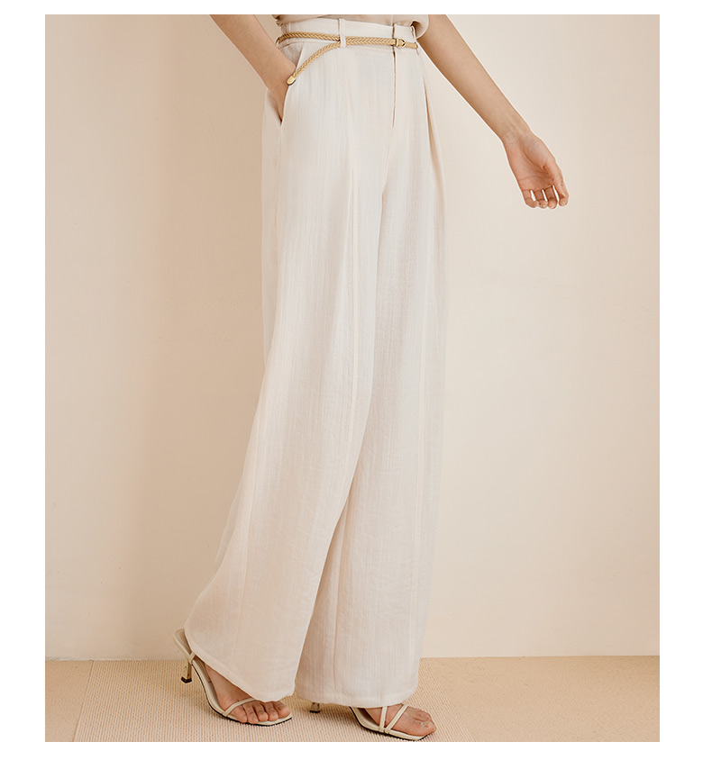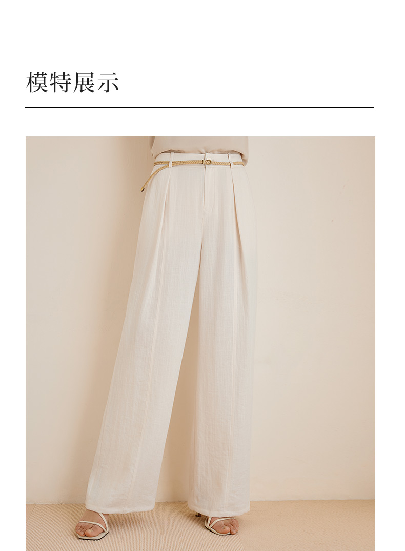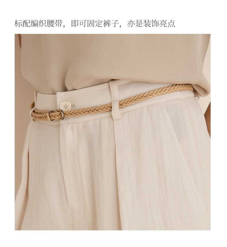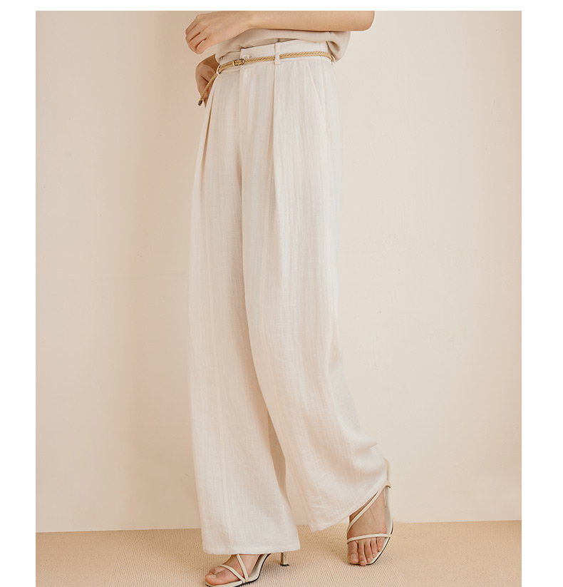 玳莎半松紧宽松直筒休闲裤标配腰带2025年春季阔腿垂感百搭长裤女 FA36304