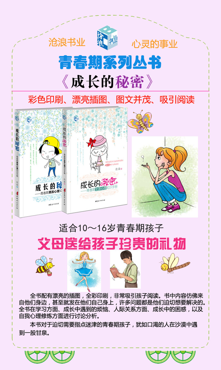 本书的内容基于作者在实际生活中对于青春期女孩的观察调研,以及与她们交往过程的了解和把握。因此比较切合青春期女孩的实际情况,贴近她们的真正需求,提出的解决问题的方法也更有利于帮助她们尽快走出困境。