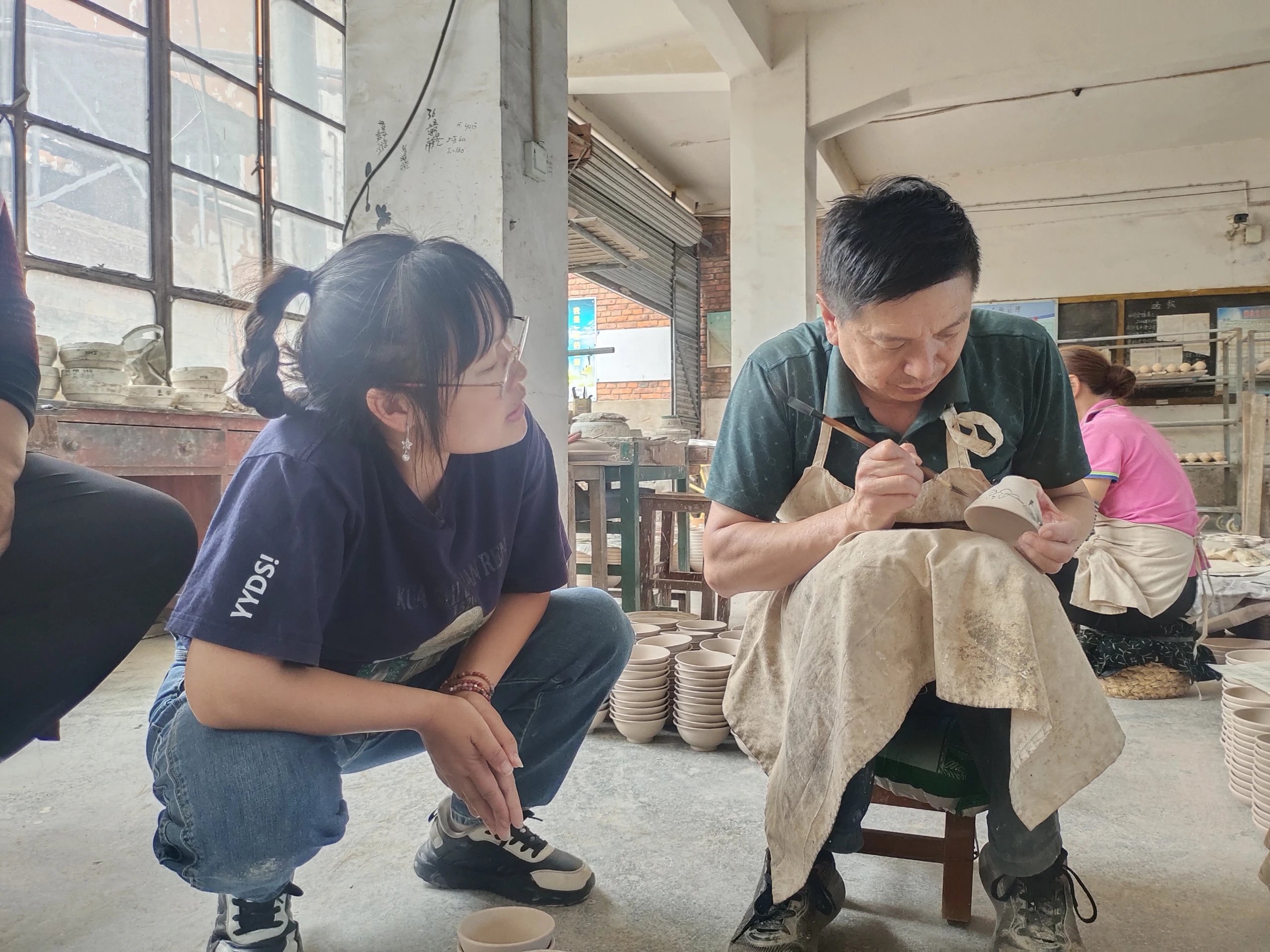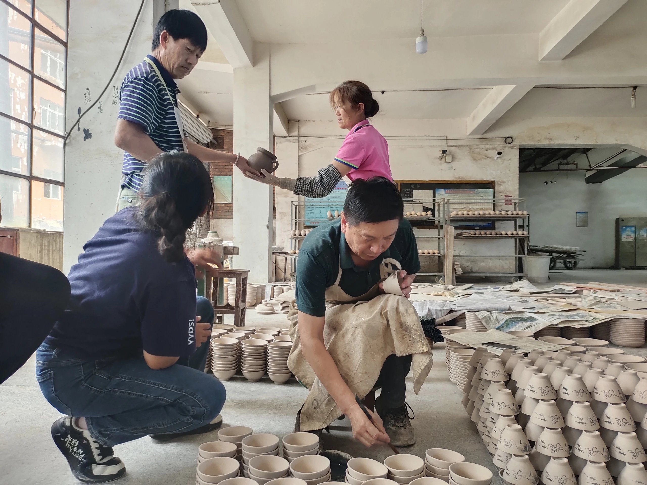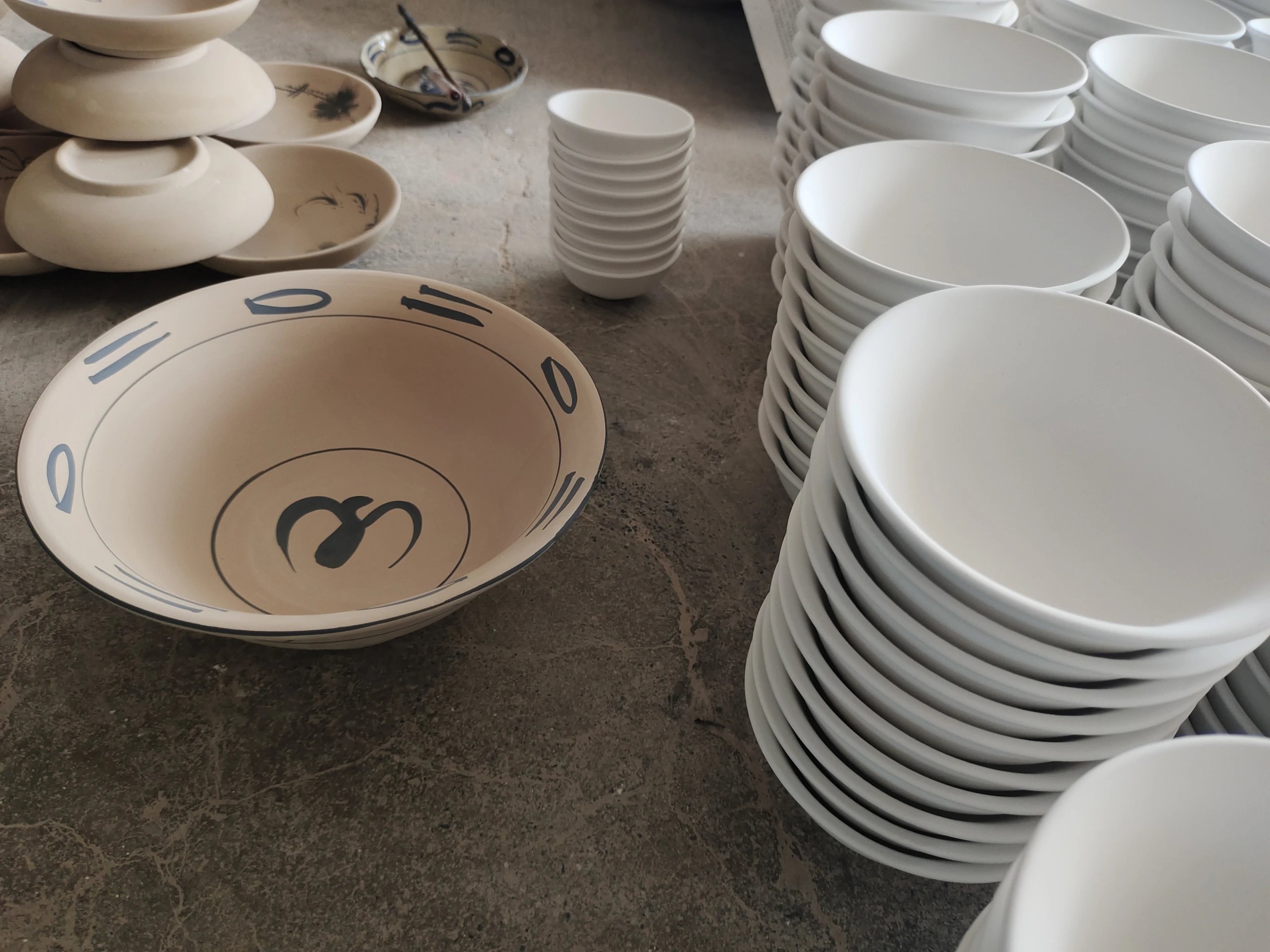 和厂里的这些师傅交谈,他们都是本地人,两位绘图的师傅更是祖祖辈辈做碗的,他们就手工画碗就画了几十年,一坐下来就是一天,没有模板,没有样稿,所有的灵魂都在心里,然后通过笔尖表达 或简单或复杂,方圆之间,自有天地