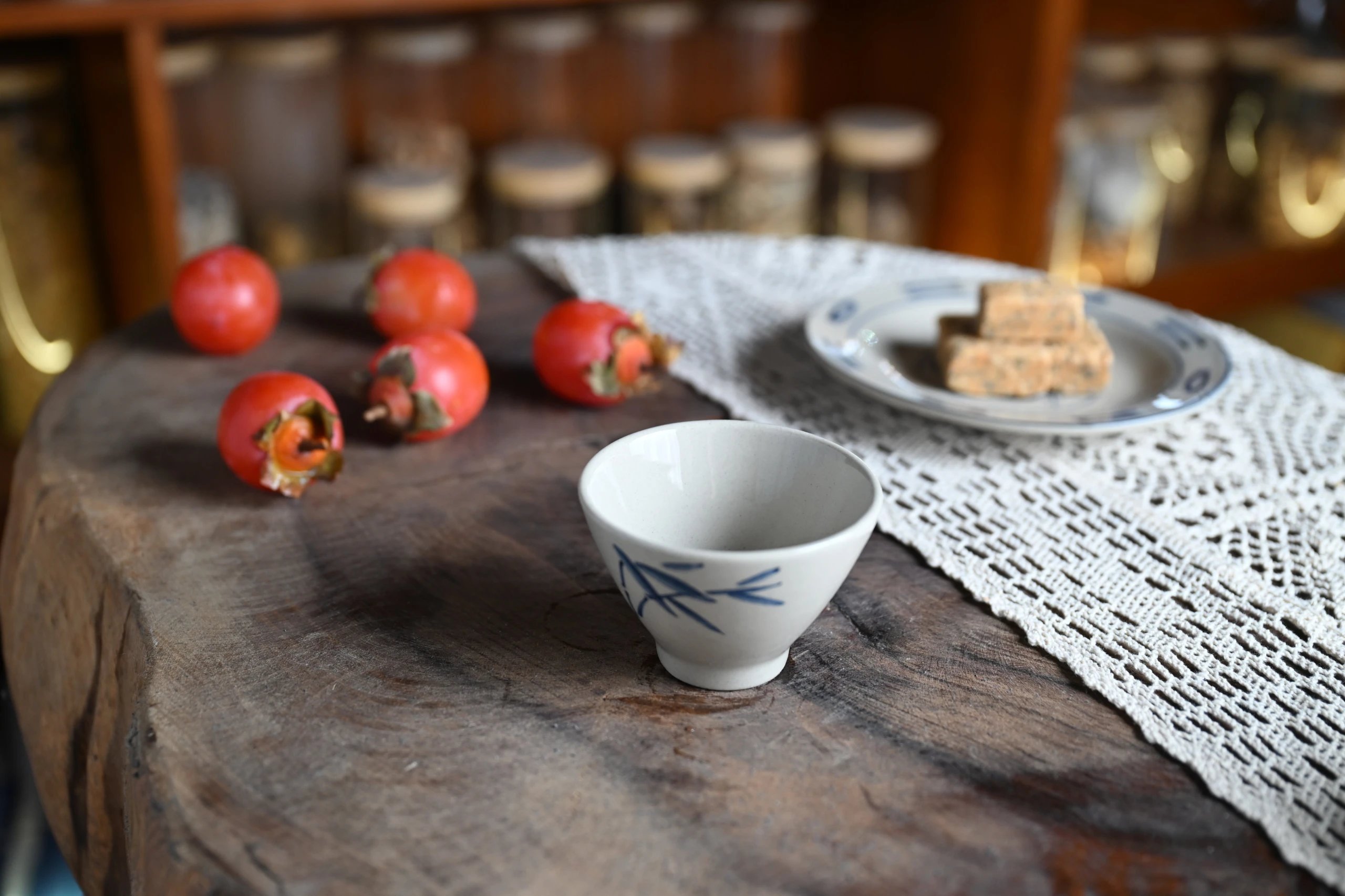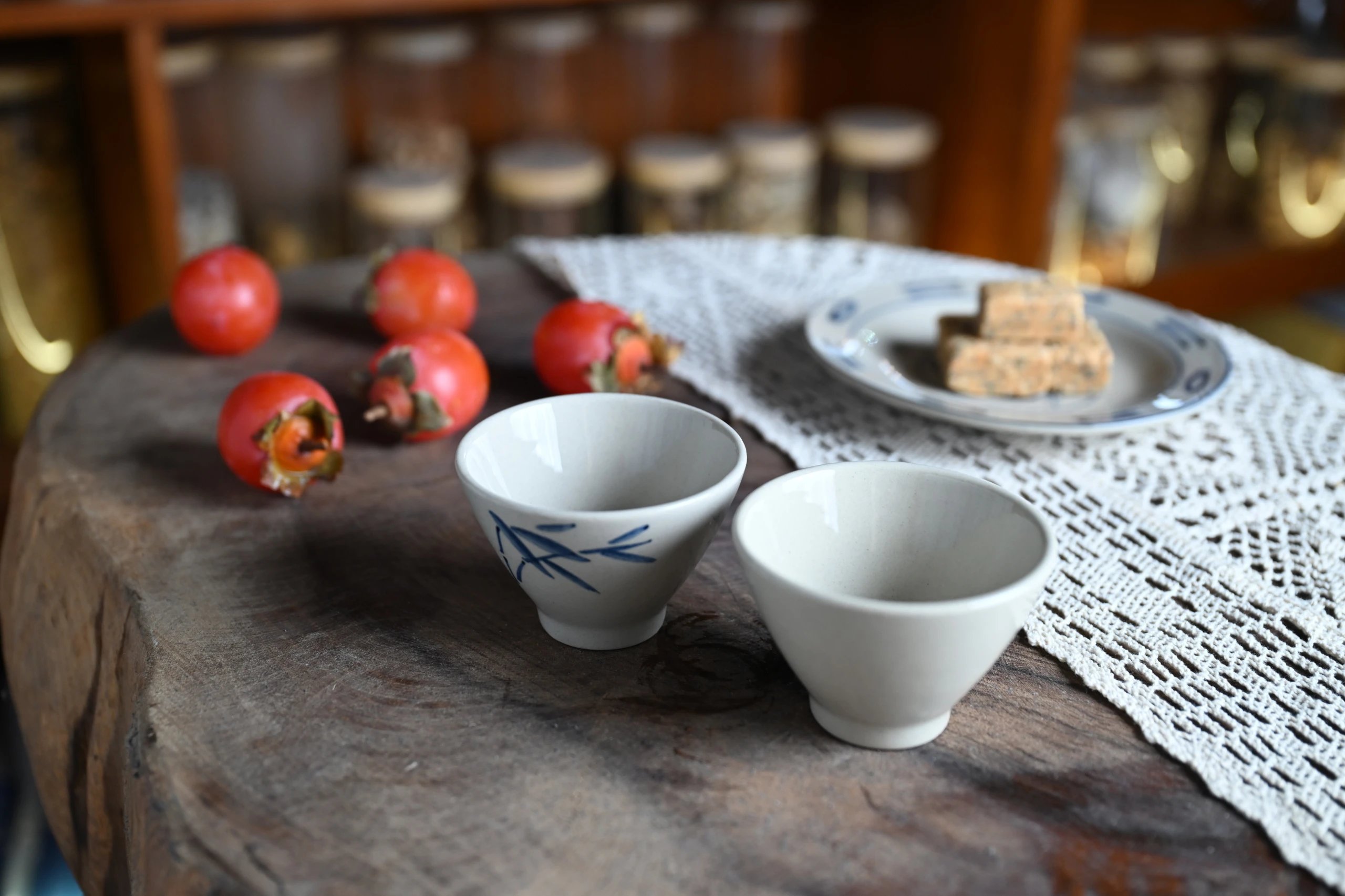 (1)、3寸斗笠茶杯(竹节图案,图案些许不同随机发货) 尺寸:杯口径7.5cm*高5.3cm;容量约100ml 使用场景推荐:茶杯(斗笠茶杯聚香较好)