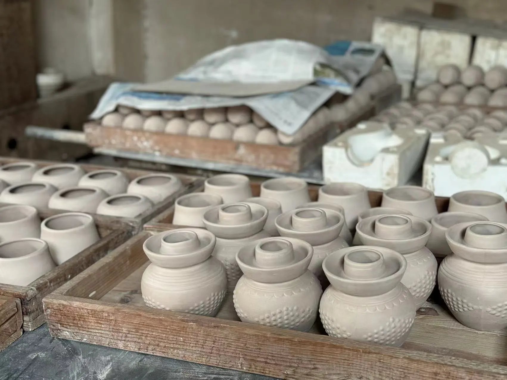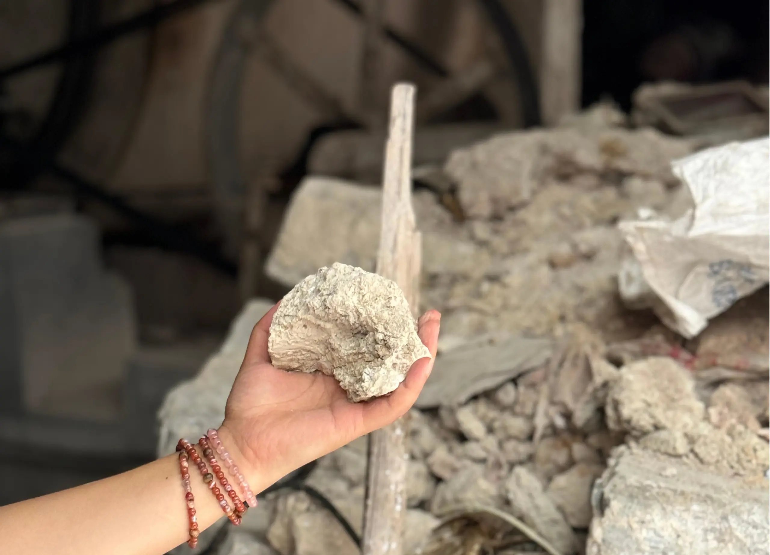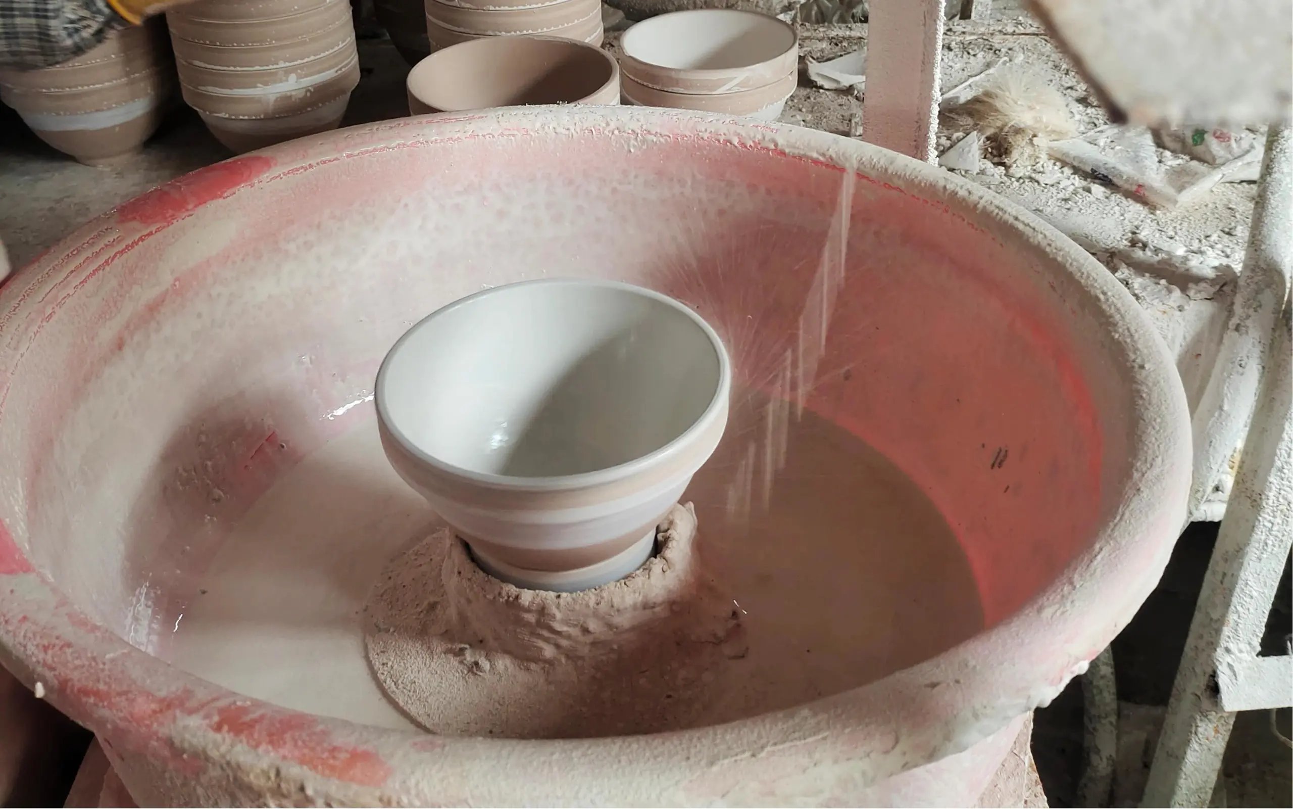 天然矿物釉料,以当地的长石、石英石、方解石等研磨出属于自己的釉料