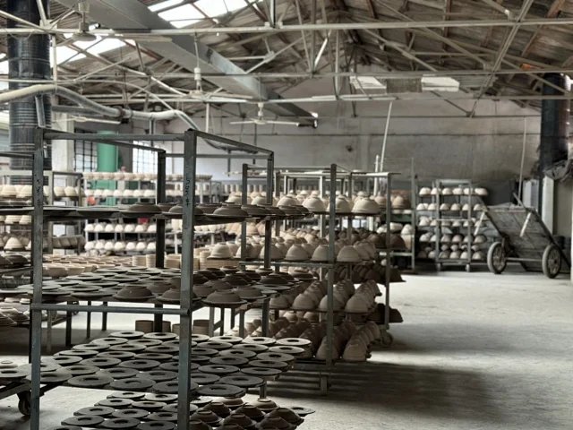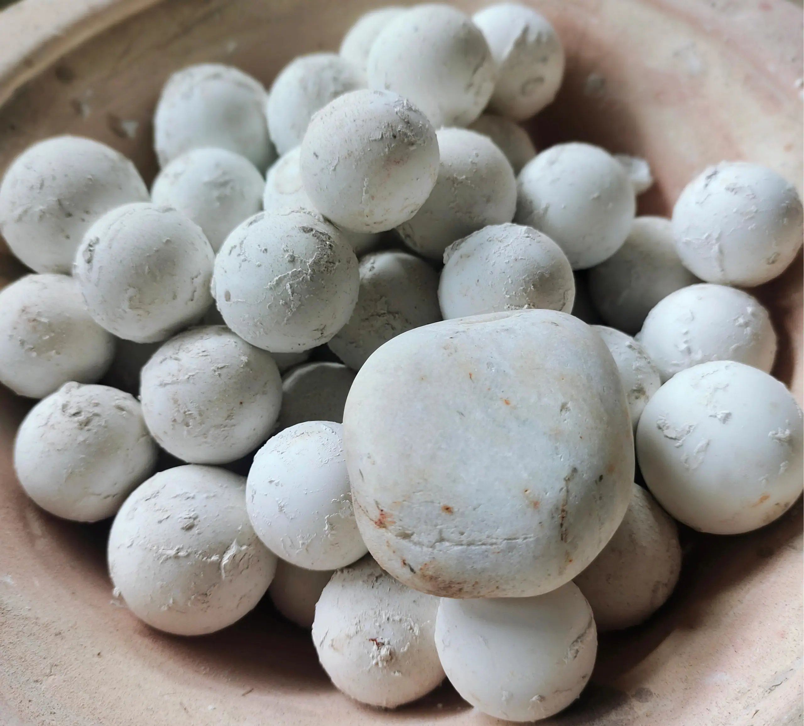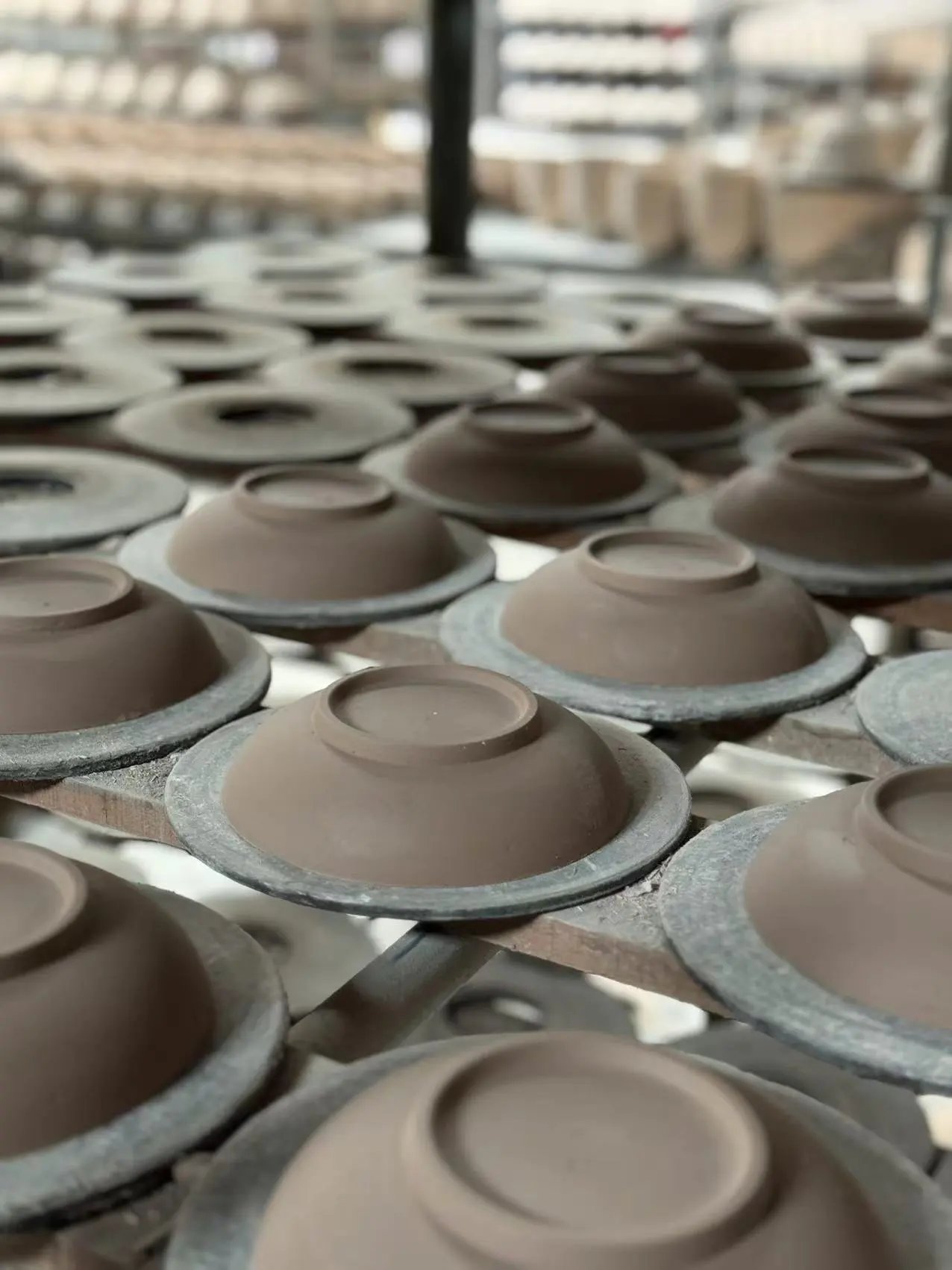 天然矿物釉料,以当地的长石、石英石、方解石等研磨出属于自己的釉料