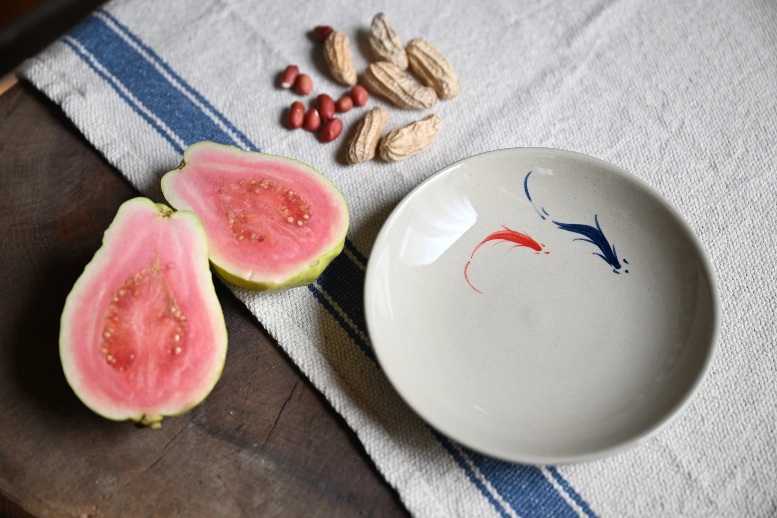 (2)、6寸小深盘(有荷花图案和双鱼图案): 尺寸:直径15.5cm*盘深约3.3cm 使用场景推荐:2人食小菜碟(有深度)、凉菜碟、小果盘、咸菜碟