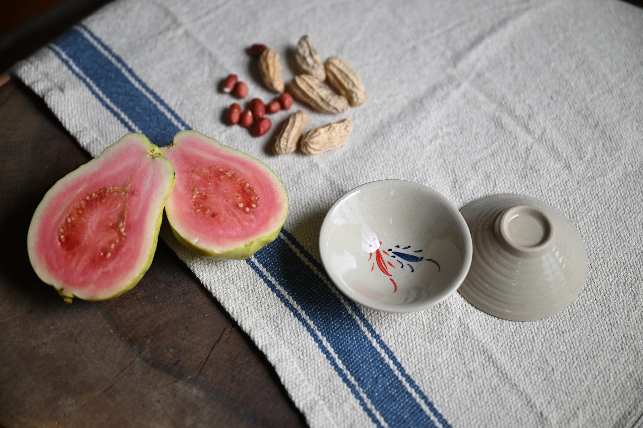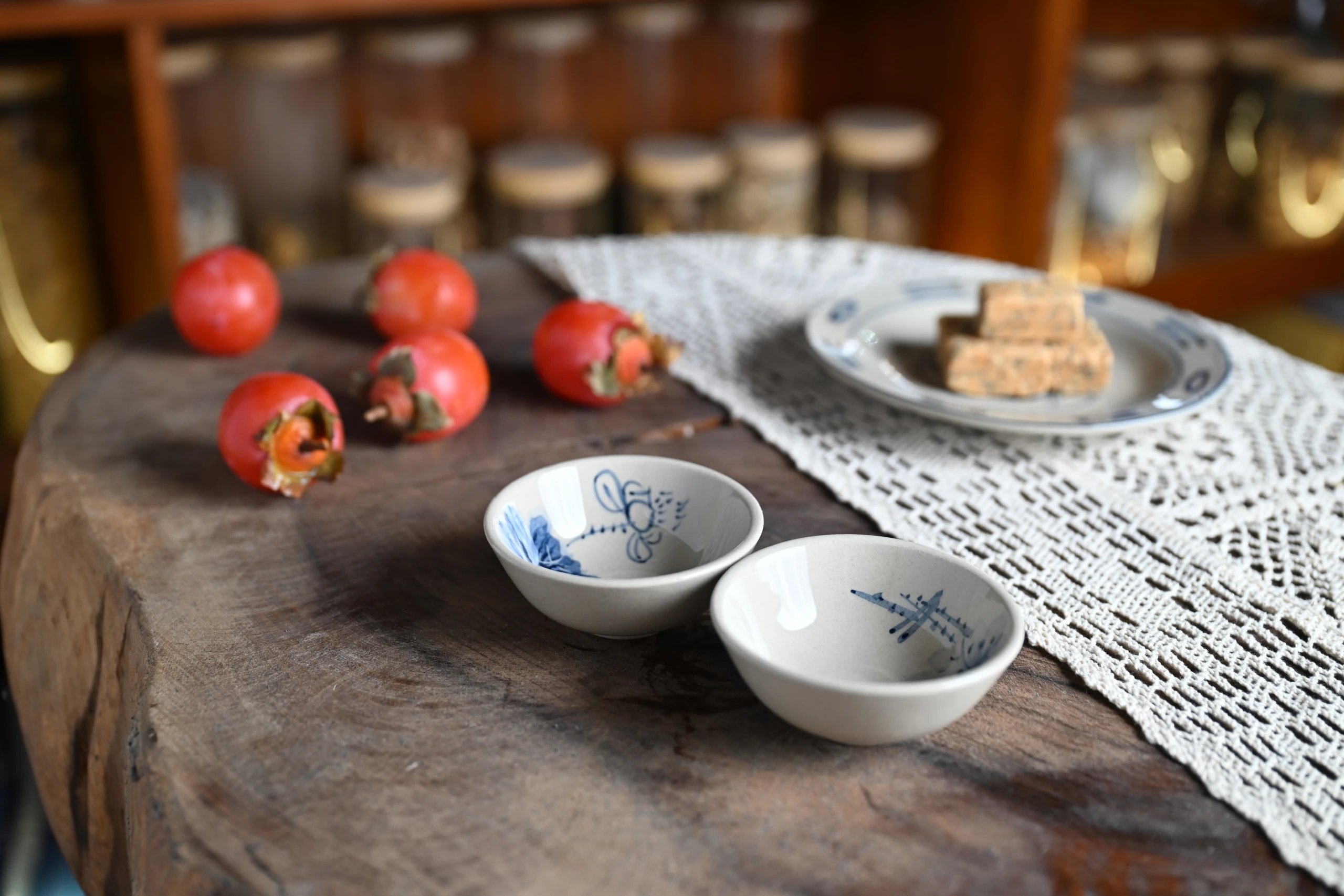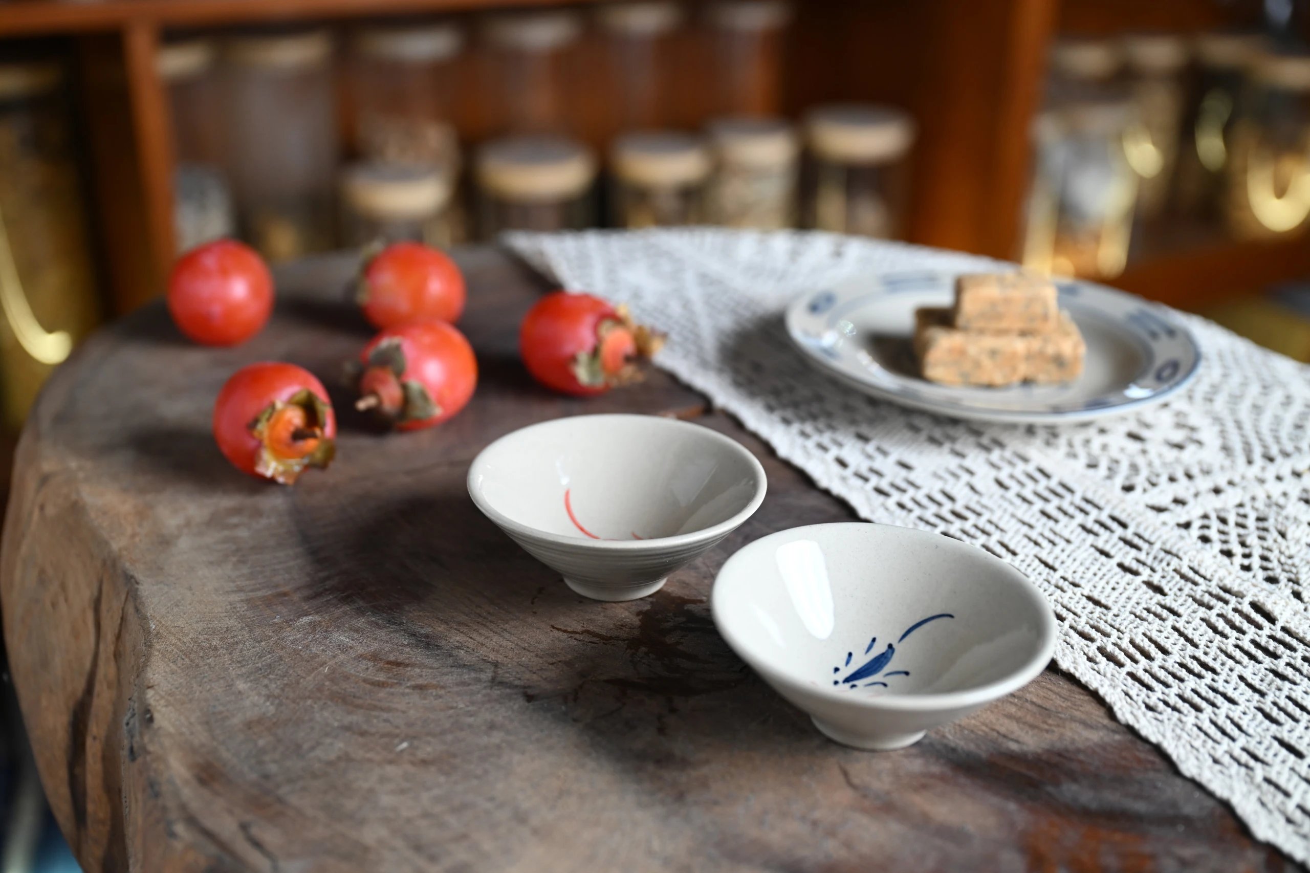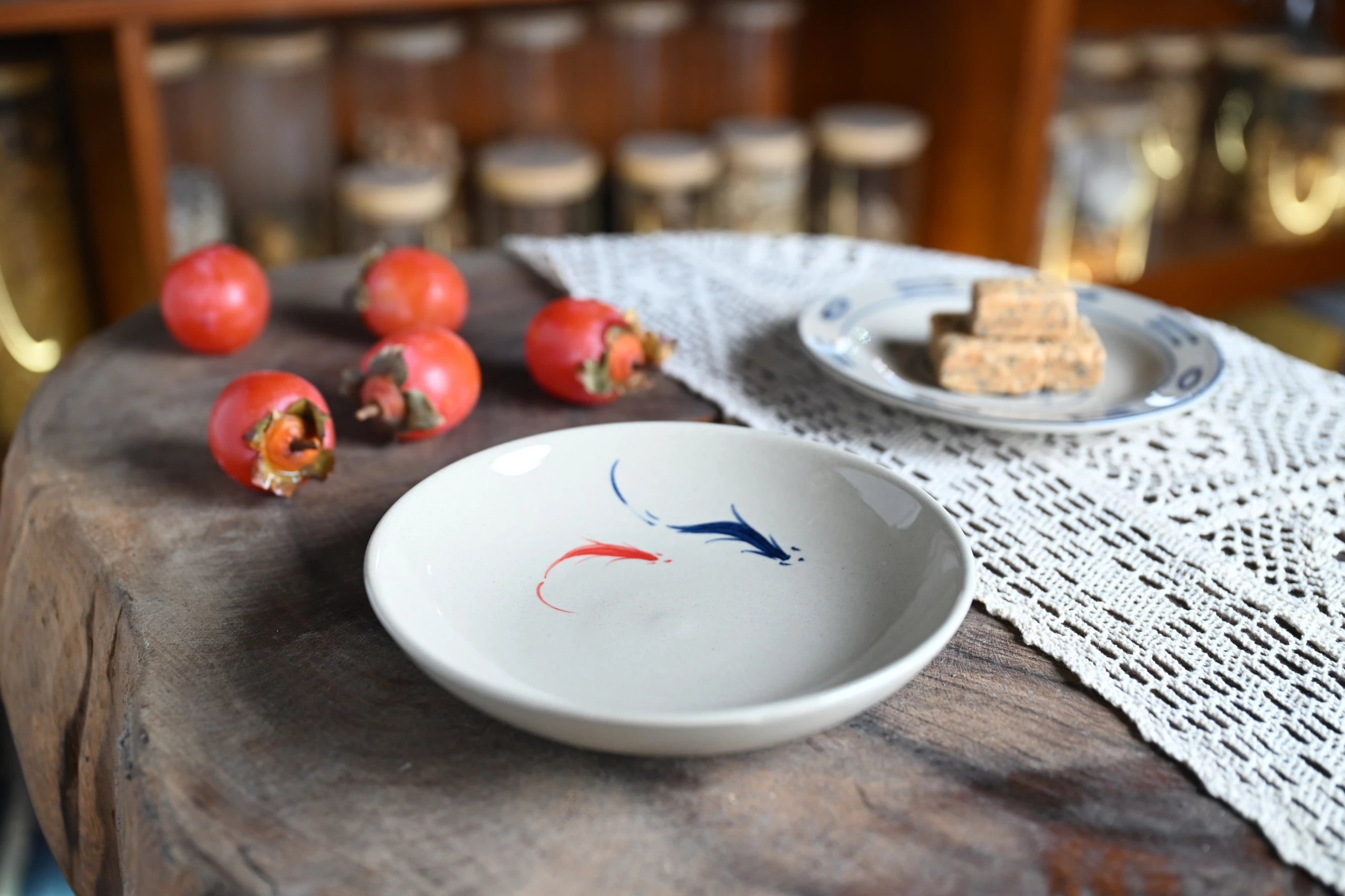 (2)、3寸斗笠茶碗(双鱼图案,广口) 尺寸:杯口直径8.0cm*高3.4cm;容量约50ml 使用场景推荐:茶杯