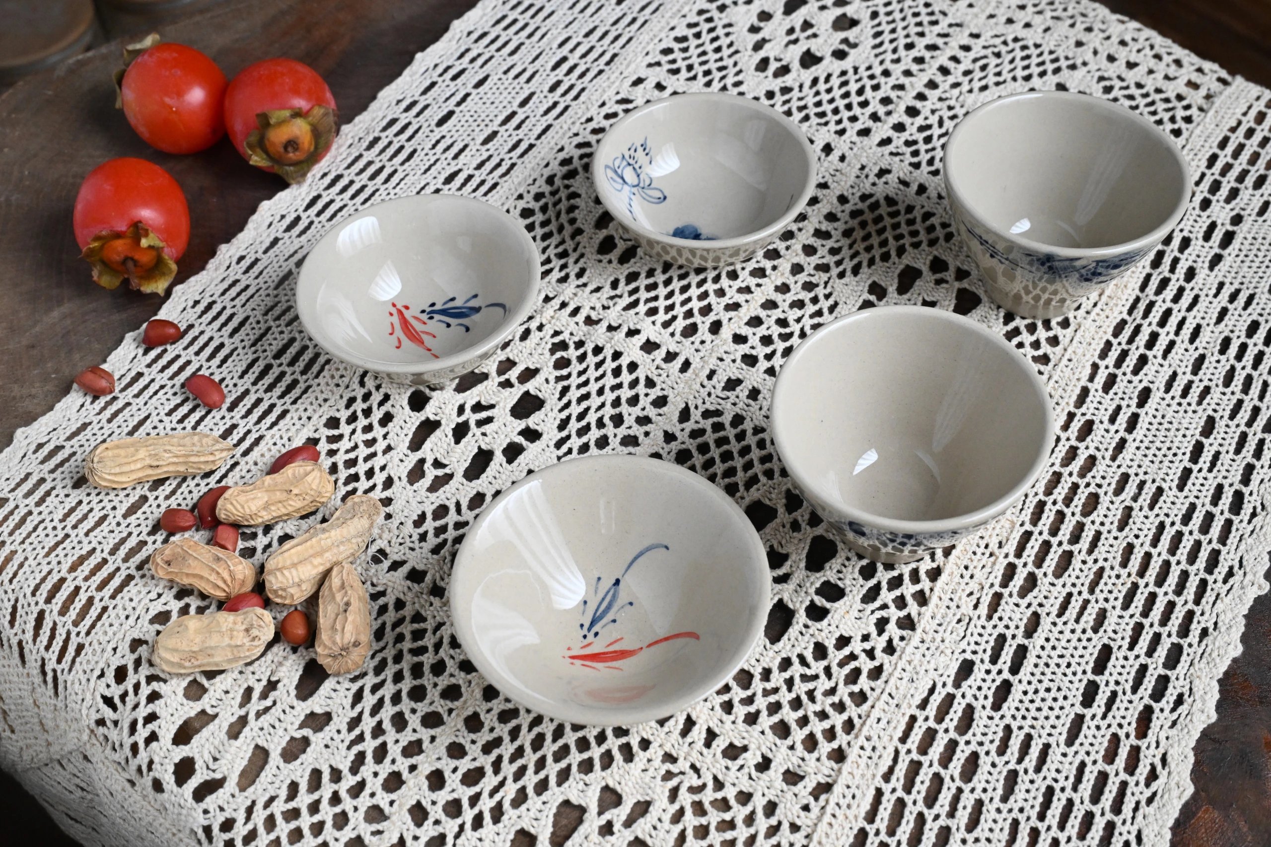 (4)、3寸小茶碗(荷花图案) 尺寸:杯口直径7.0cm*高3.0cm;容量约50ml 使用场景推荐:茶杯、小醋碟皆可