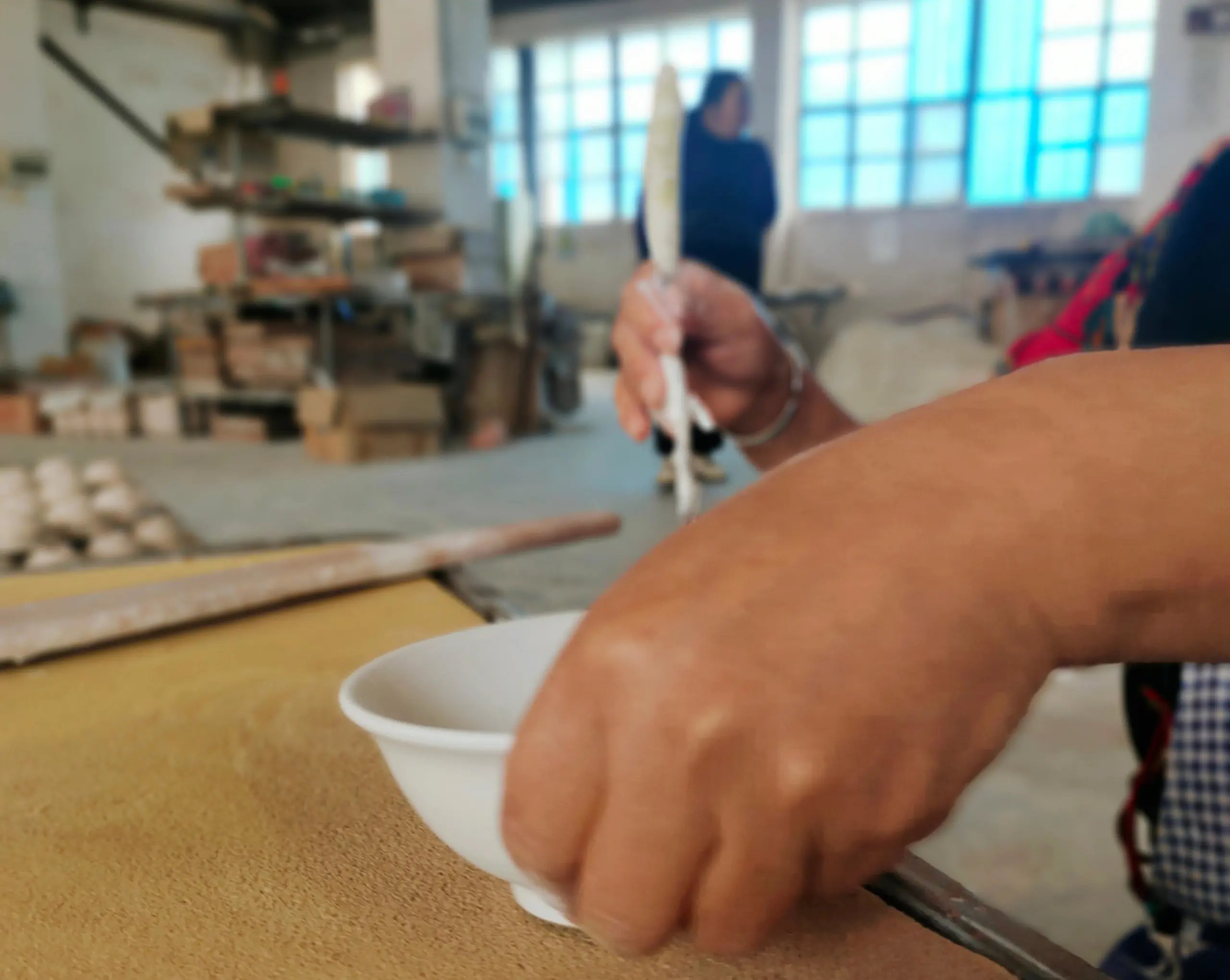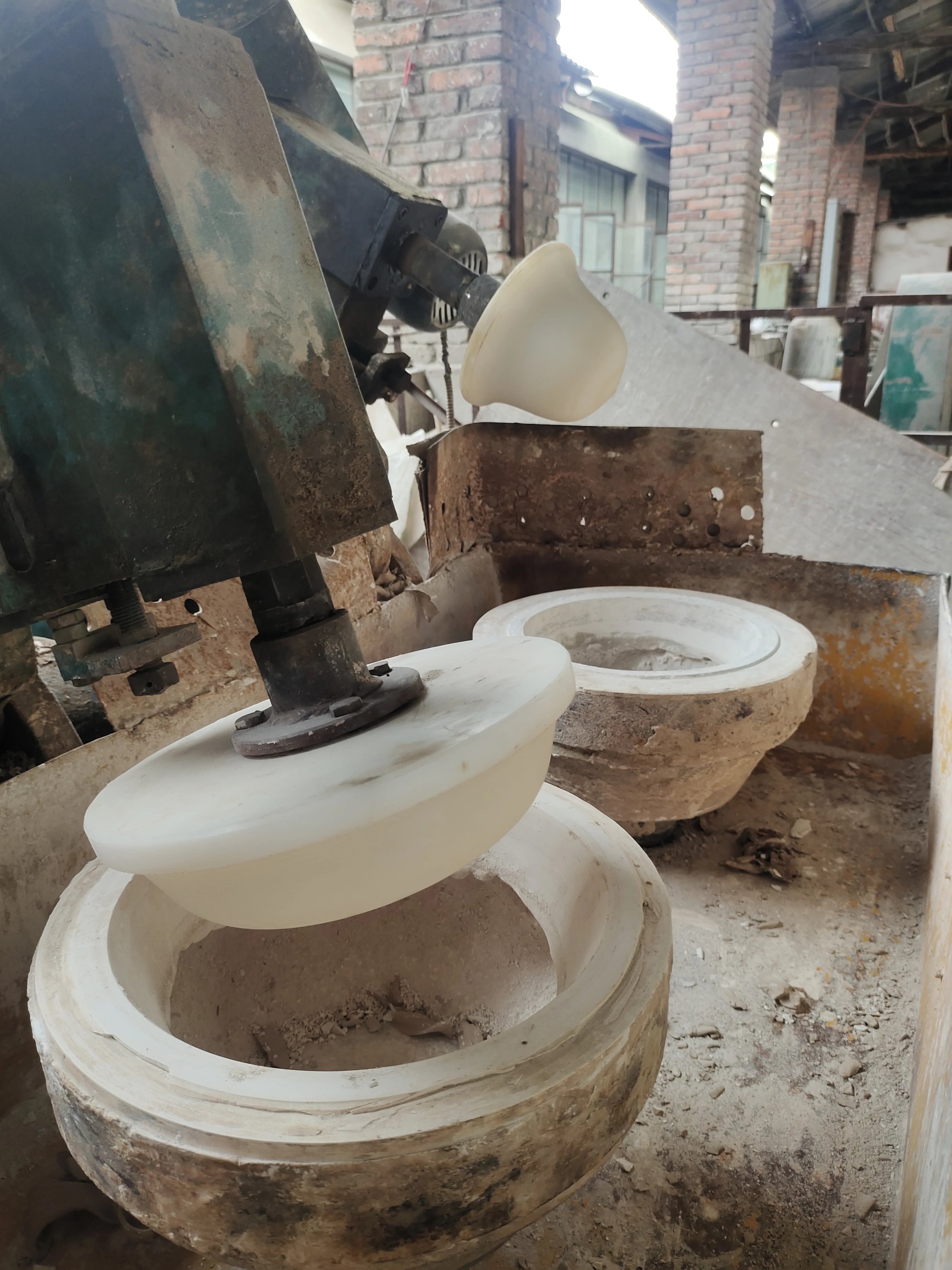 一块子特有的白色粘土,经过研磨-过筛-除铁-榨泥-炼泥-压胚等72道工序,在一次又一次的塑性中,完成了华美的蜕变