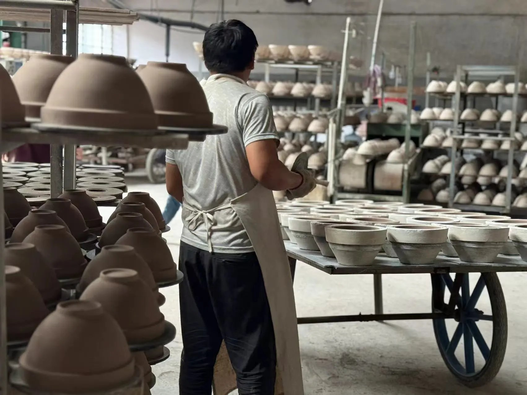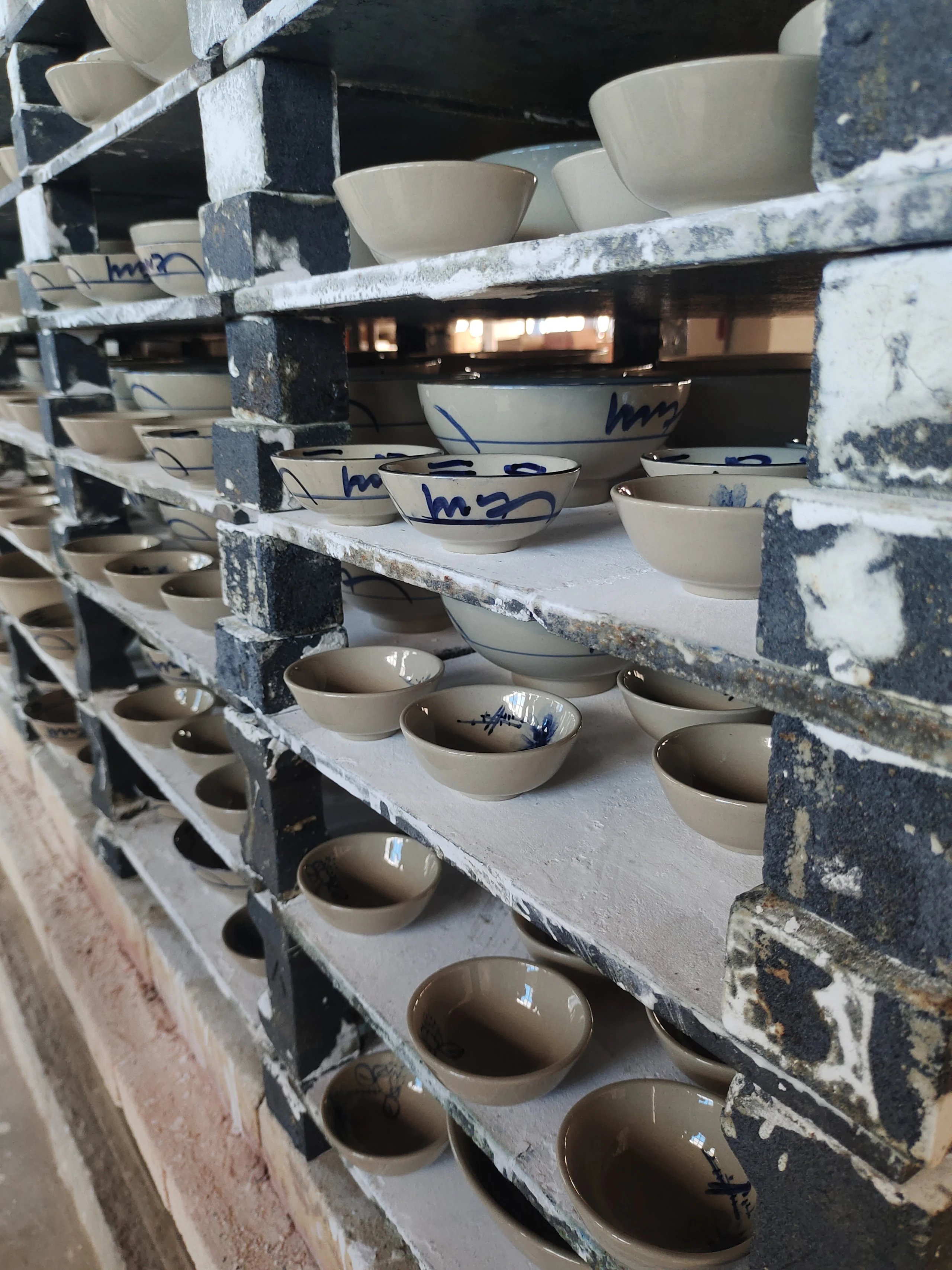 施釉完成的胚子,装窑,1000多度高温,烧成,出窑,检验包装,然后走进千家万户