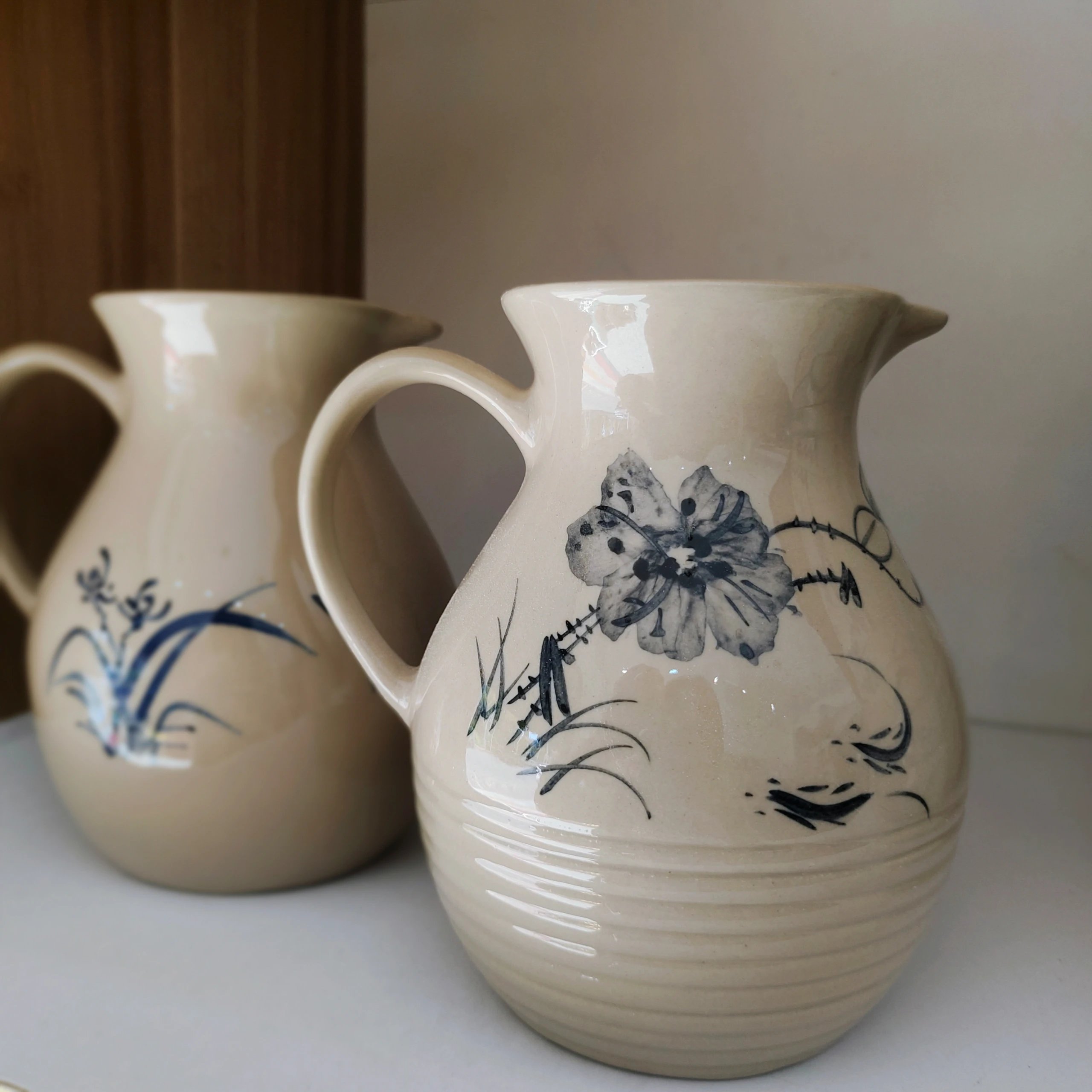 (2)分茶罐(手绘兰花/荷花图案) ***尺寸:罐口口径约7cm,罐身高约15cm,容量约620ml ***使用场景推荐:分茶水,凉开水,养水,香油罐(不含盖子),插花,摆件 ***温馨提示:手绘图案,每个均是孤品,切记不可明火哟