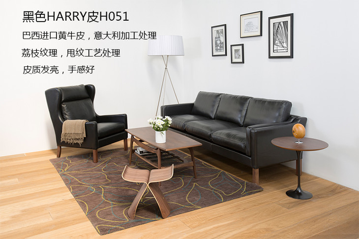 【材质】:进口黄牛皮软包+美国胡桃木实木腿。